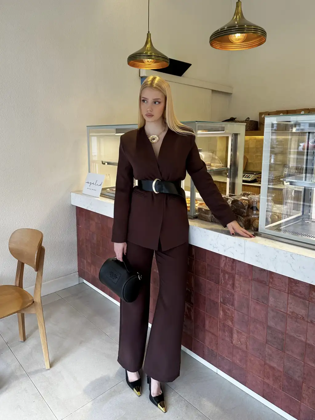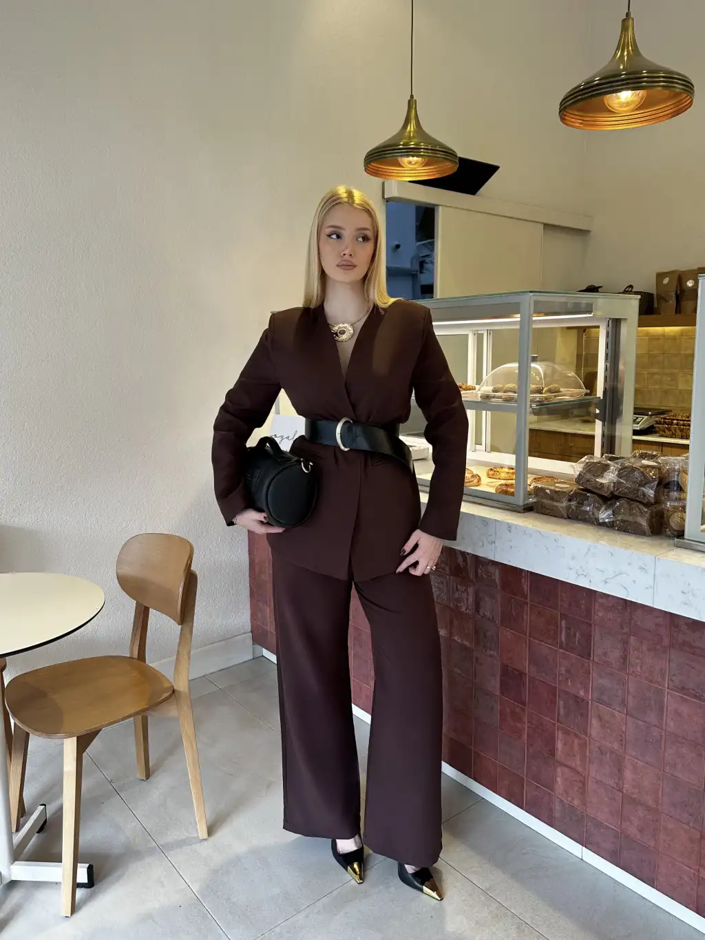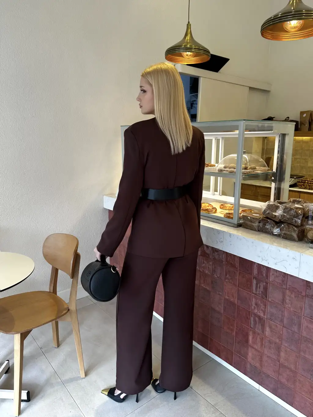 Bel Kemer Detay Acı Kahve Ceket Takım