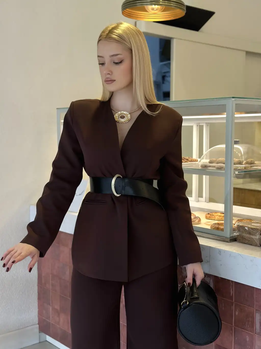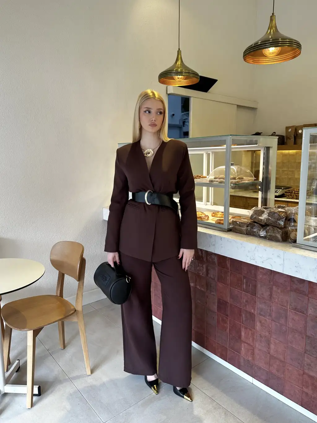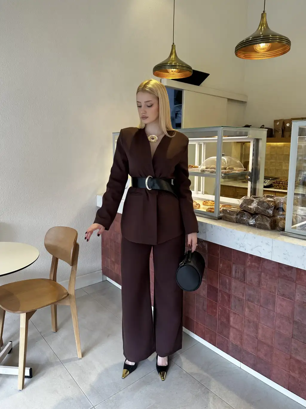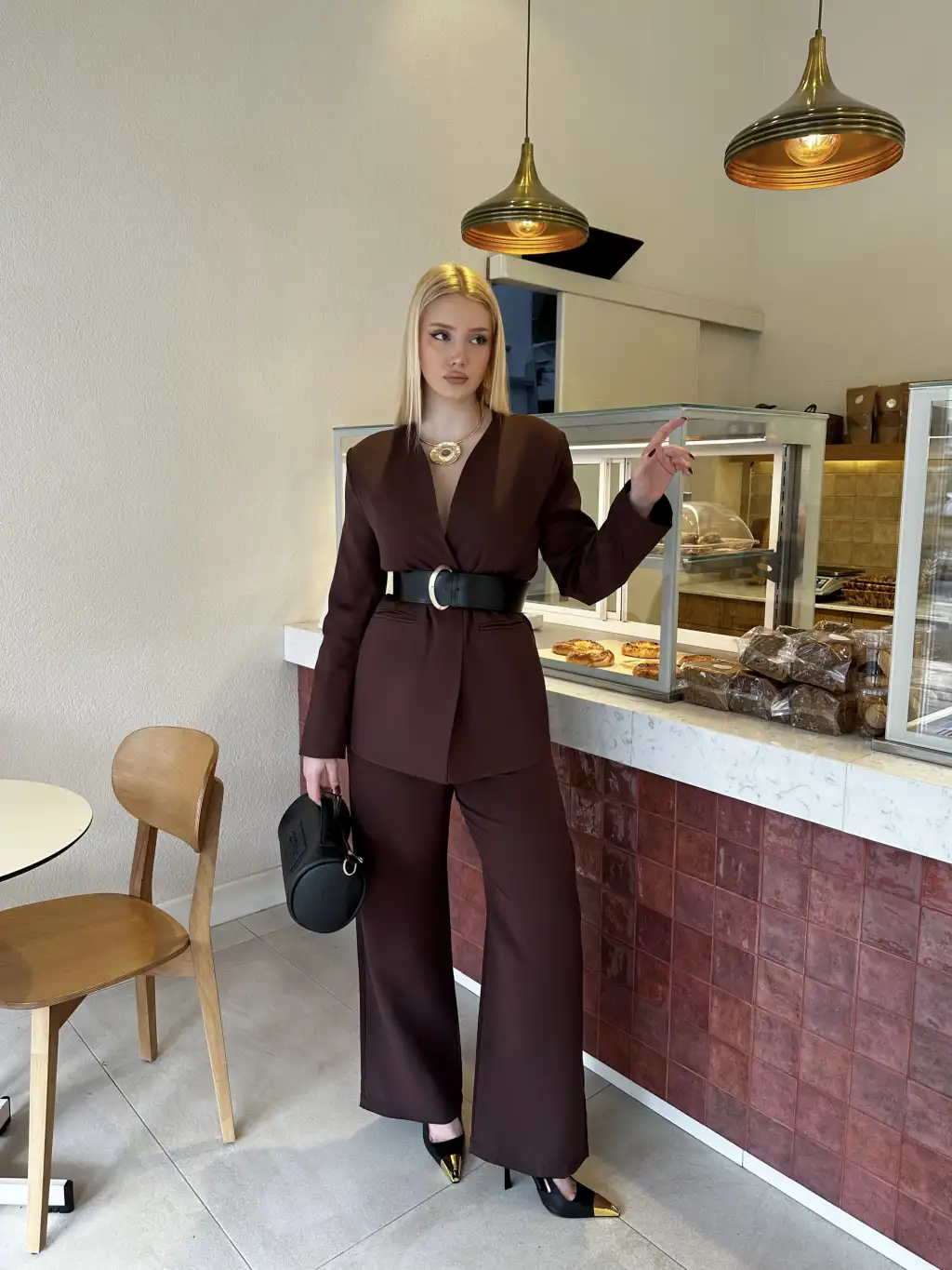 Bel Kemer Detay Acı Kahve Ceket Takım