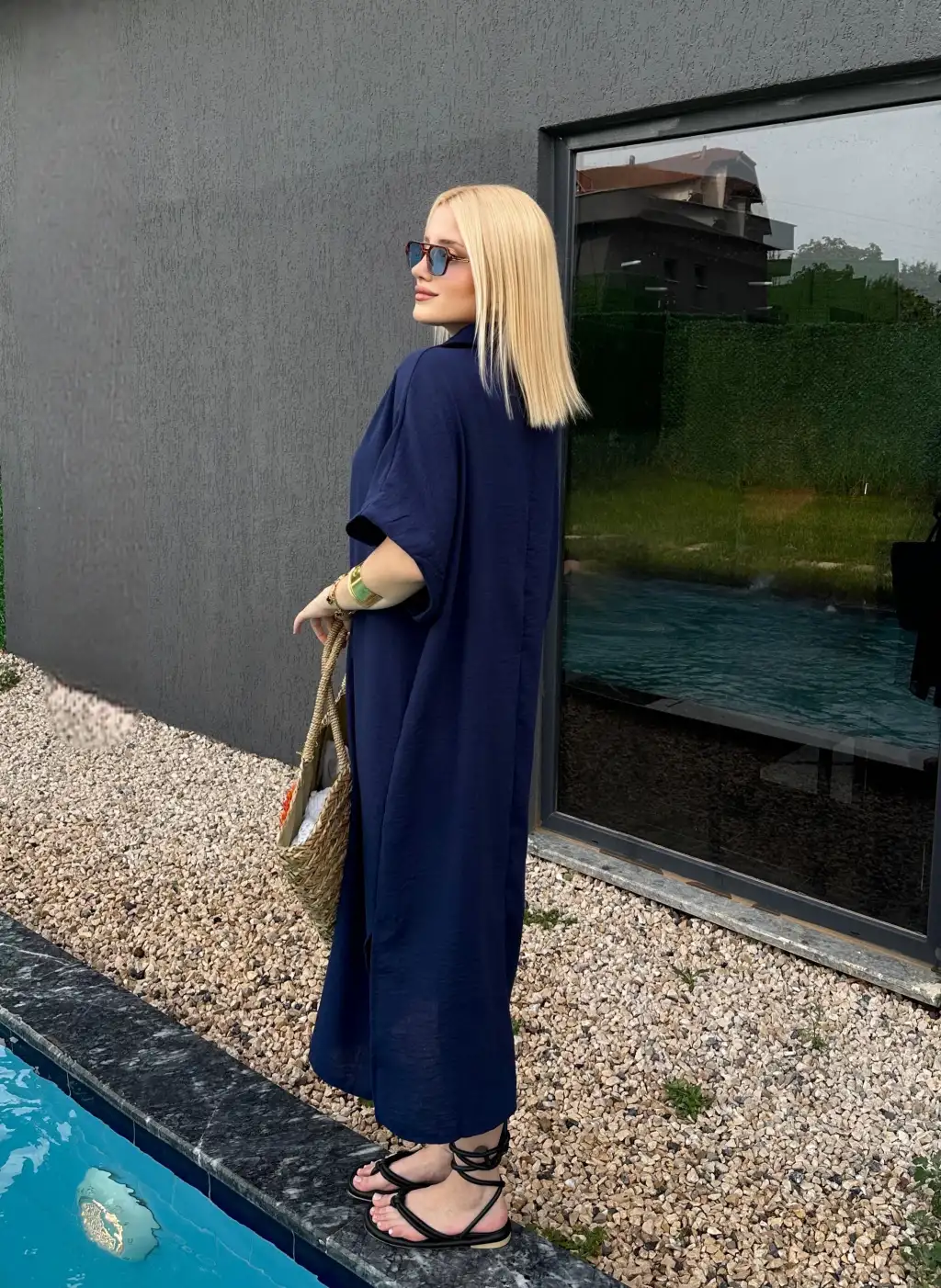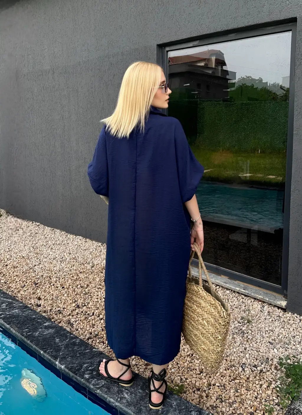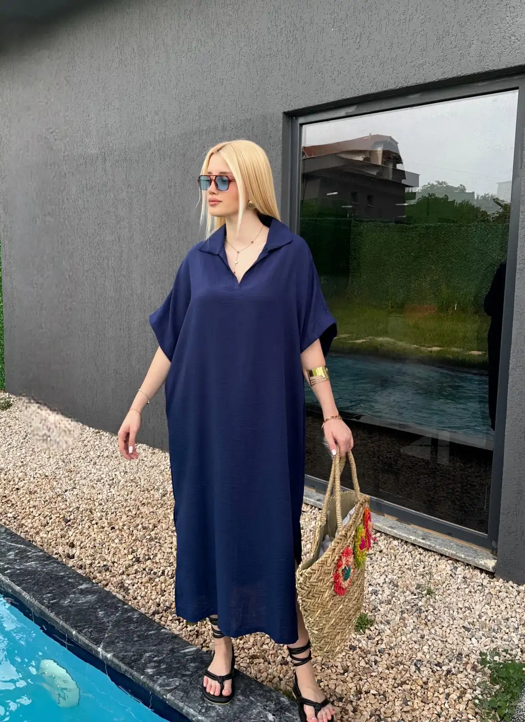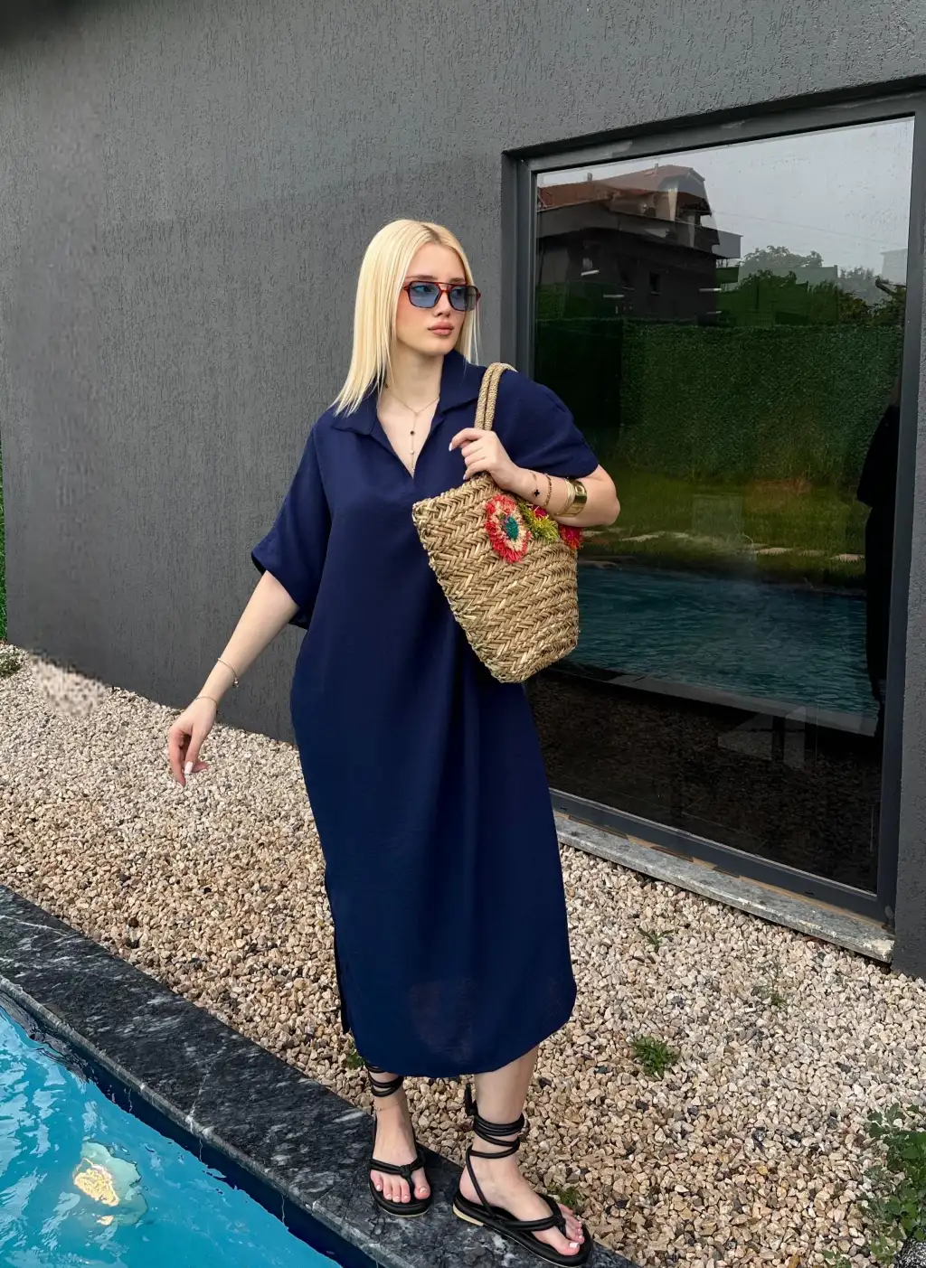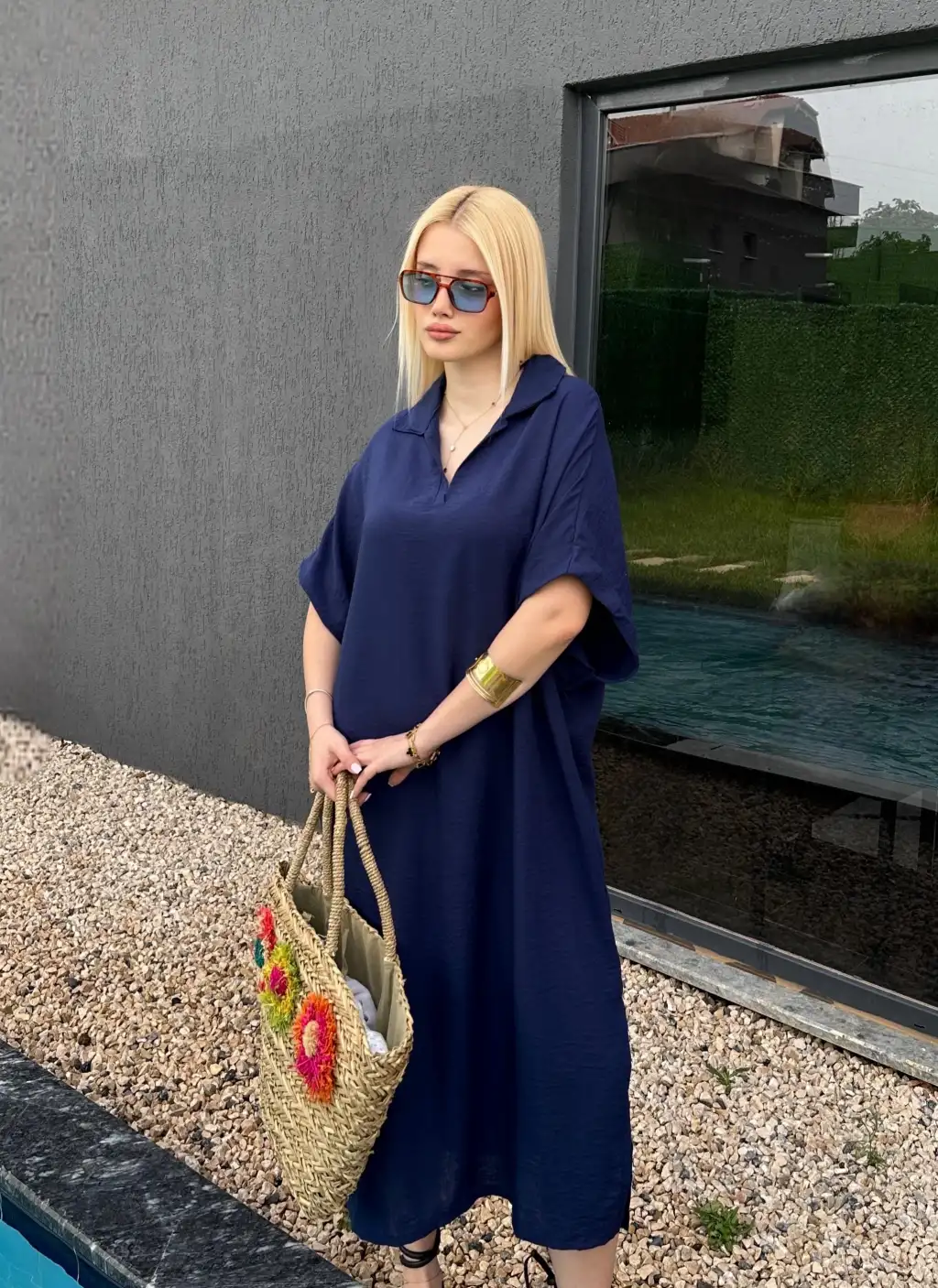 Bohem Lacivert Keten Polo Yaka Elbise