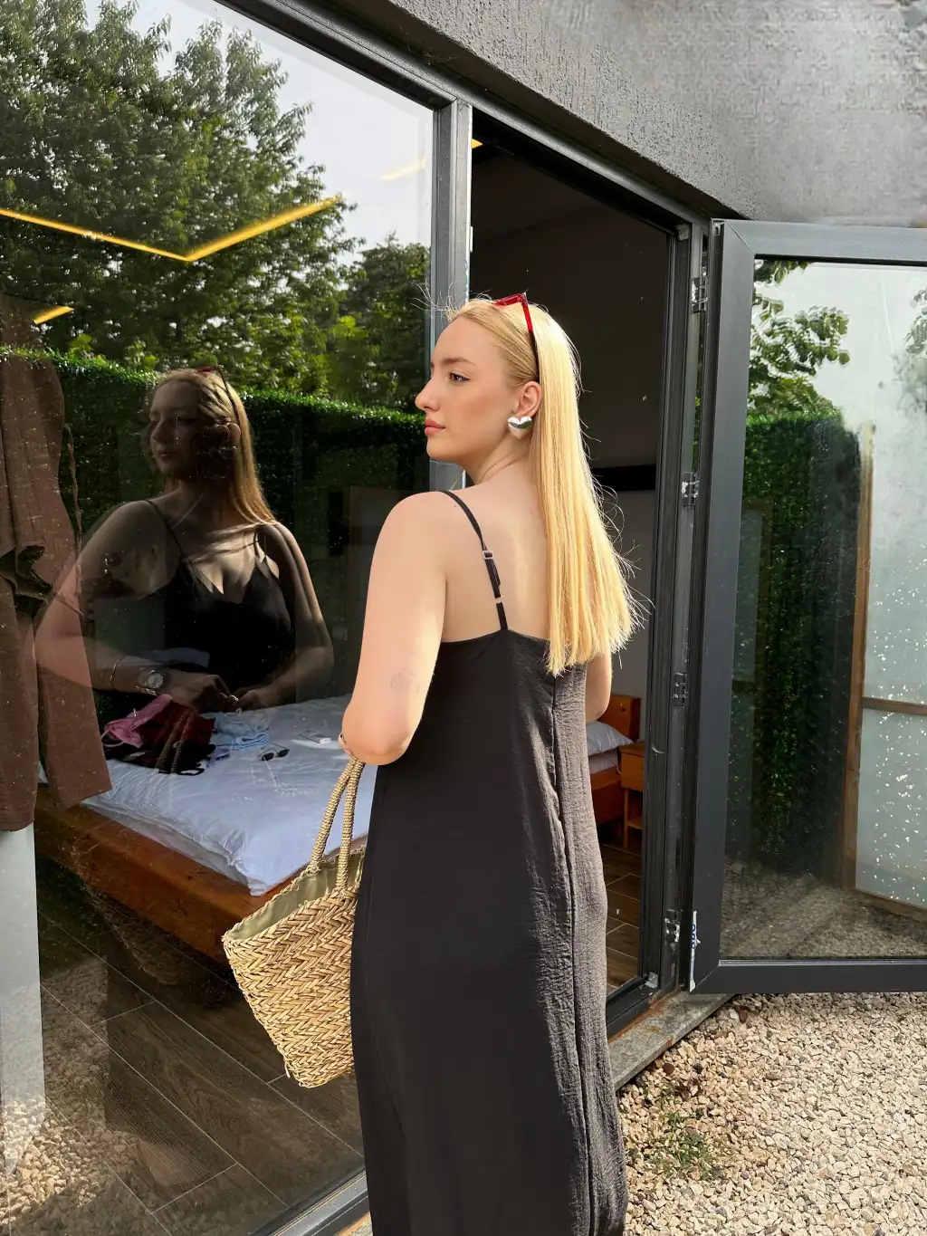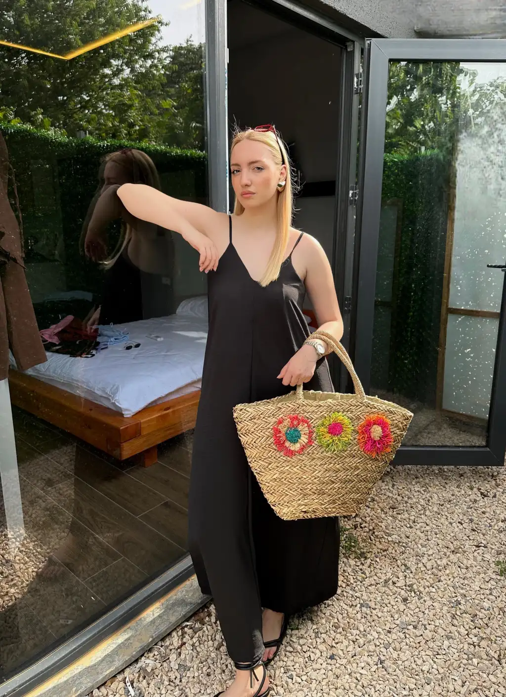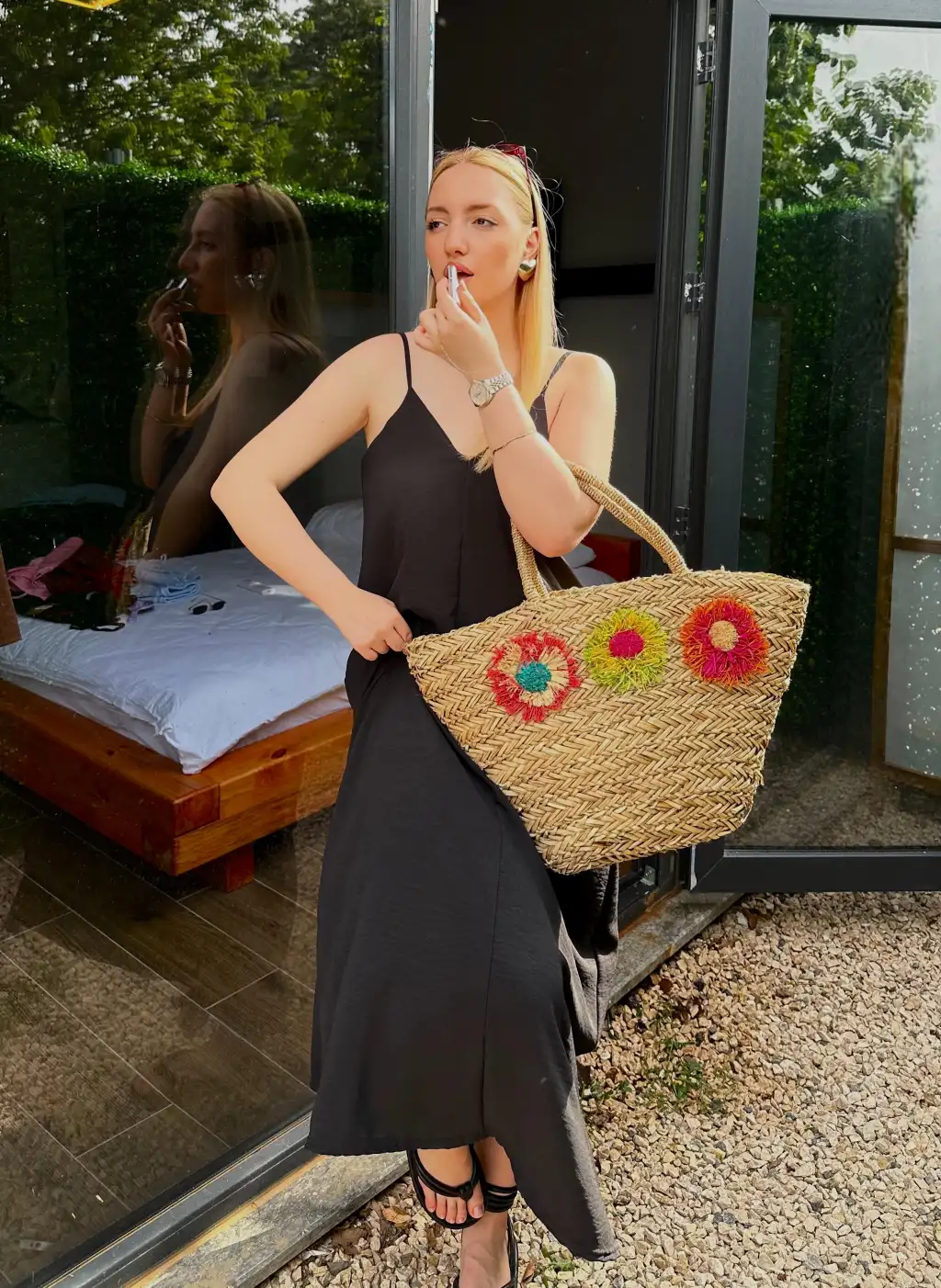 Bohemian Siyah Ayarlanabilir İp Askılı Salaş Elbise