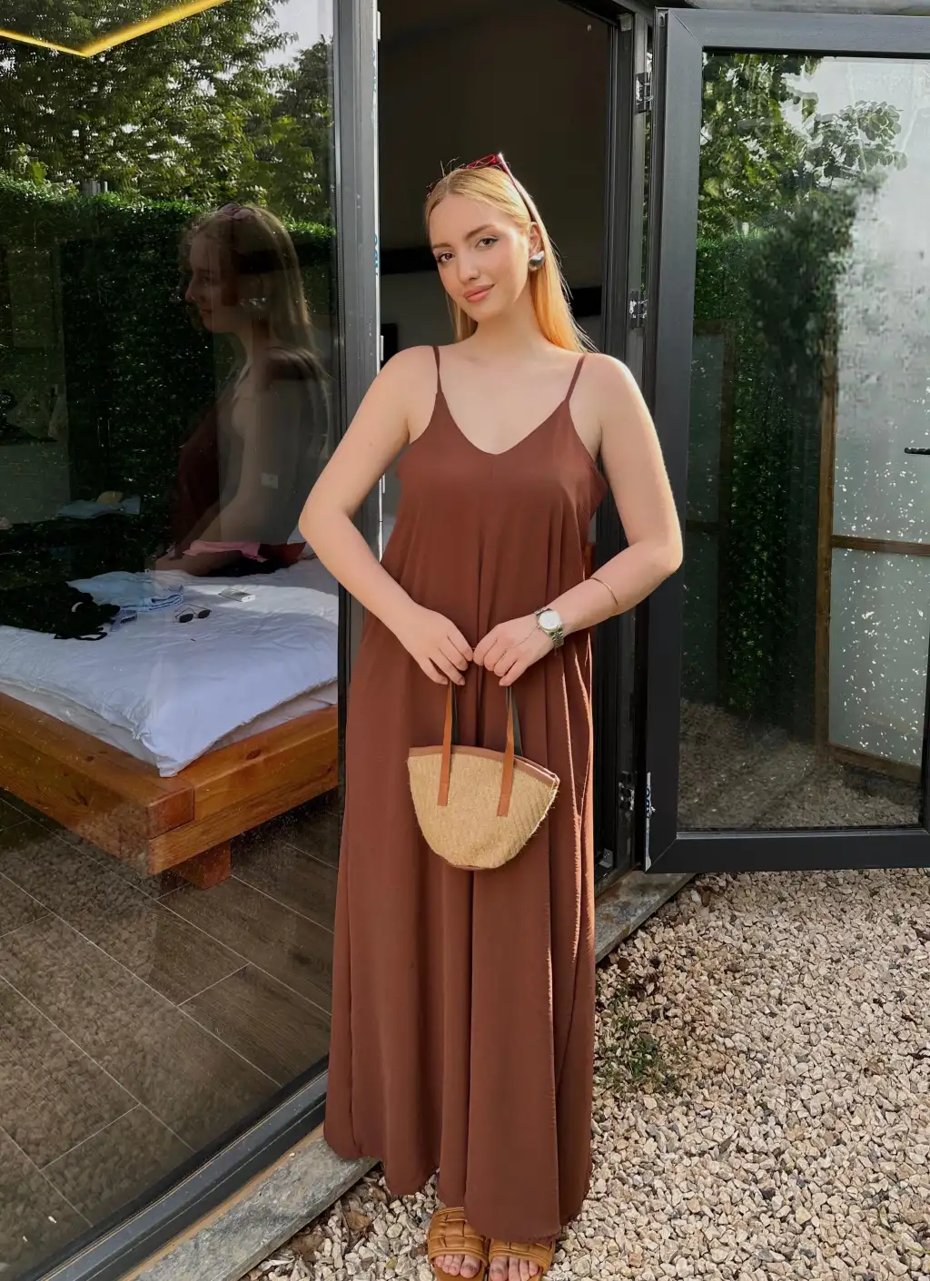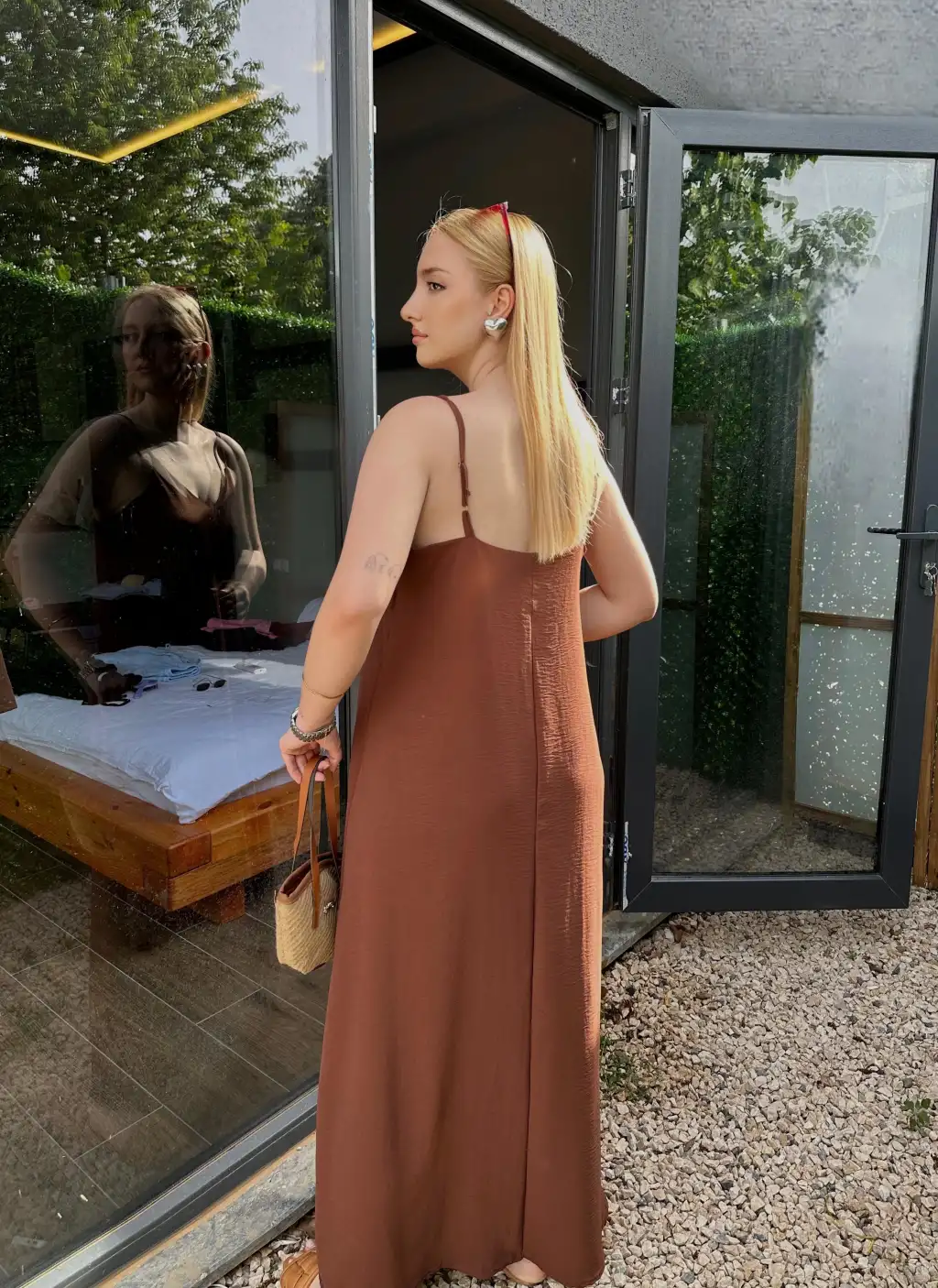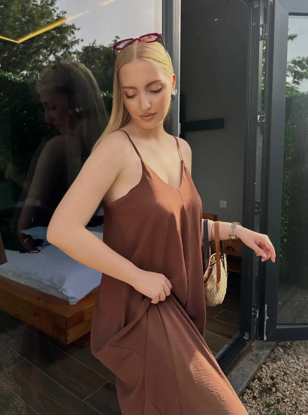 Bohemian Kahve Ayarlanabilir İp Askılı Salaş Elbise