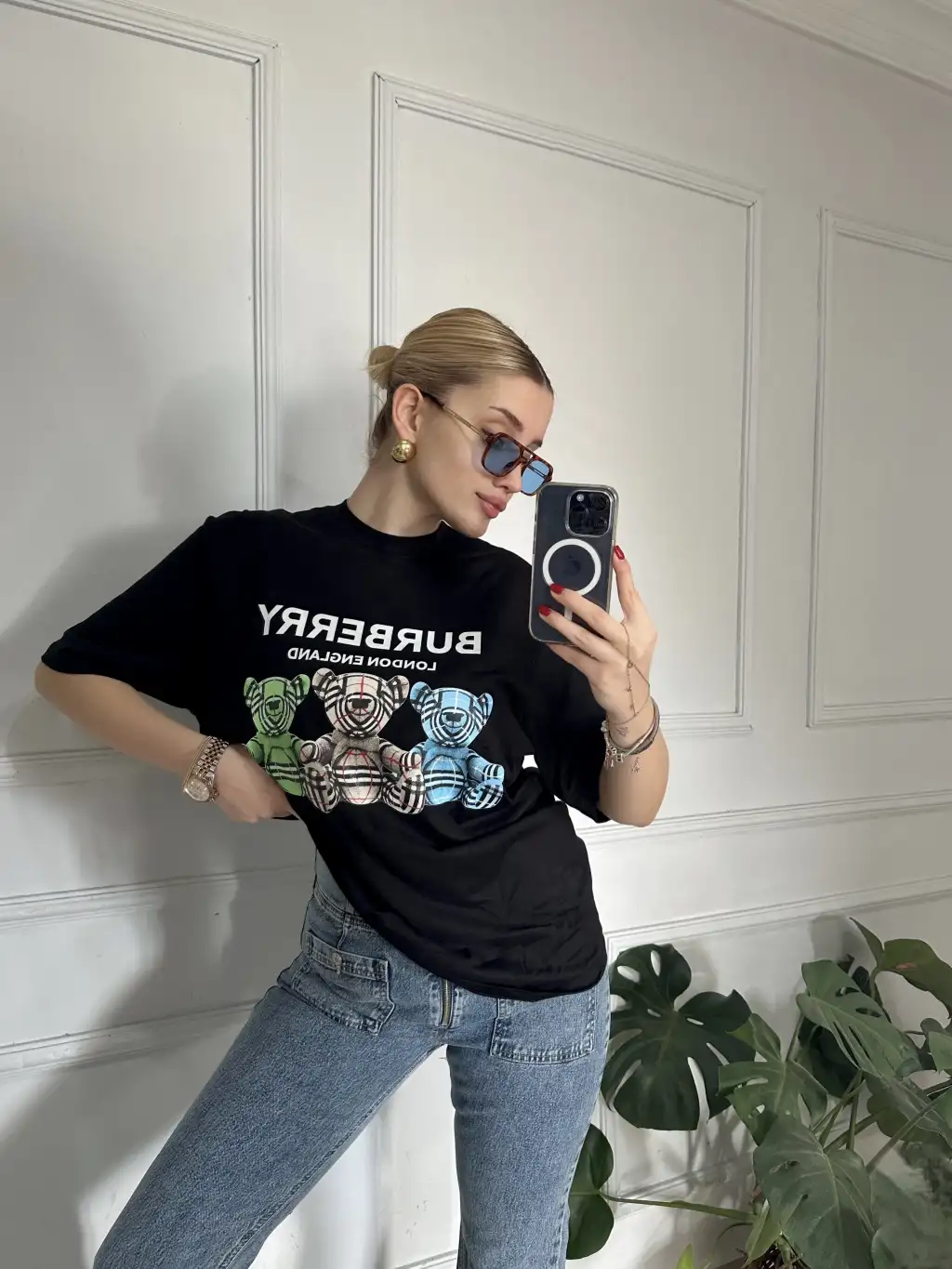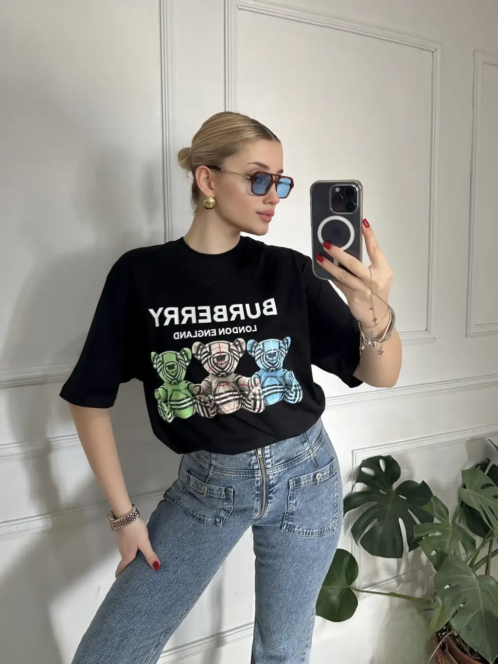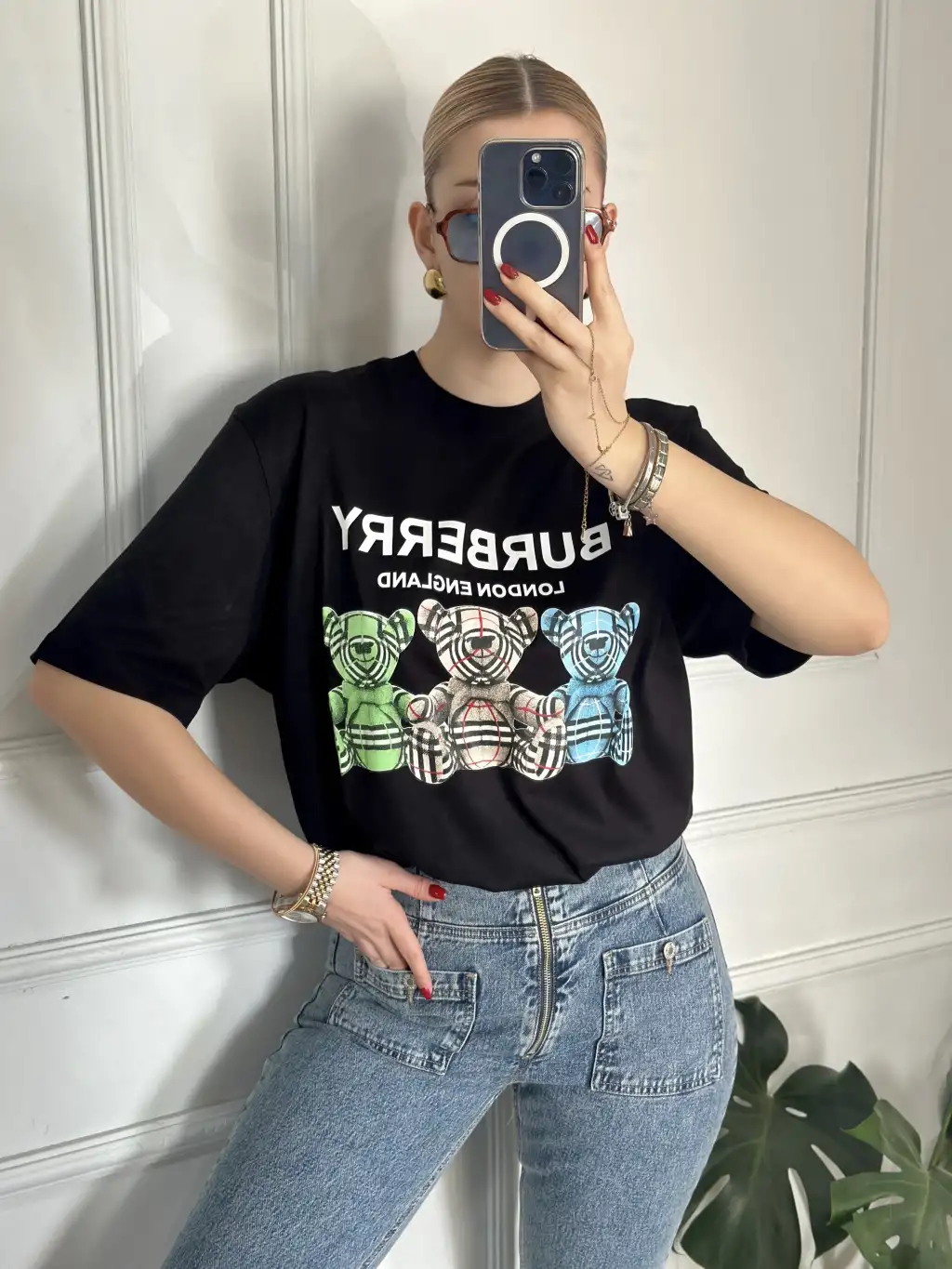 Burbe Siyah Ayıcık Baskılı %100 Pamuk Orijinal Marka Etiketli Oversize Tshirt