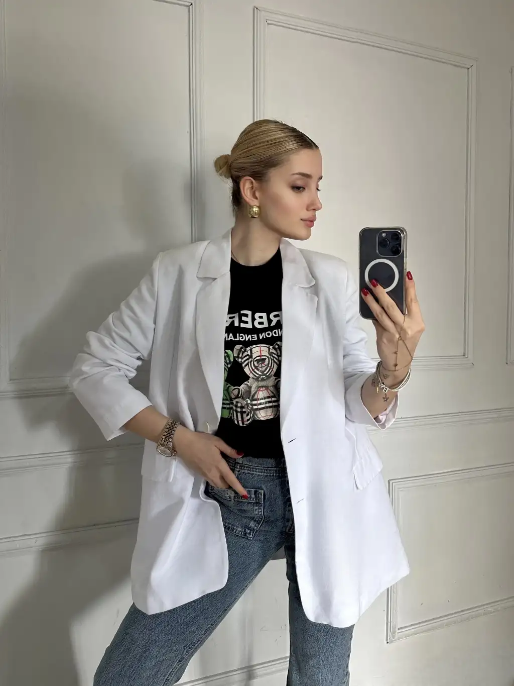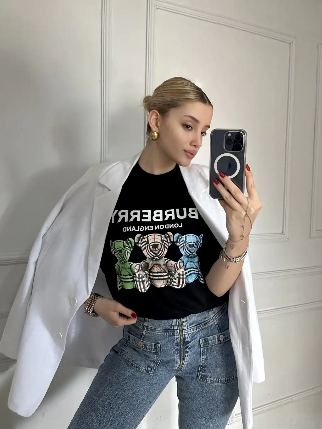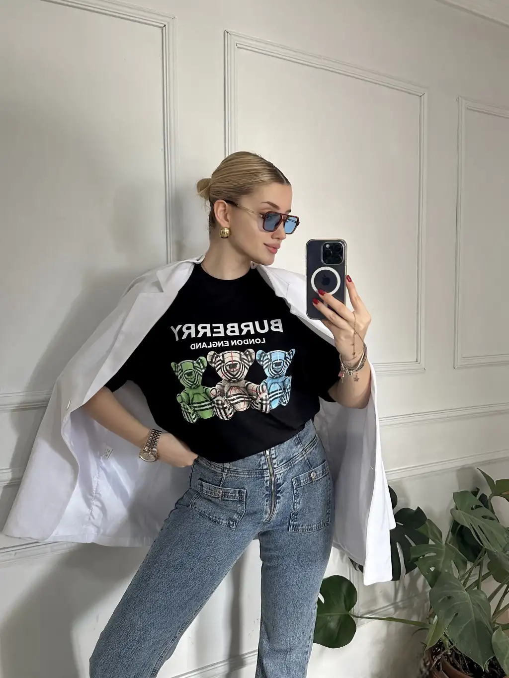 Burbe Siyah Ayıcık Baskılı %100 Pamuk Orijinal Marka Etiketli Oversize Tshirt