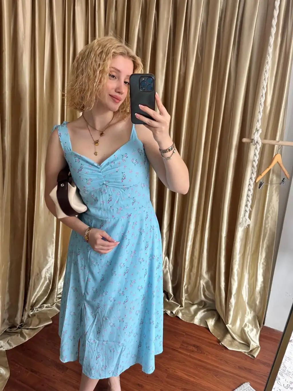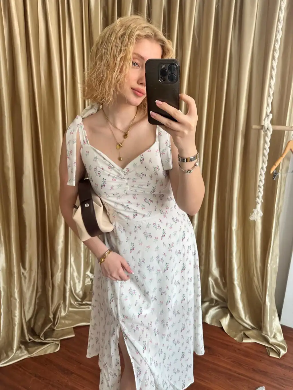Cosmo Şifon Midi Boy Çiçekli Elbise