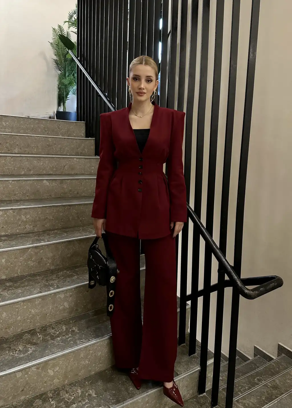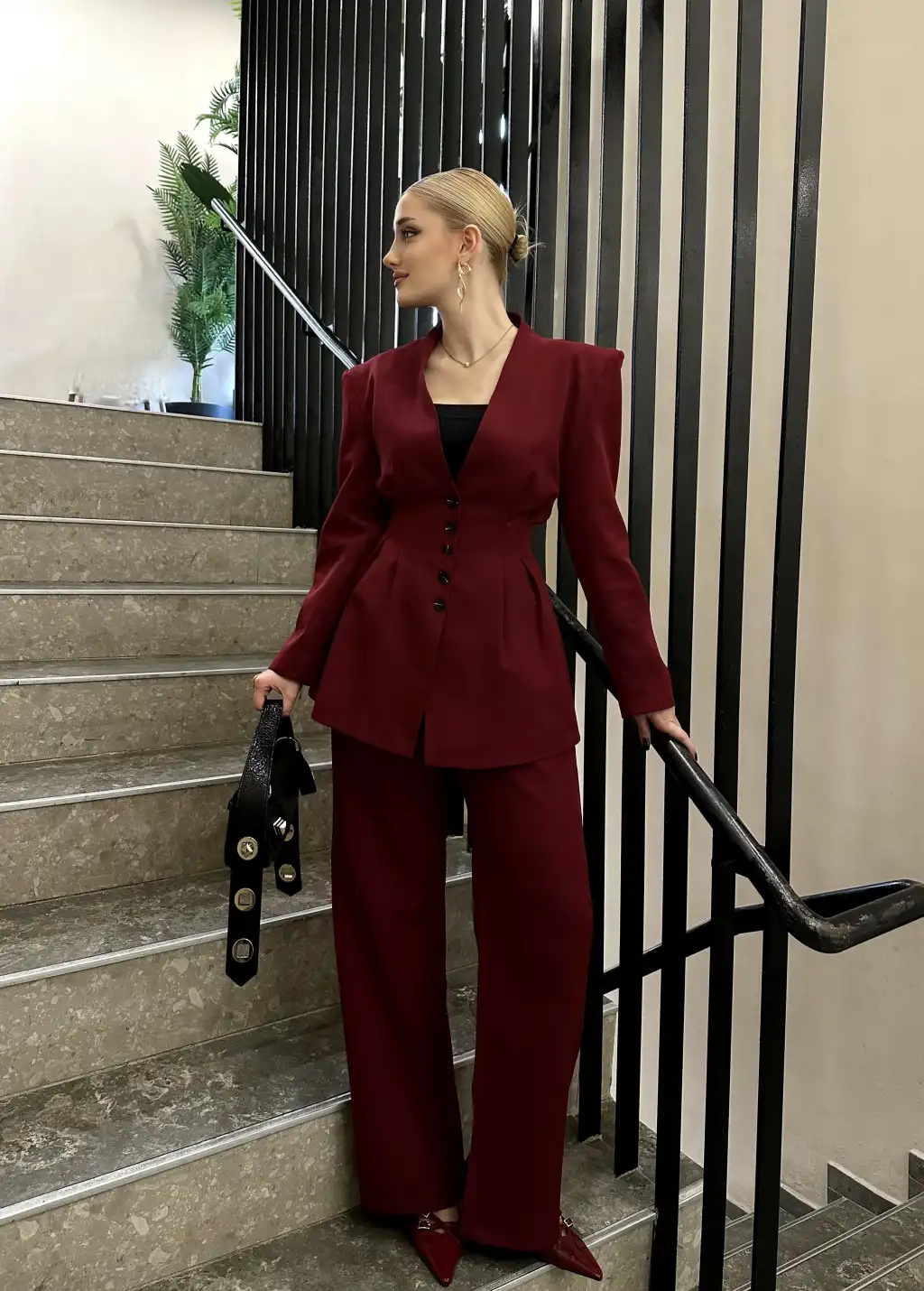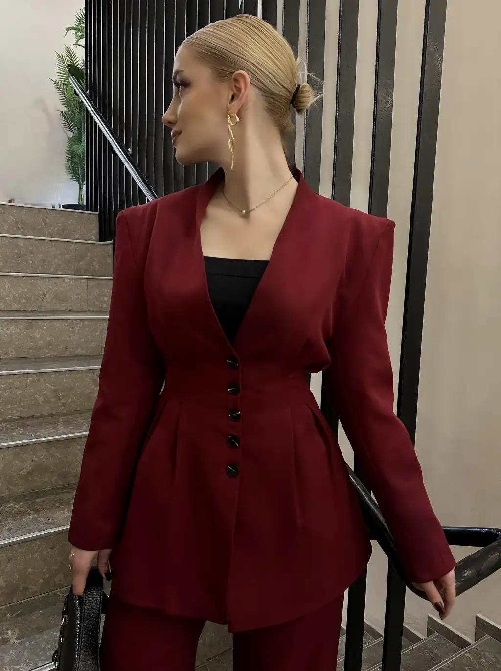 Davina Bordo Bel Korseli Vatkalı Blazer Ceket