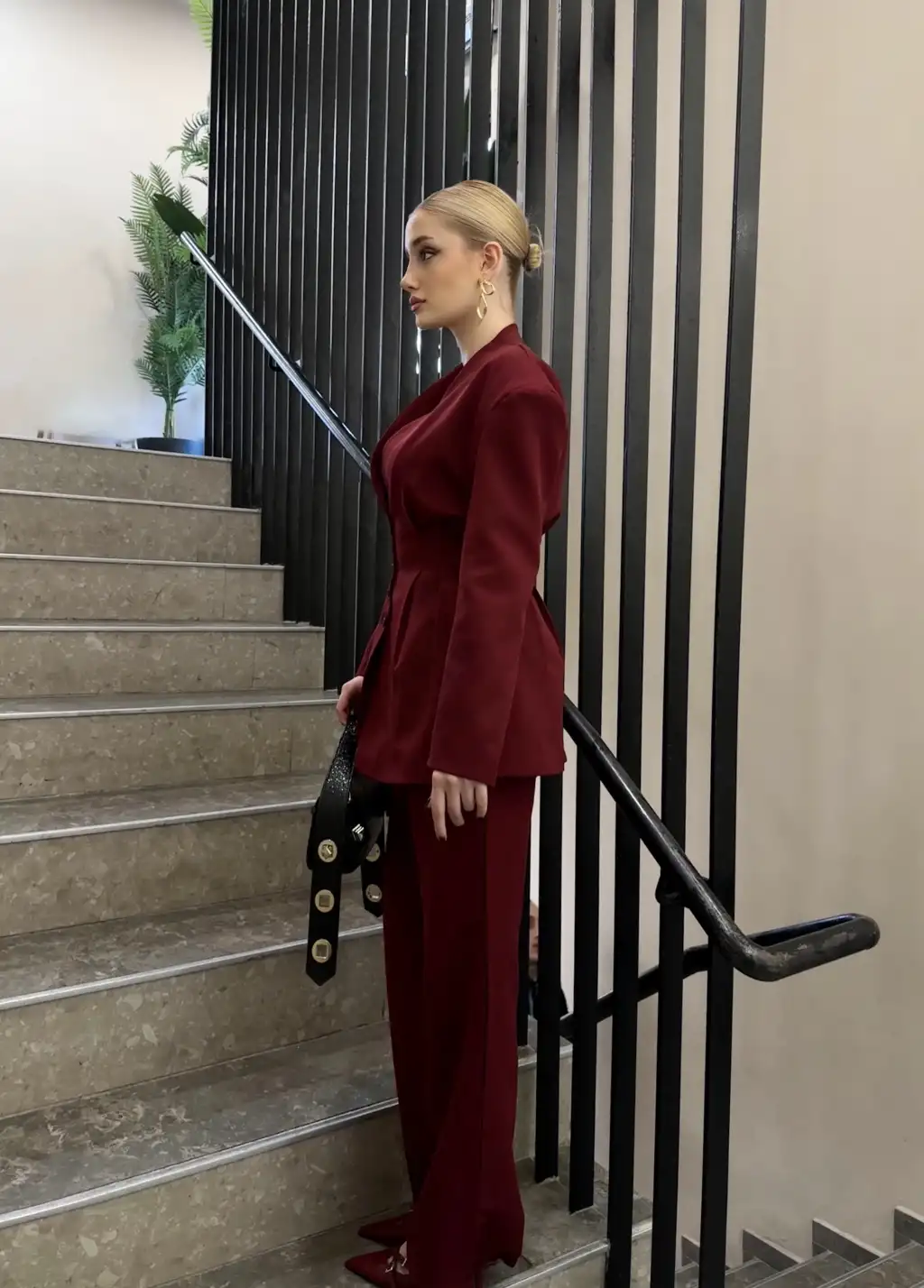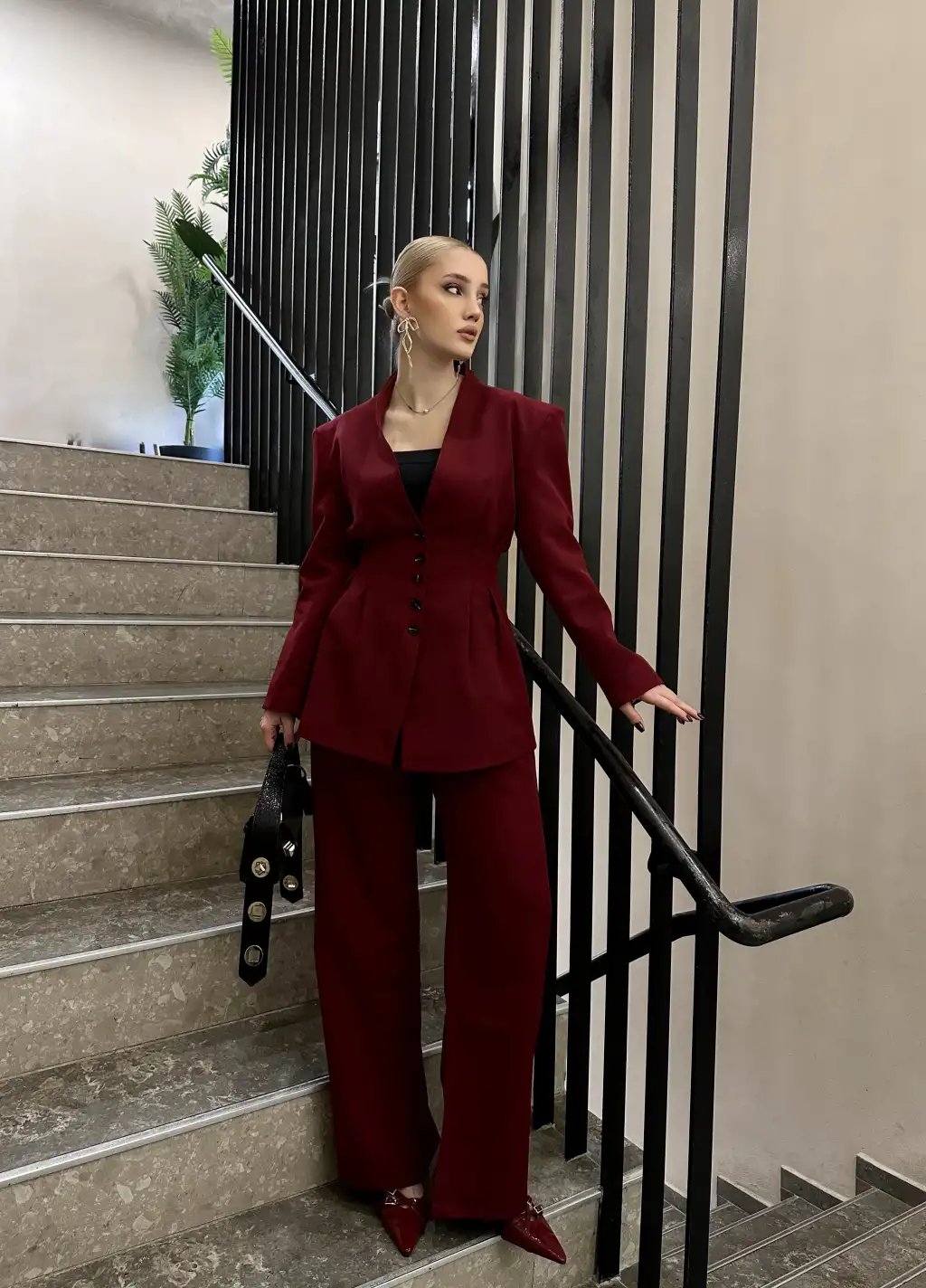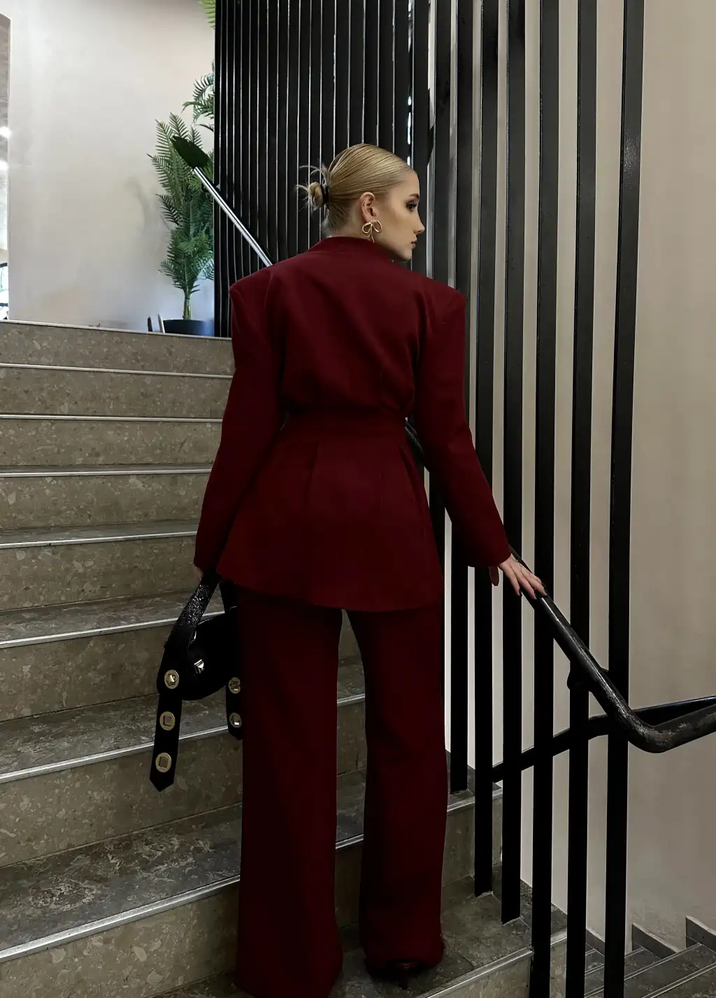 Davina Bordo Bel Korseli Vatkalı Blazer Ceket