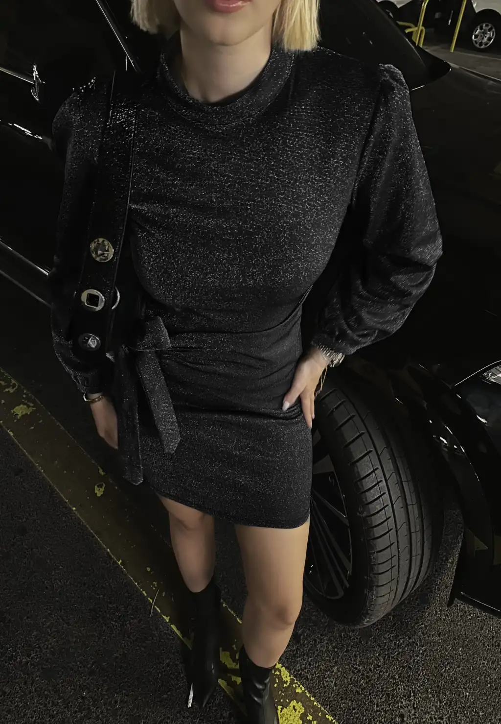 Denia Siyah Gri Simli Kurdele Detay Elbise