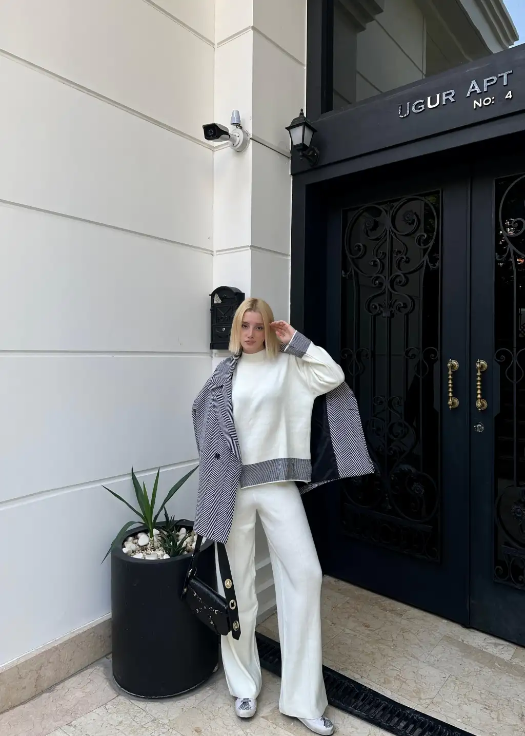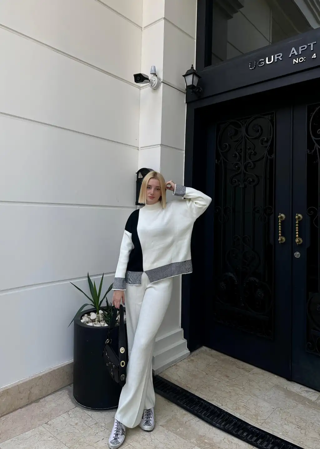 Duel Balıkçı Yaka Kazak/Pantolon Beyaz Triko Takım