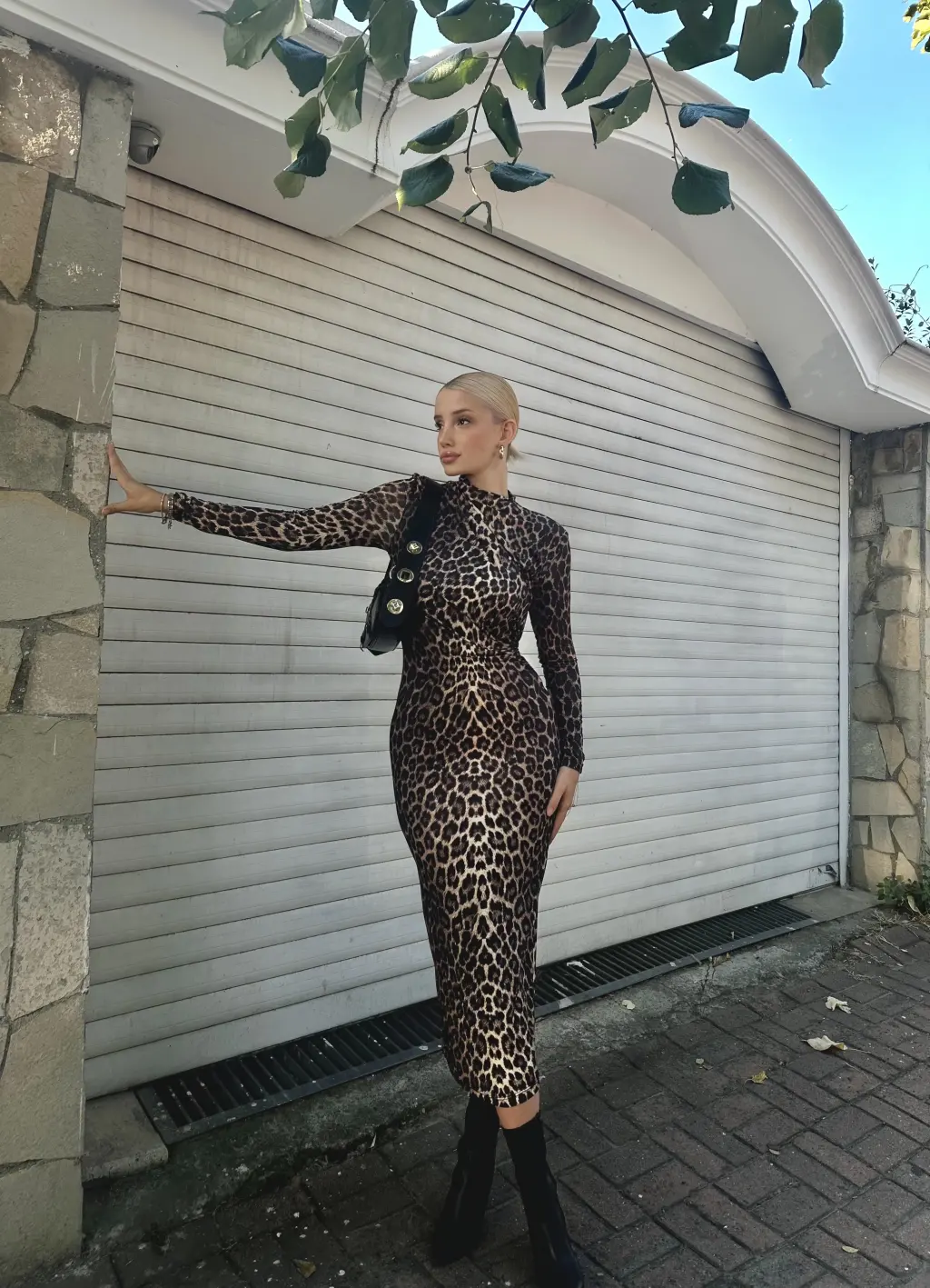 Era Drapeli Midi Boy Leopar Elbise