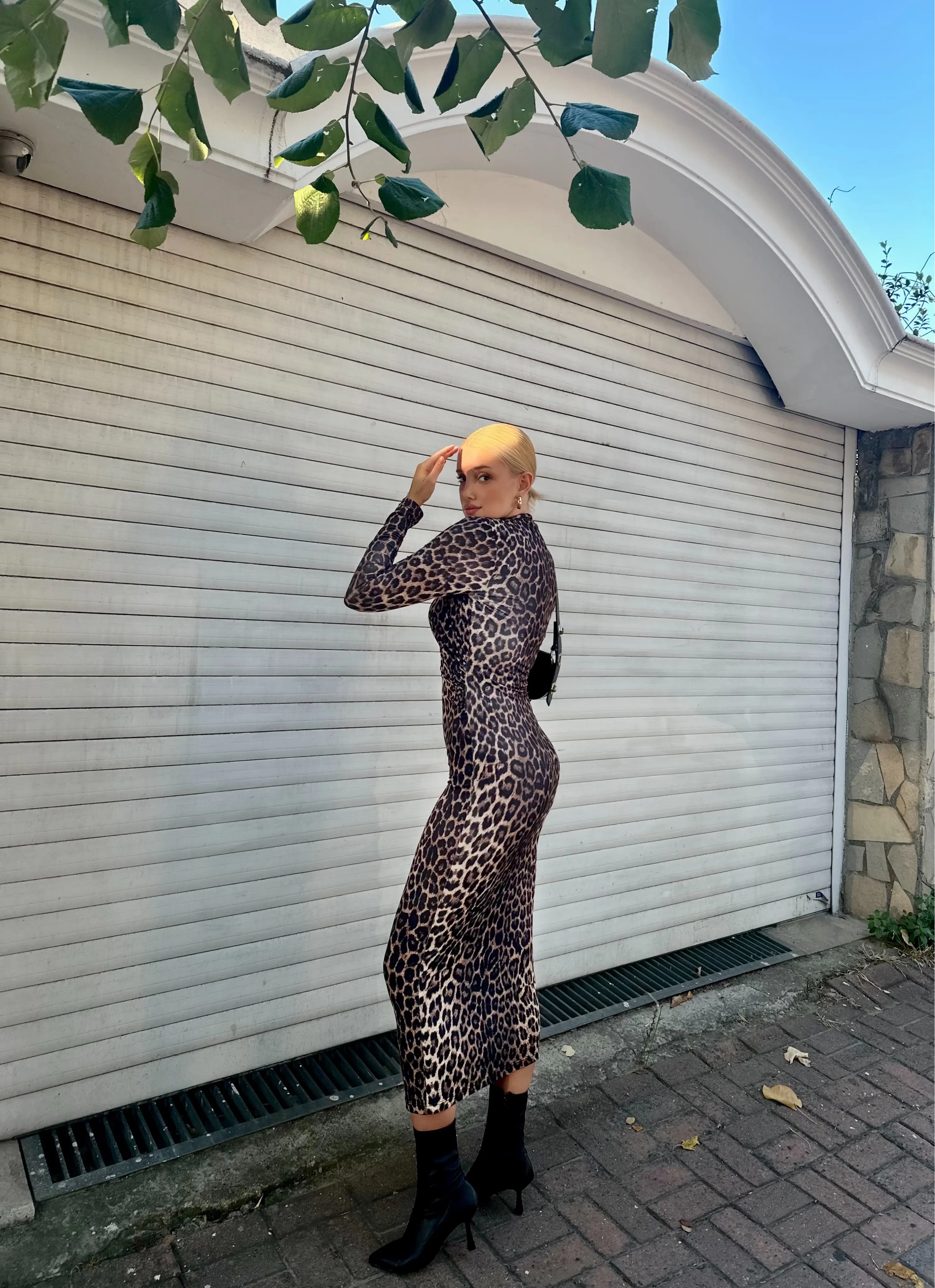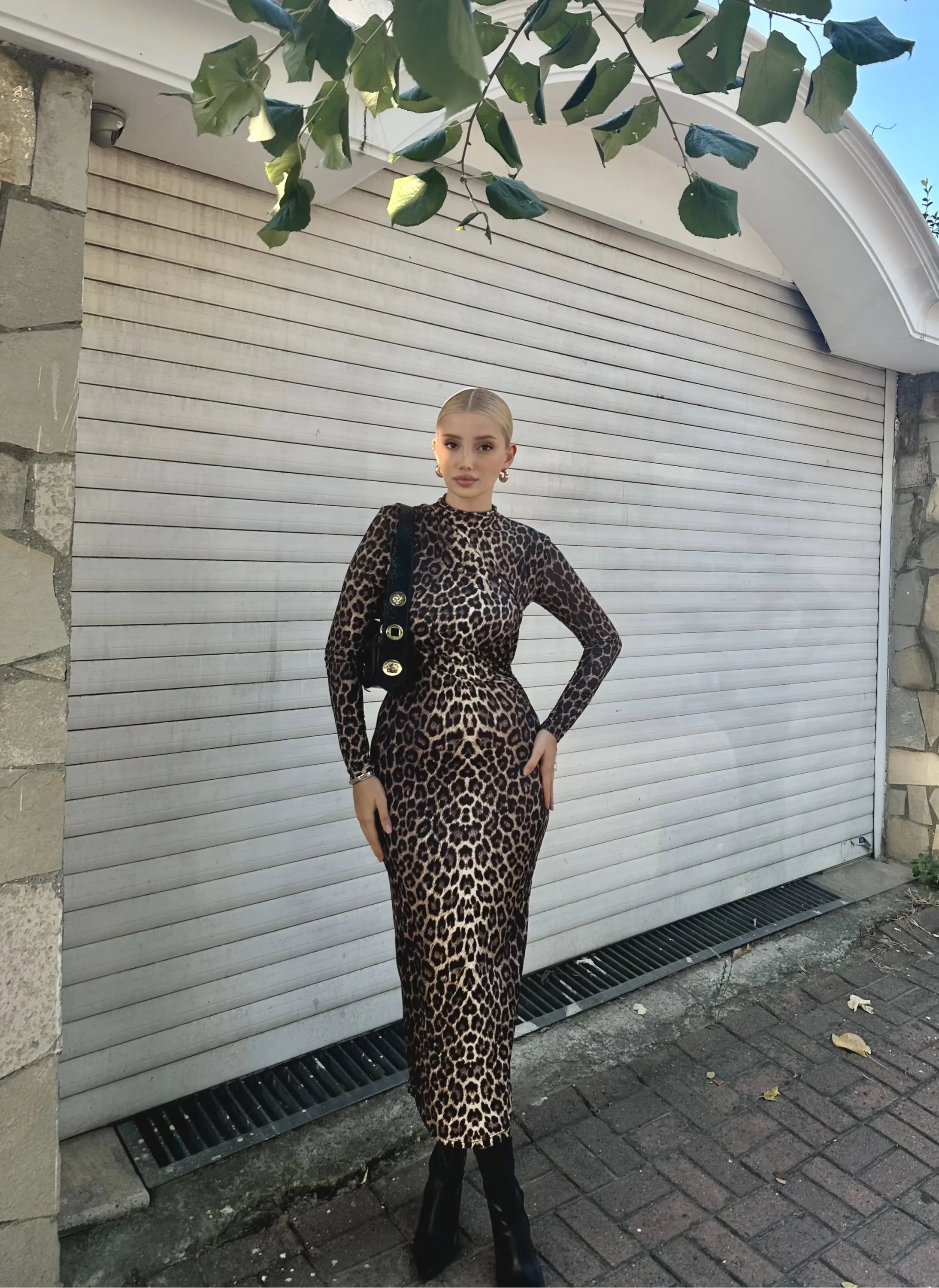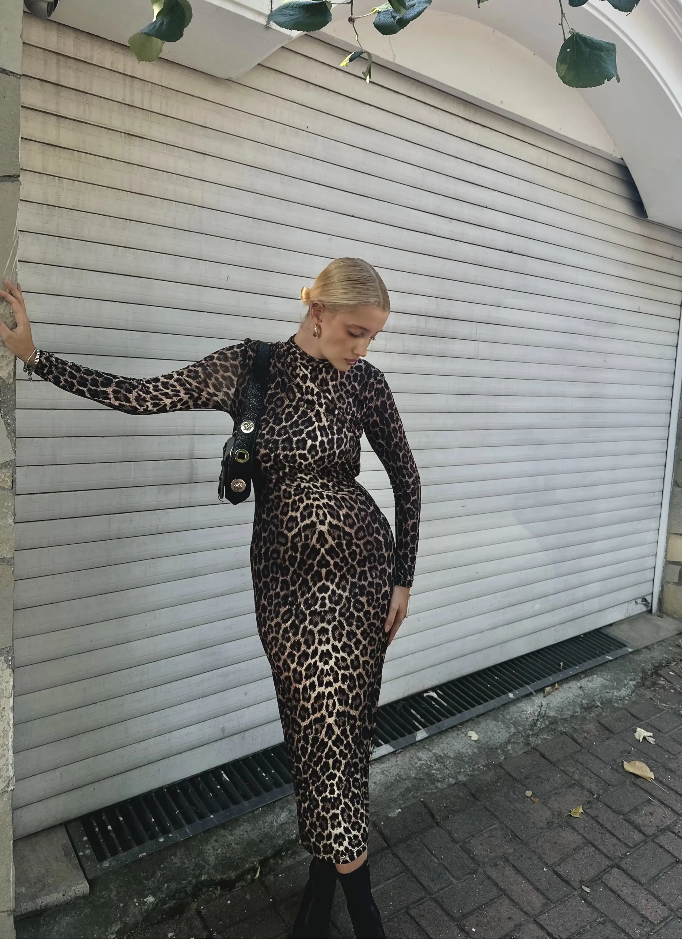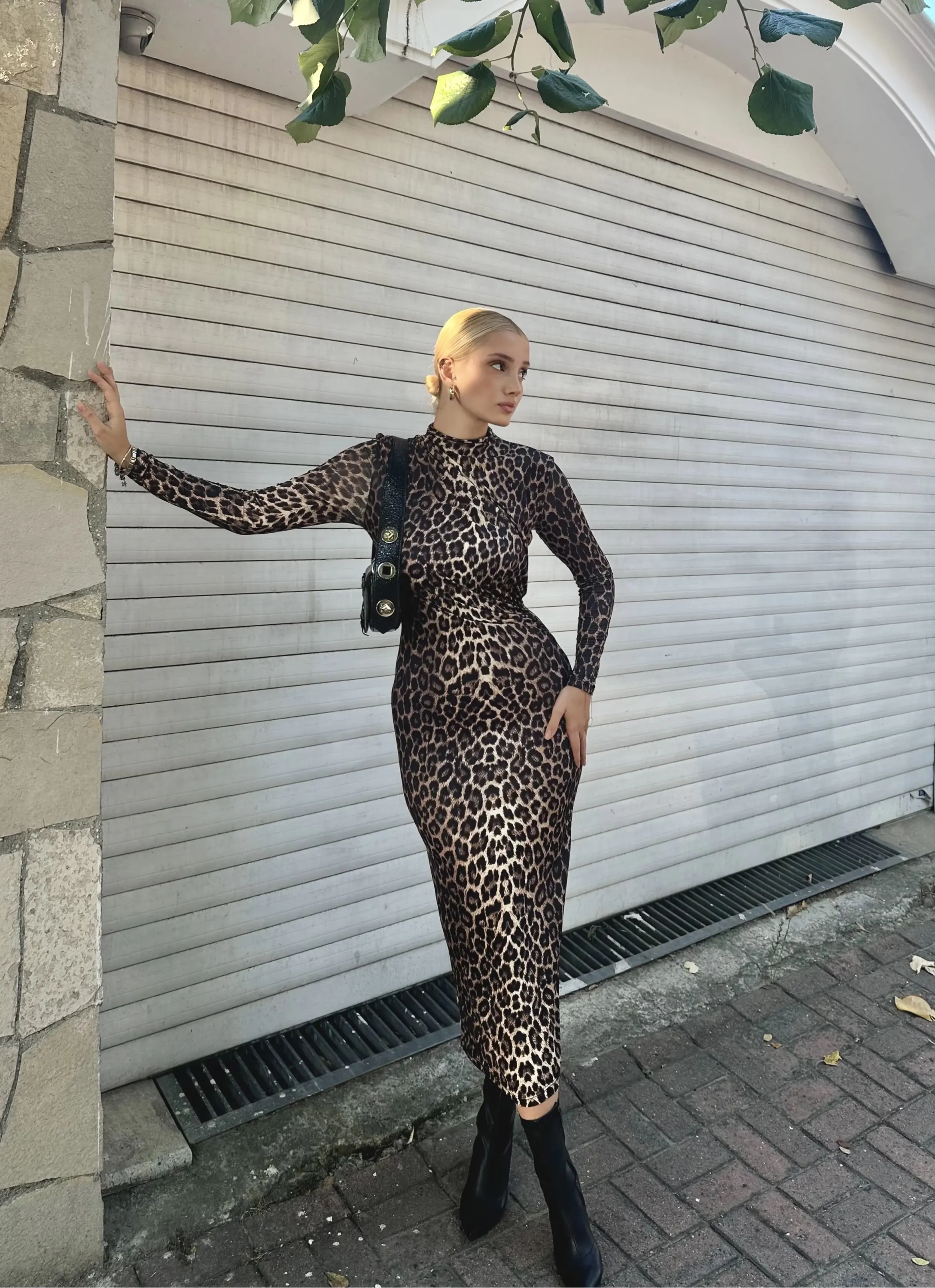 ERA DRAPELİ MİDİ BOY LEOPAR ELBİSE