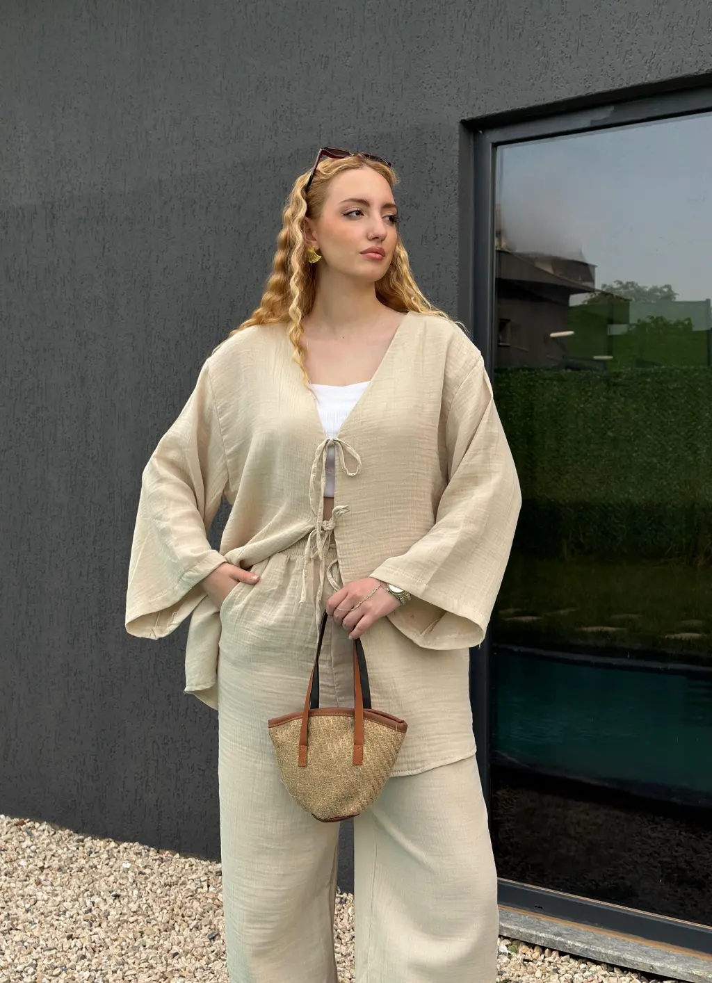 Ferina Taş Muslin Ön Bağlamalı Kimono Takım