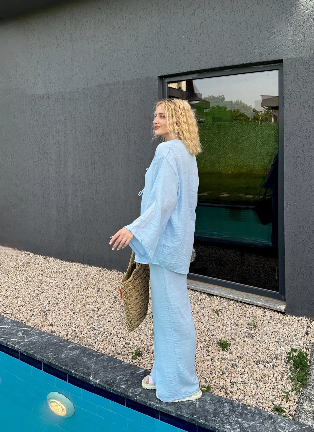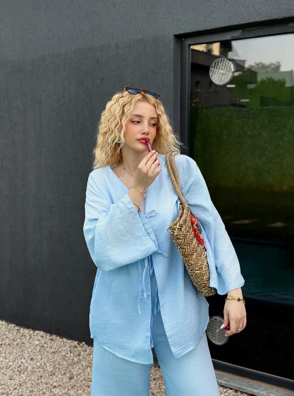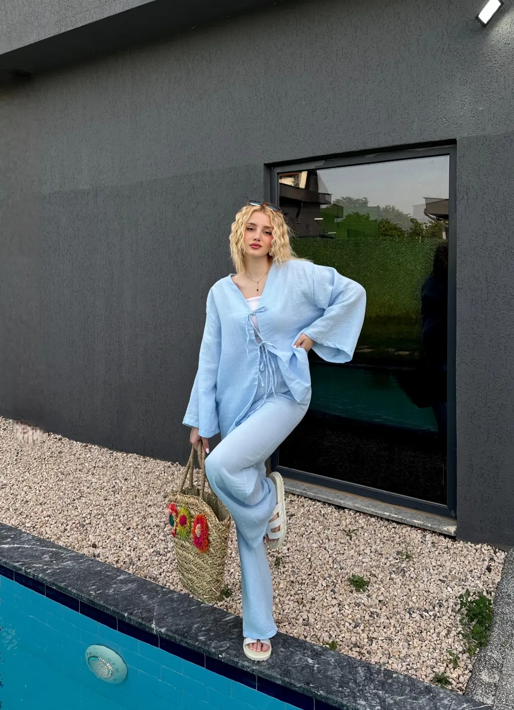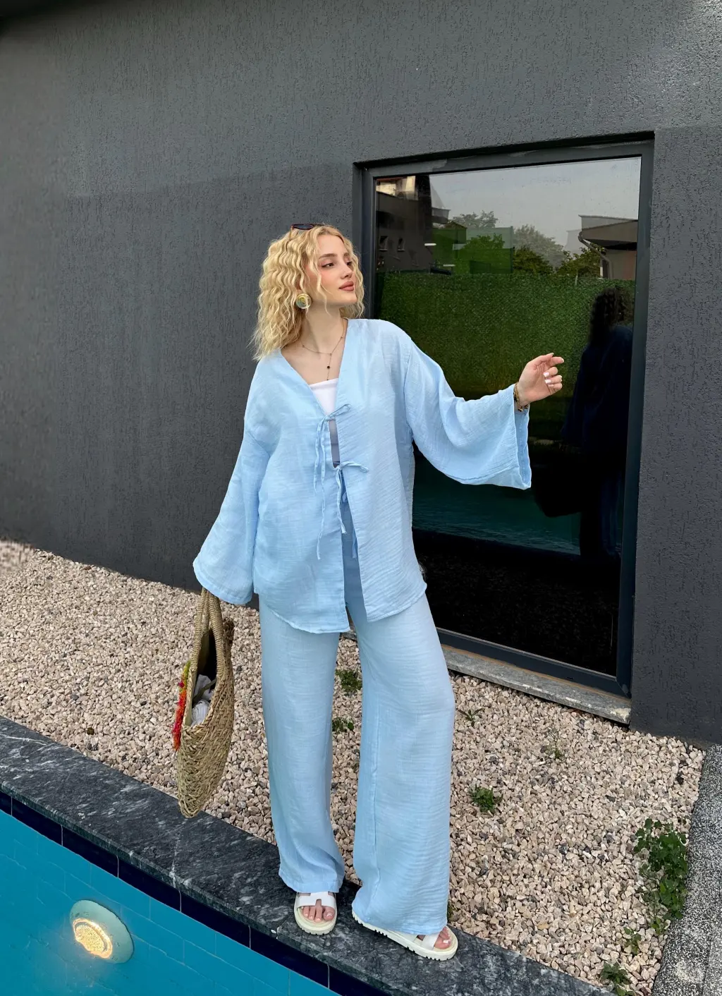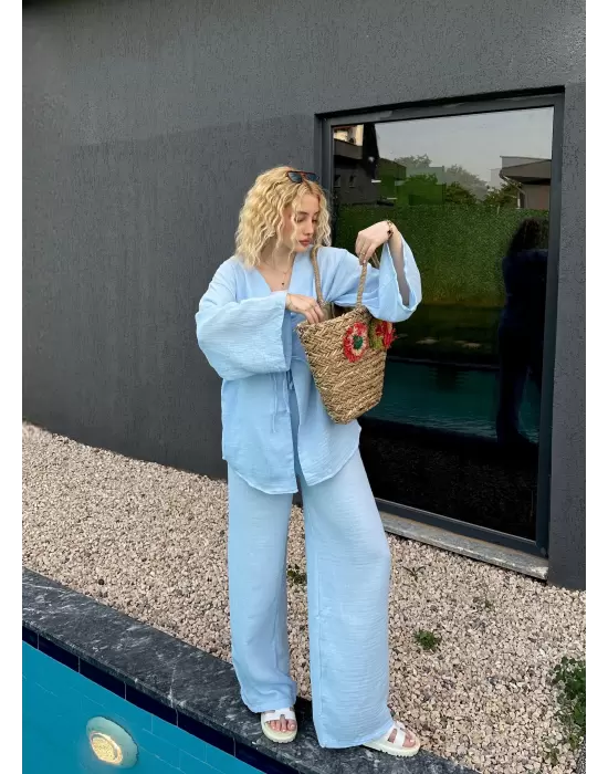Ferina Bebe Mavi Muslin Ön Bağlamalı Kimono Takım