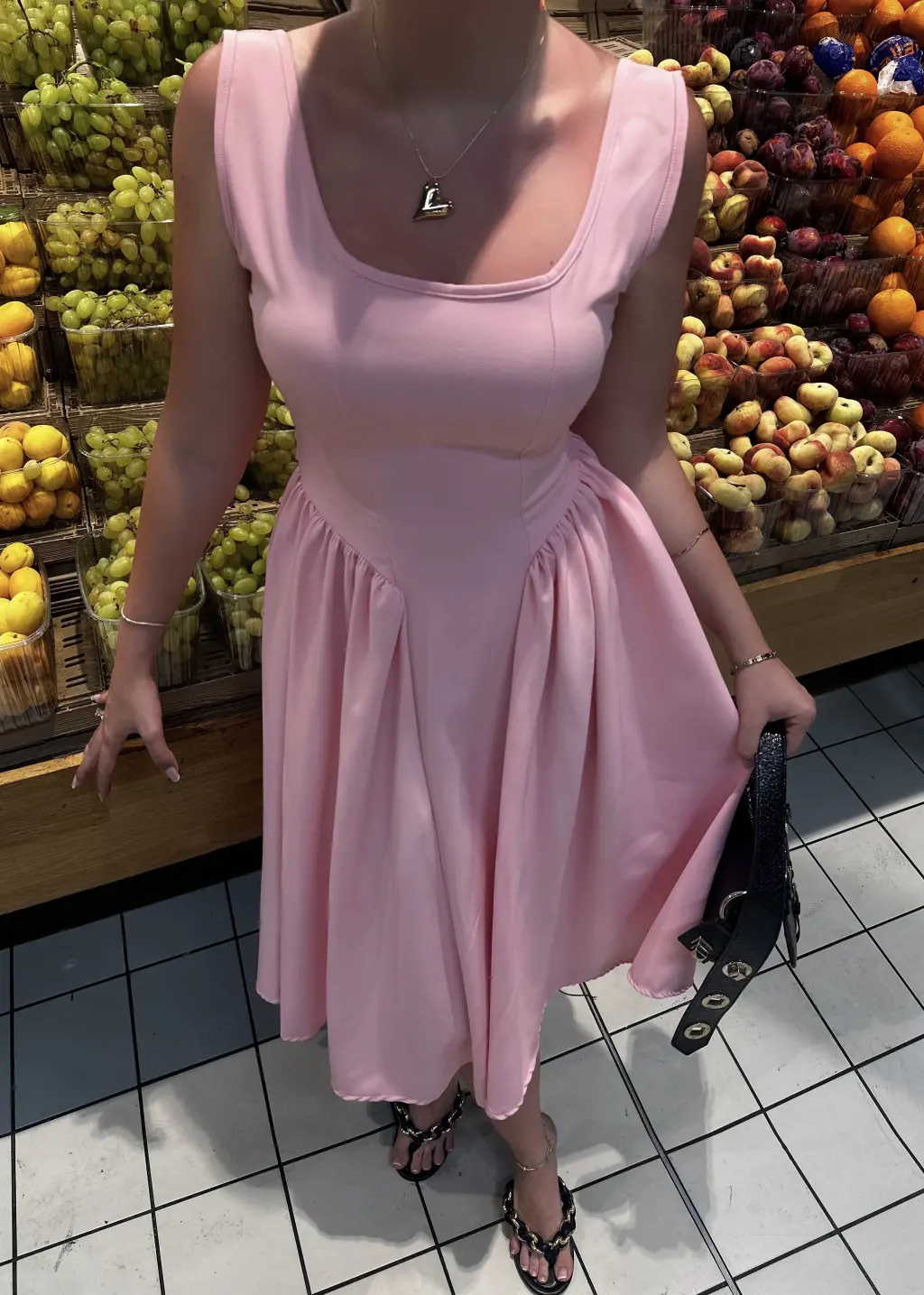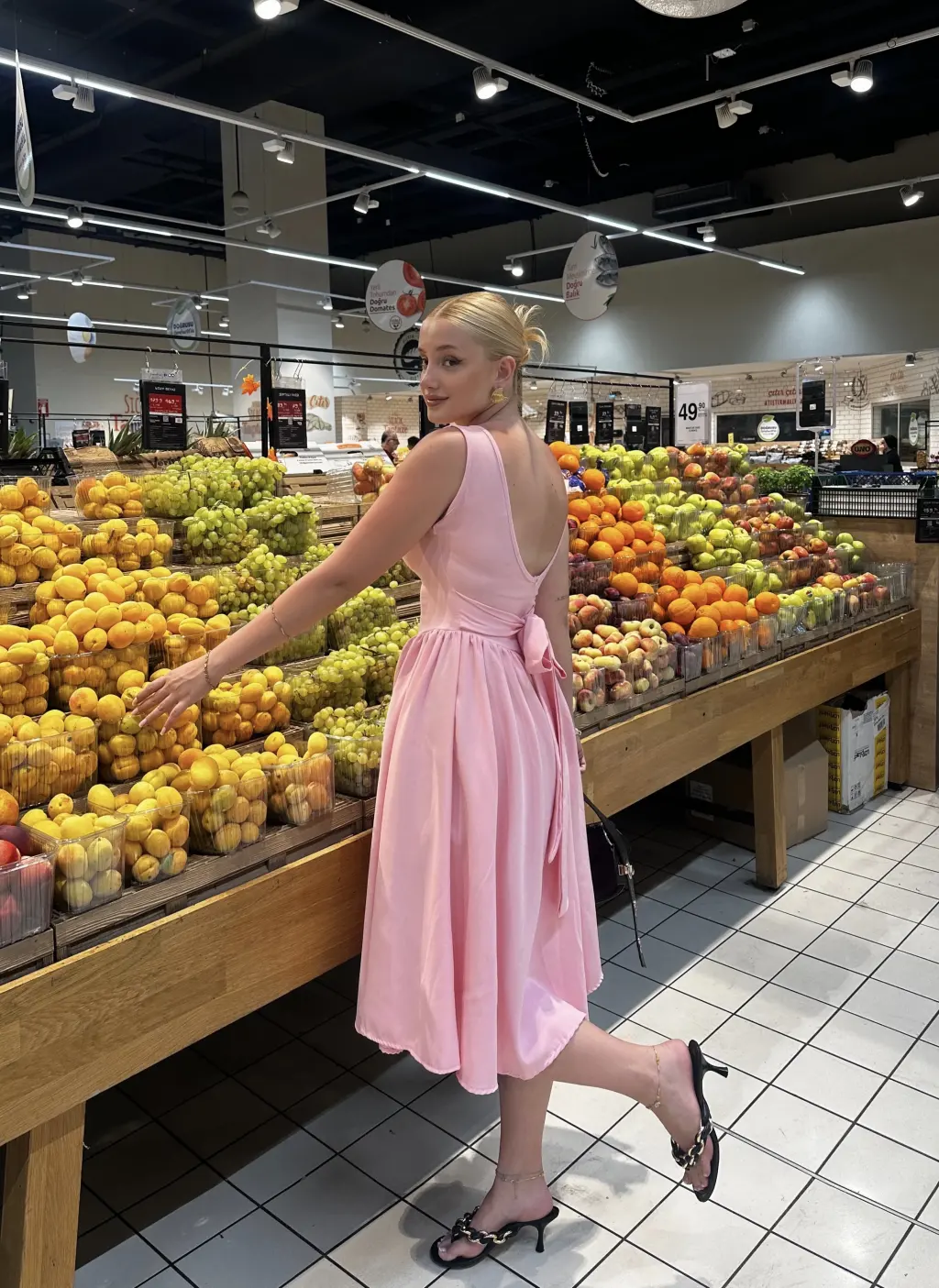 Fiona Pembe Kurdele Detay Korseli Midi Boy Elbise