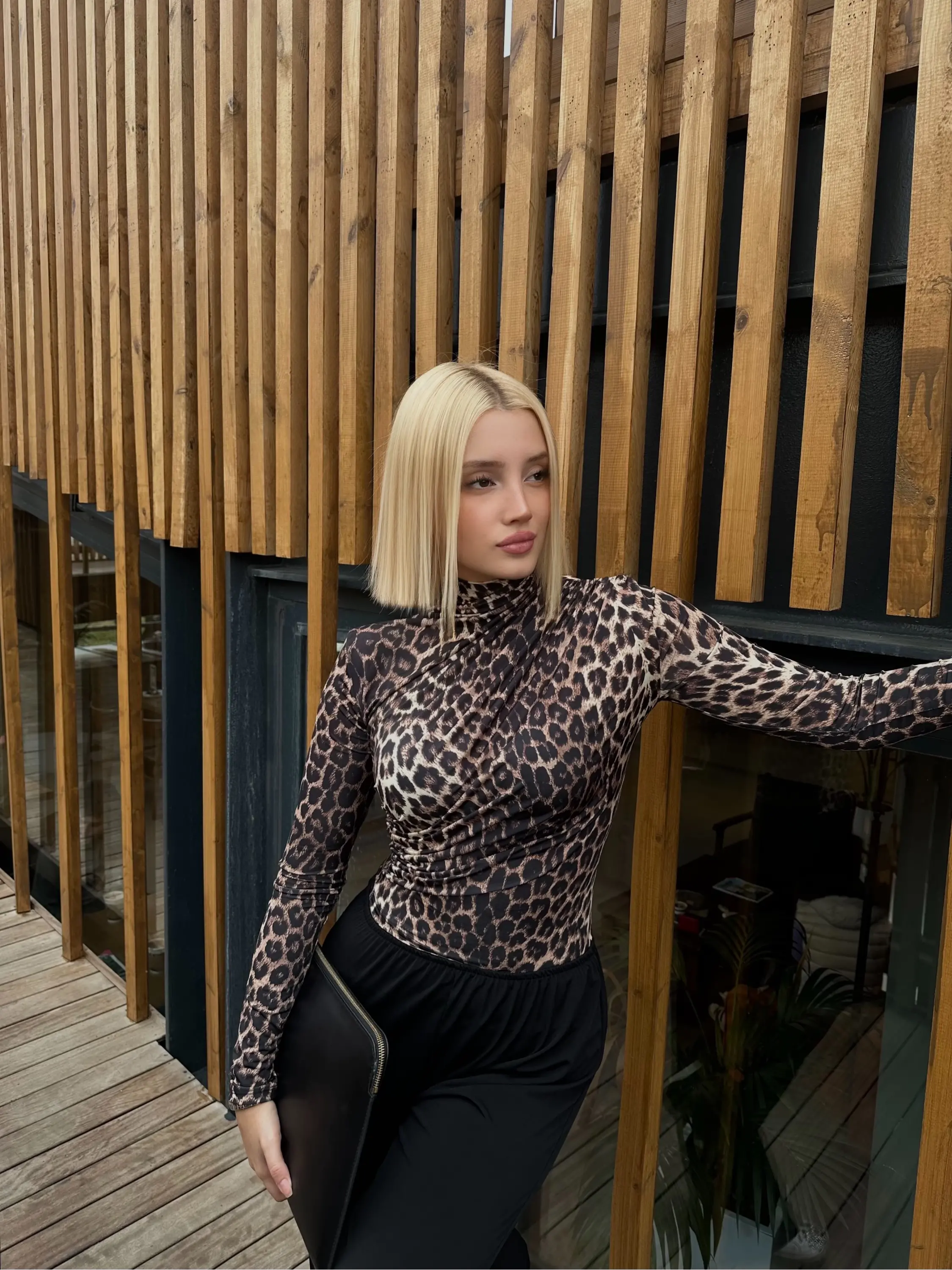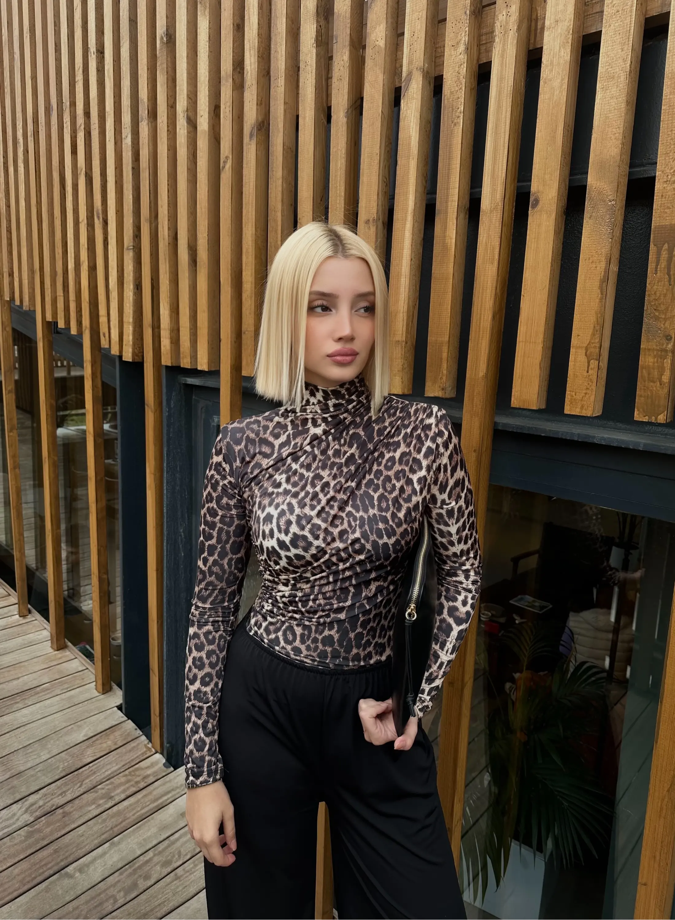 HOLLY KAHVE LEOPAR DRAPELİ BLUZ