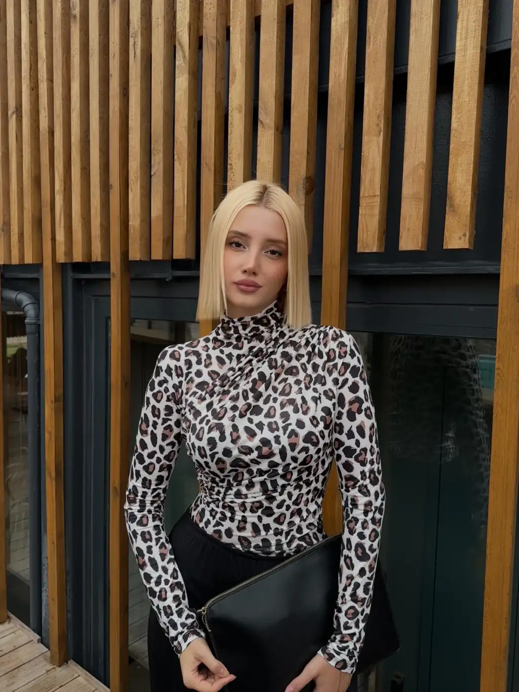 Holly Beyaz Leopar Drapeli Bluz