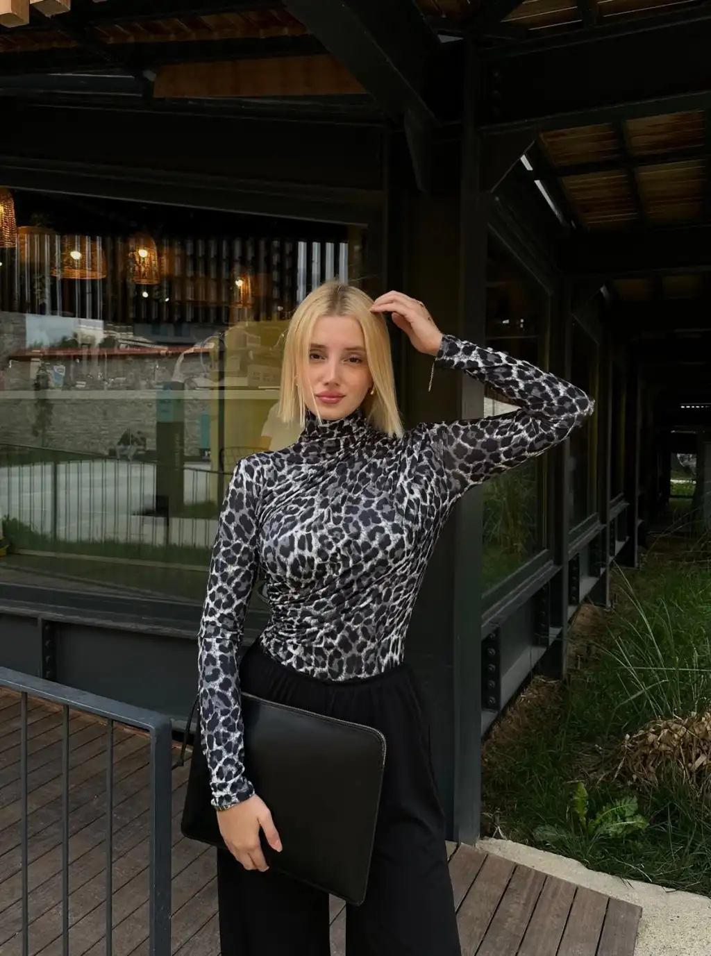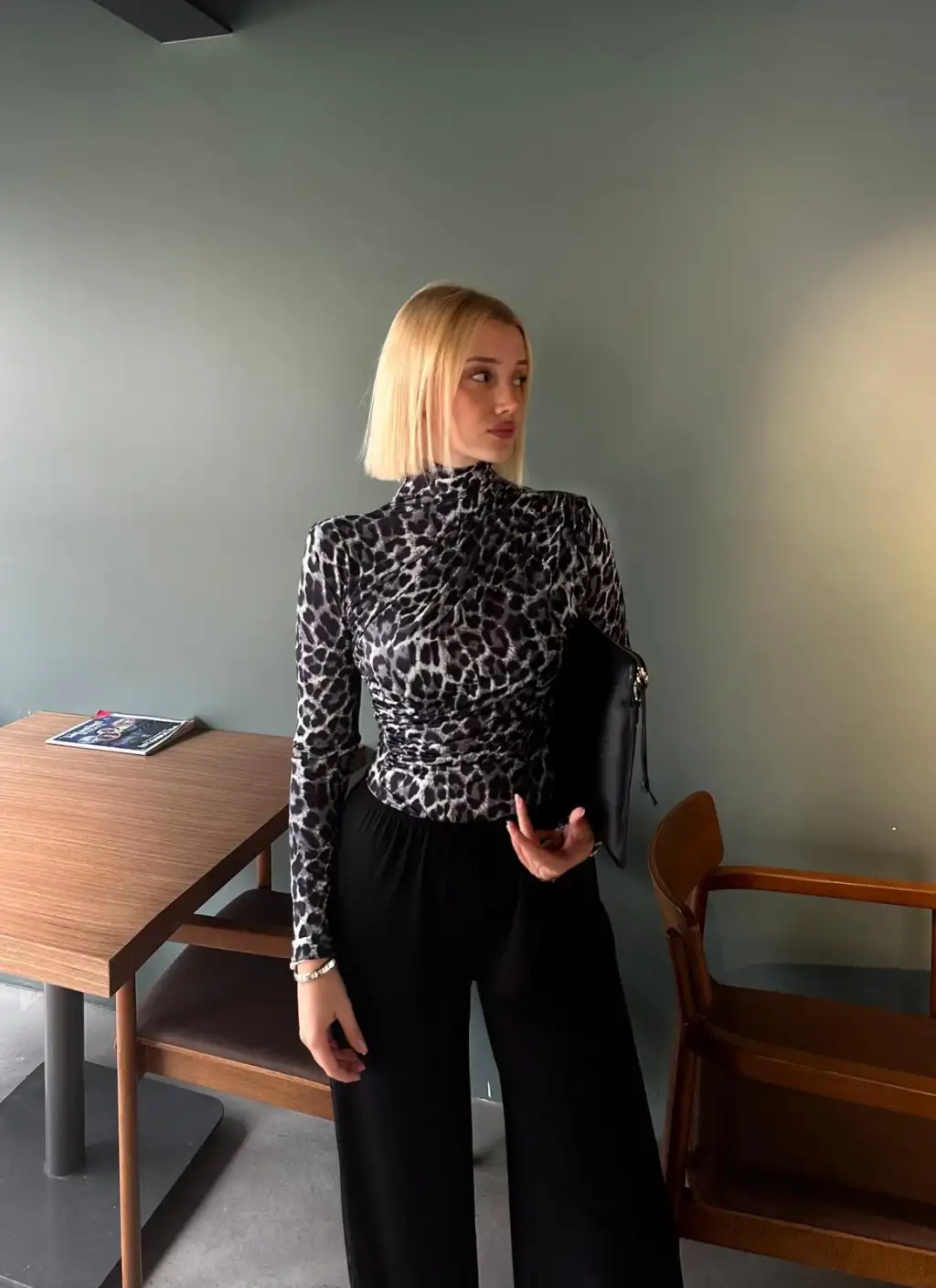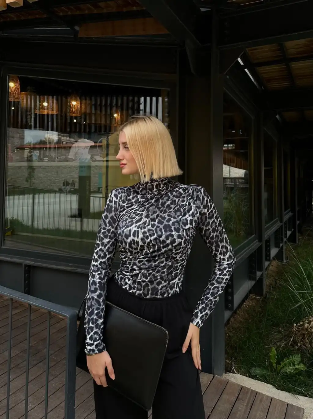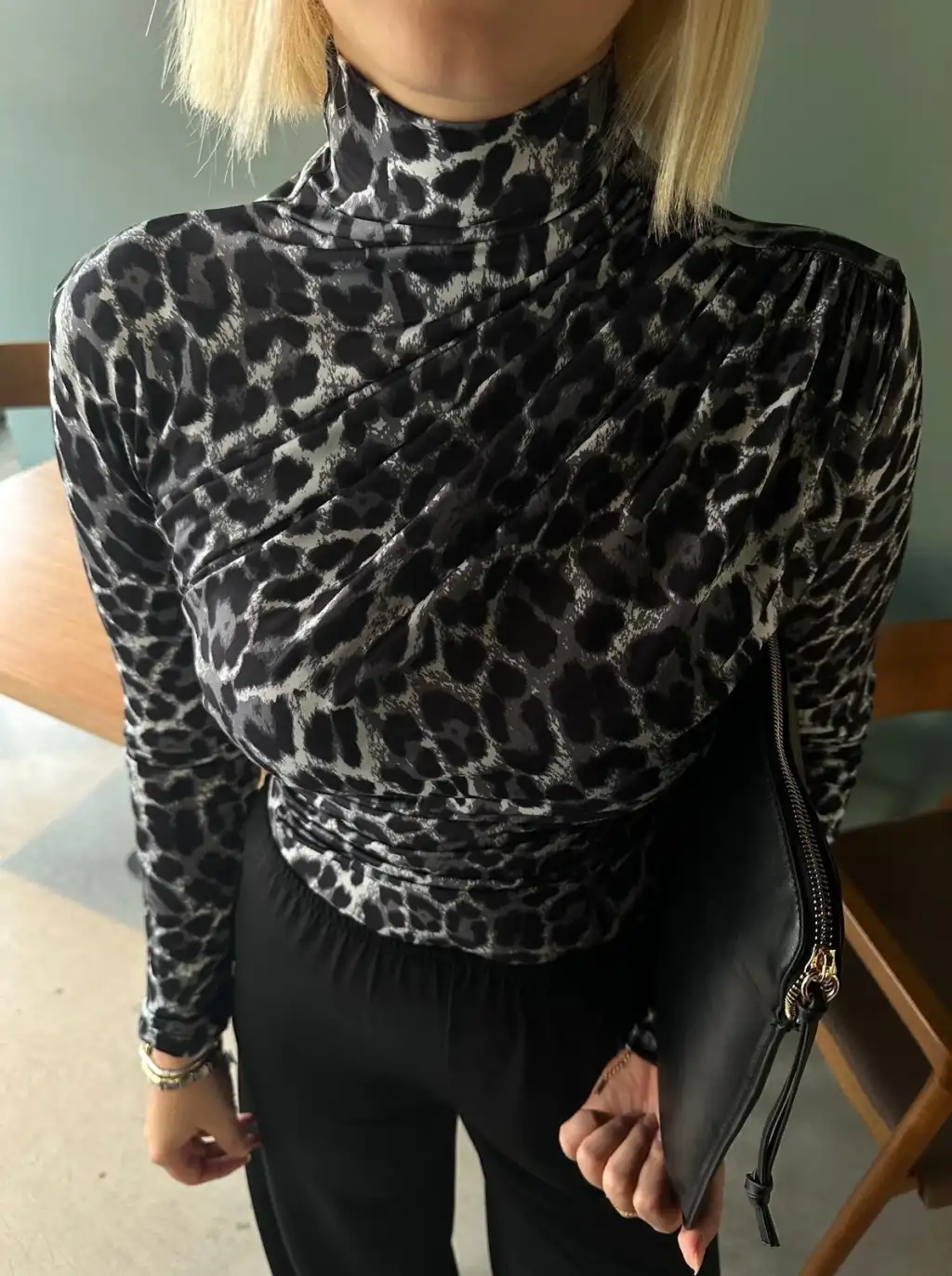 Holly Siyah Leopar Drapeli Bluz
