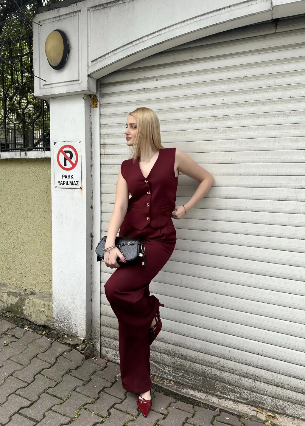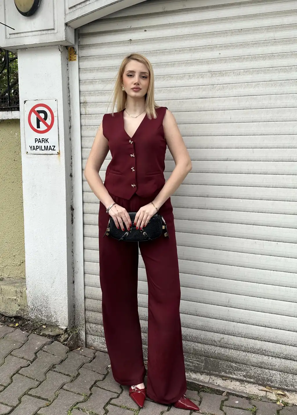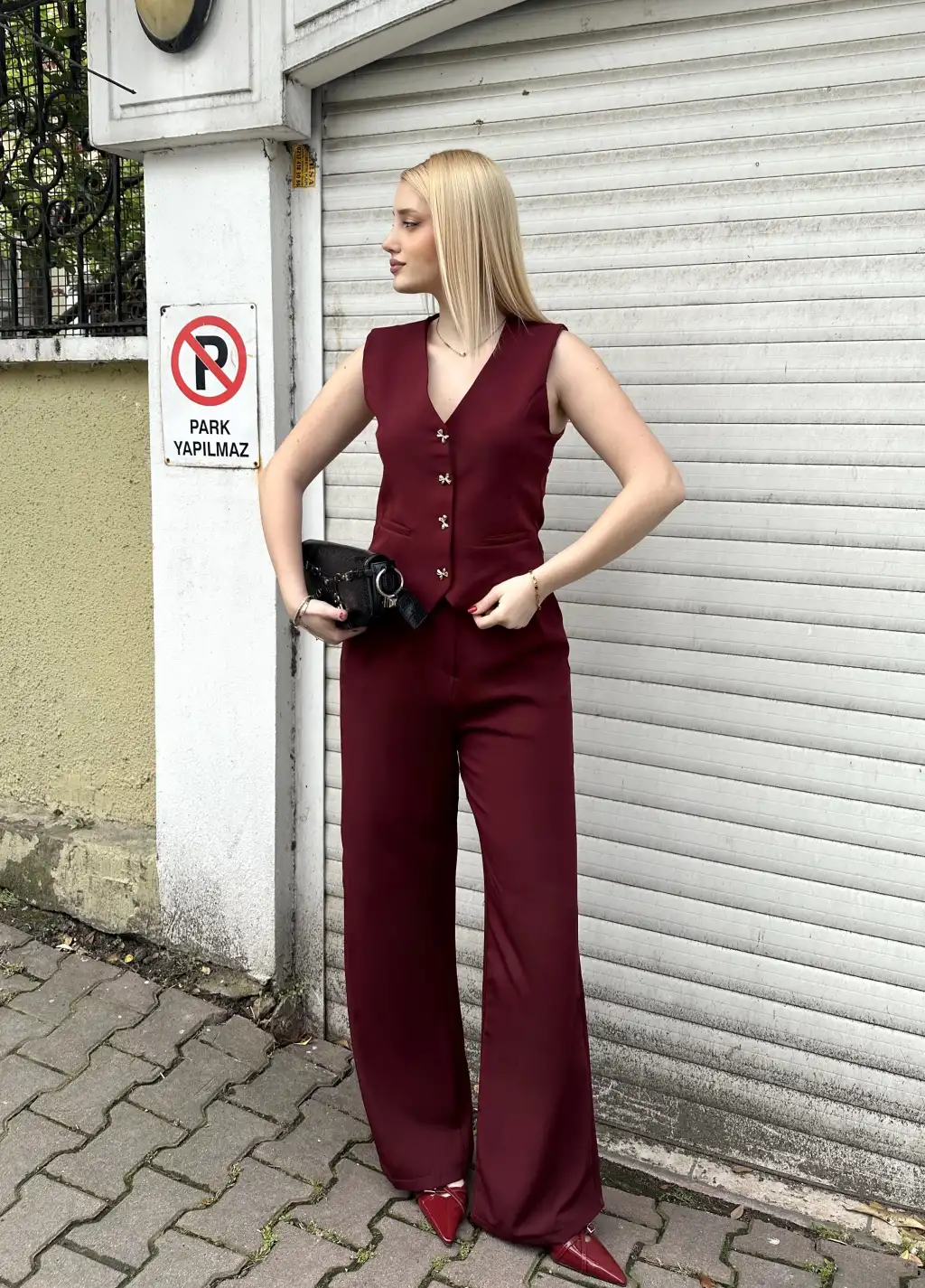 Laris Bordo Gold Kelebek Düğme Yelek Pantolon Takım