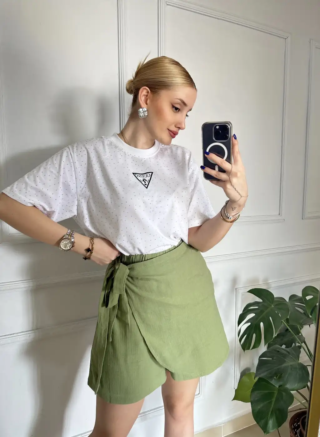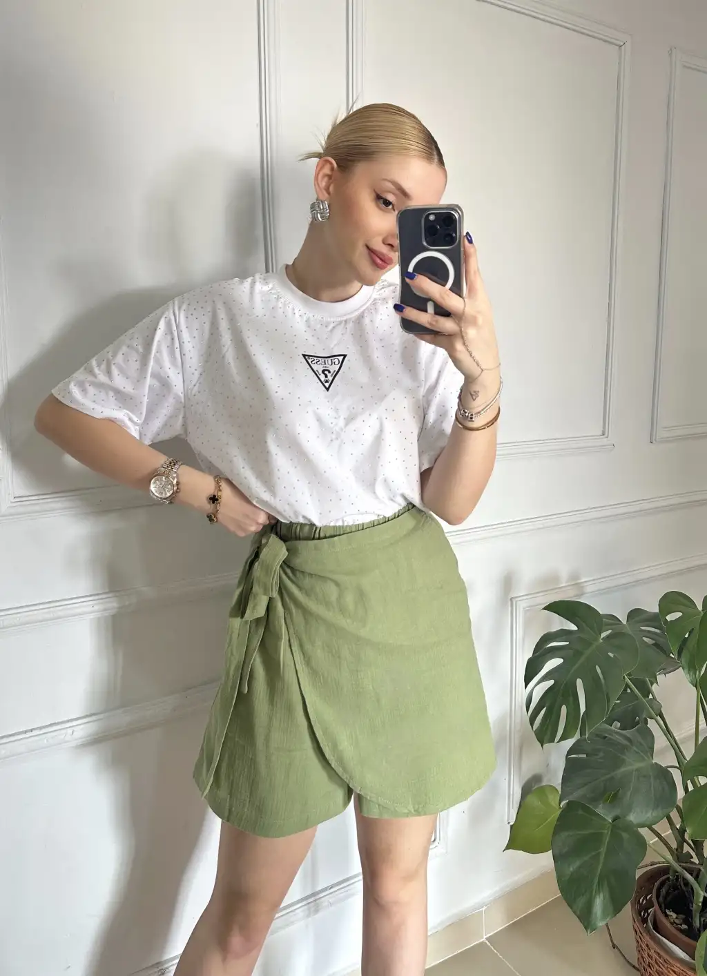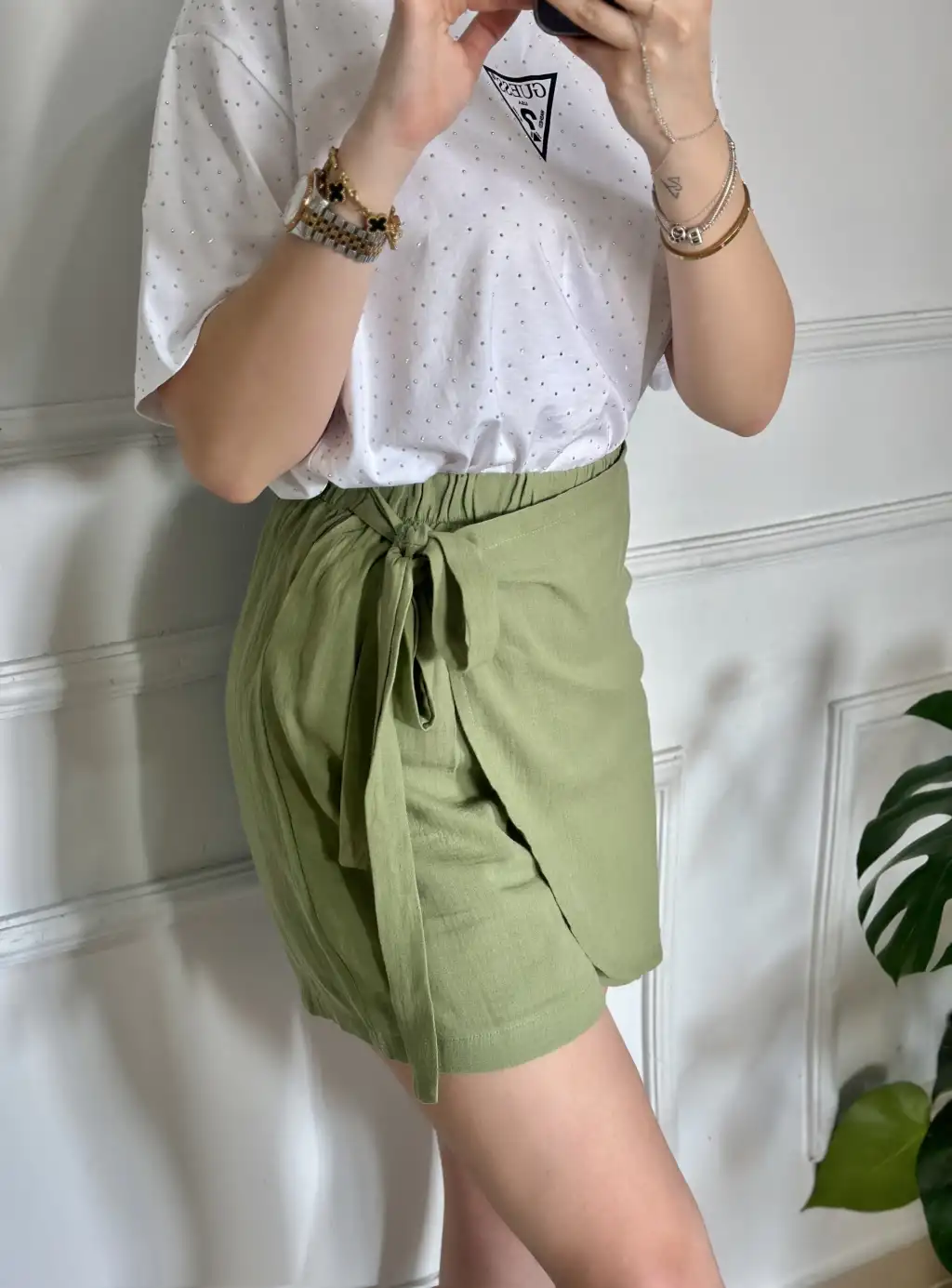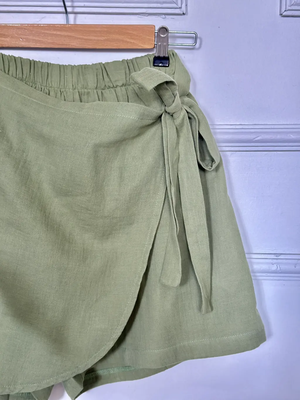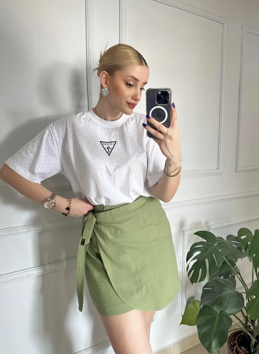 Lavina Haki Müslin Bağlamalı Şort Etek