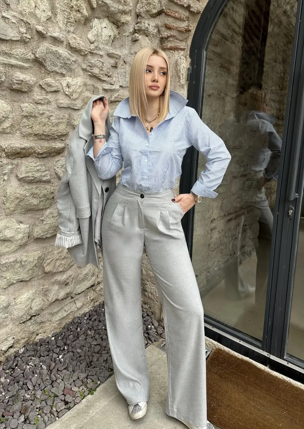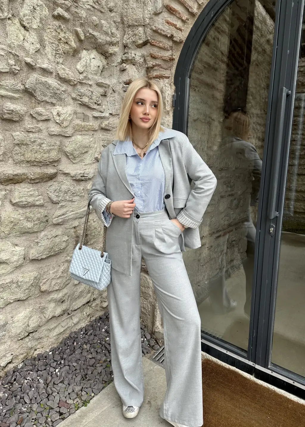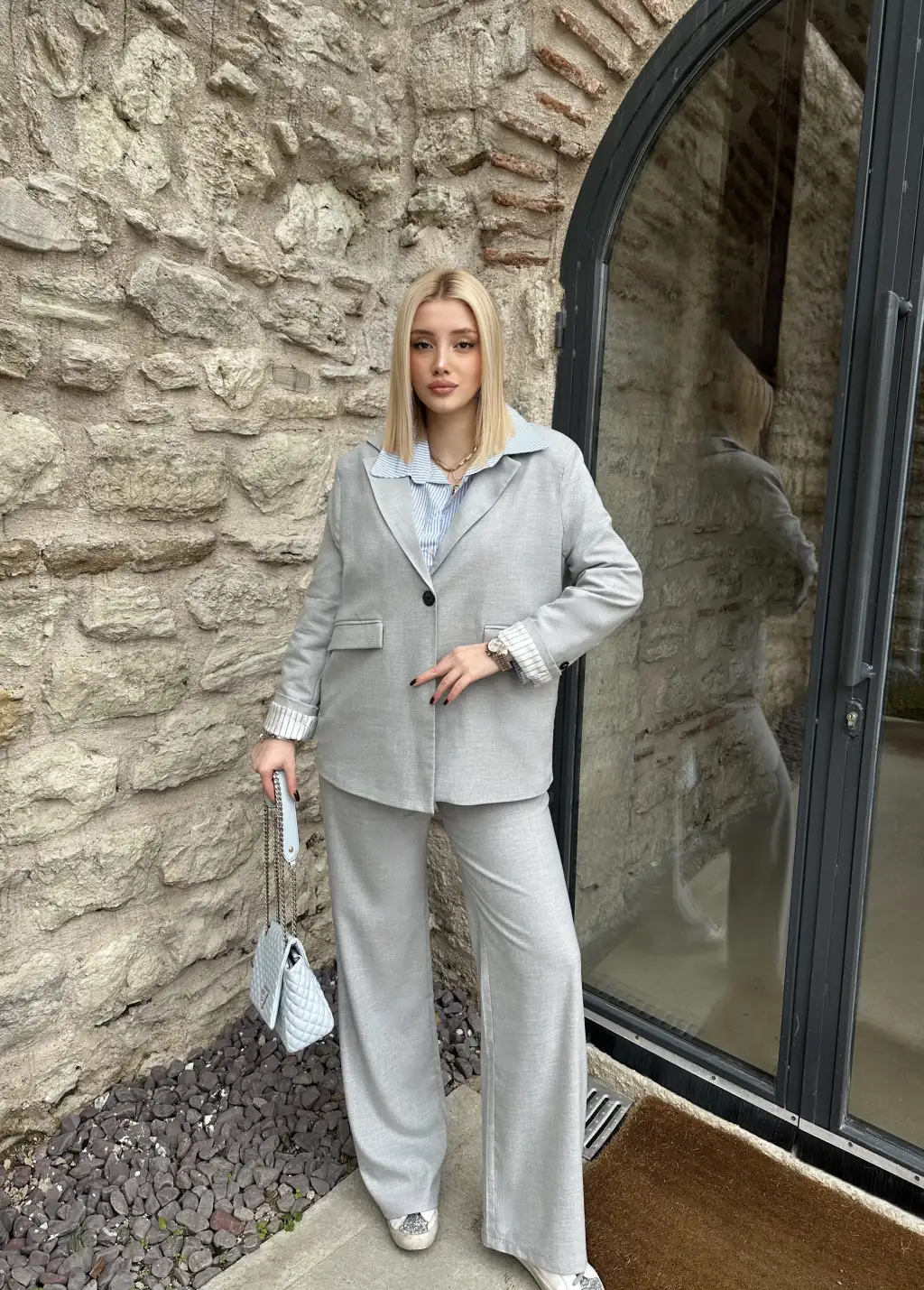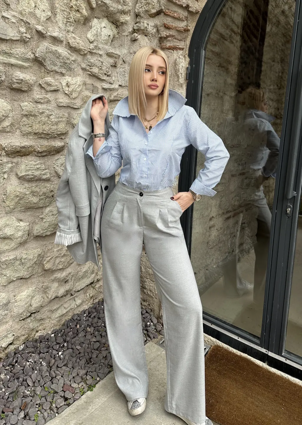 Maggie Gri Blazer Ceket/Pantolon Takım