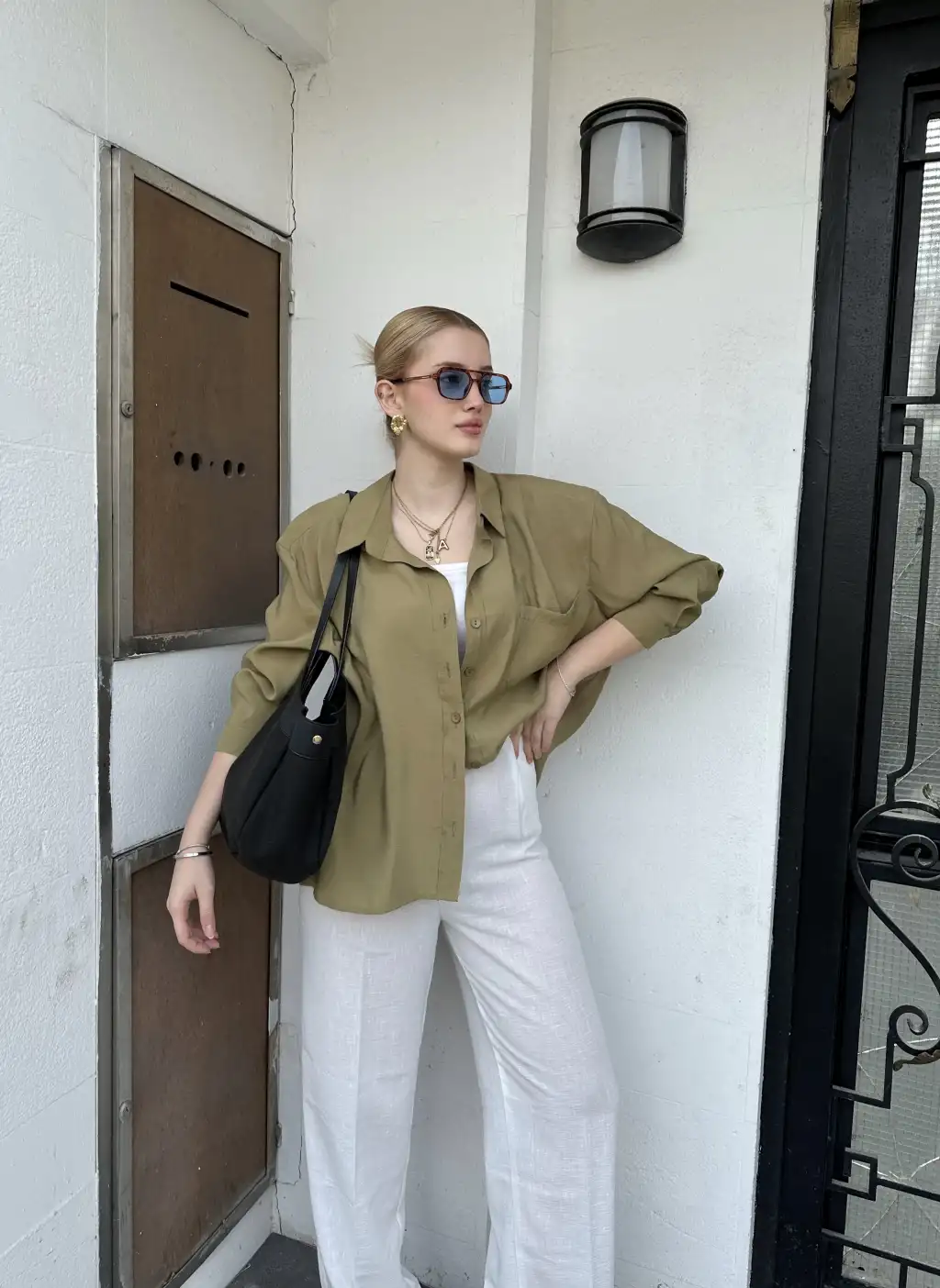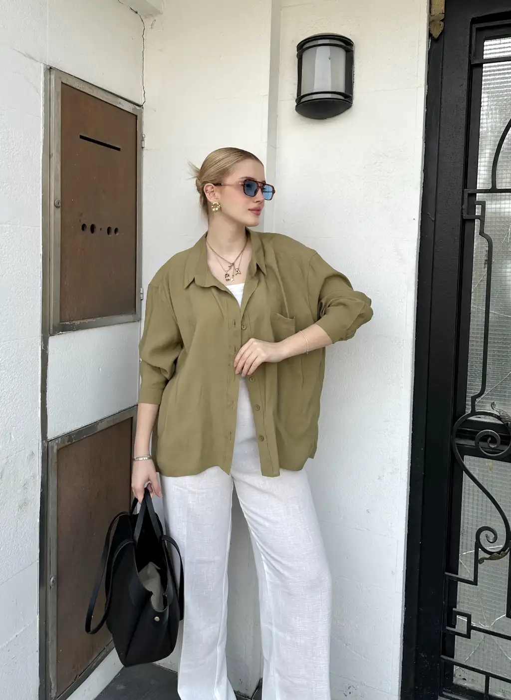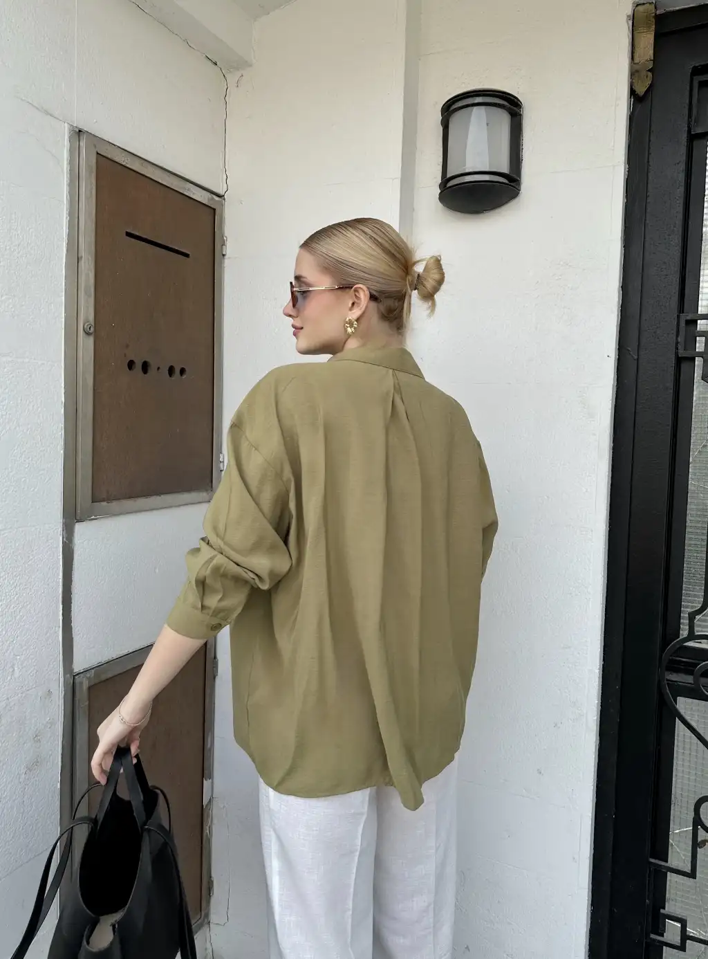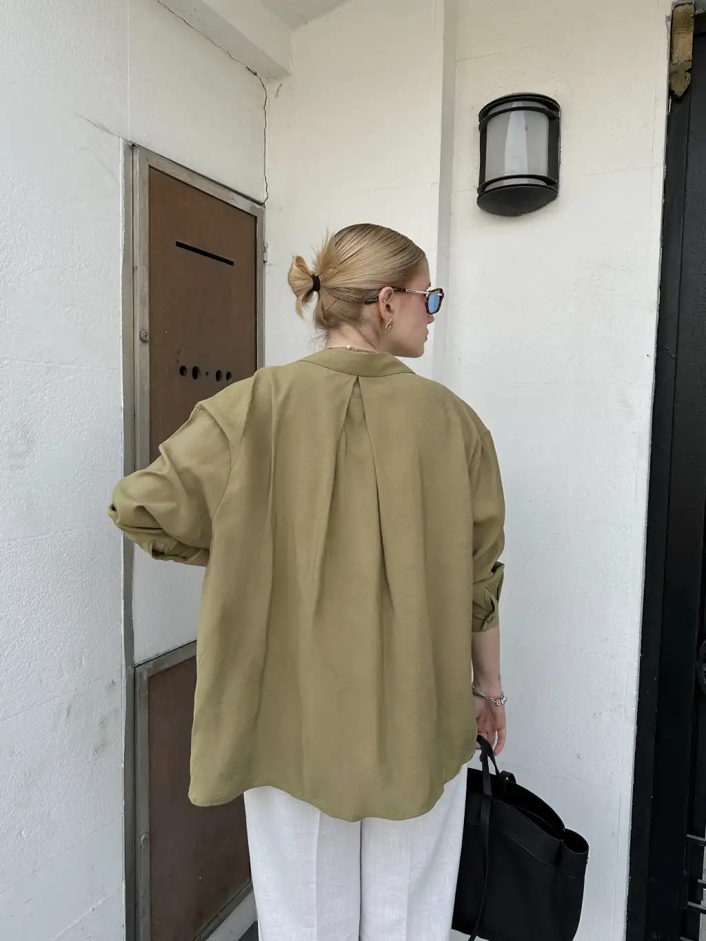 Massia Çağla Yeşil Tensel Oversize Gömlek