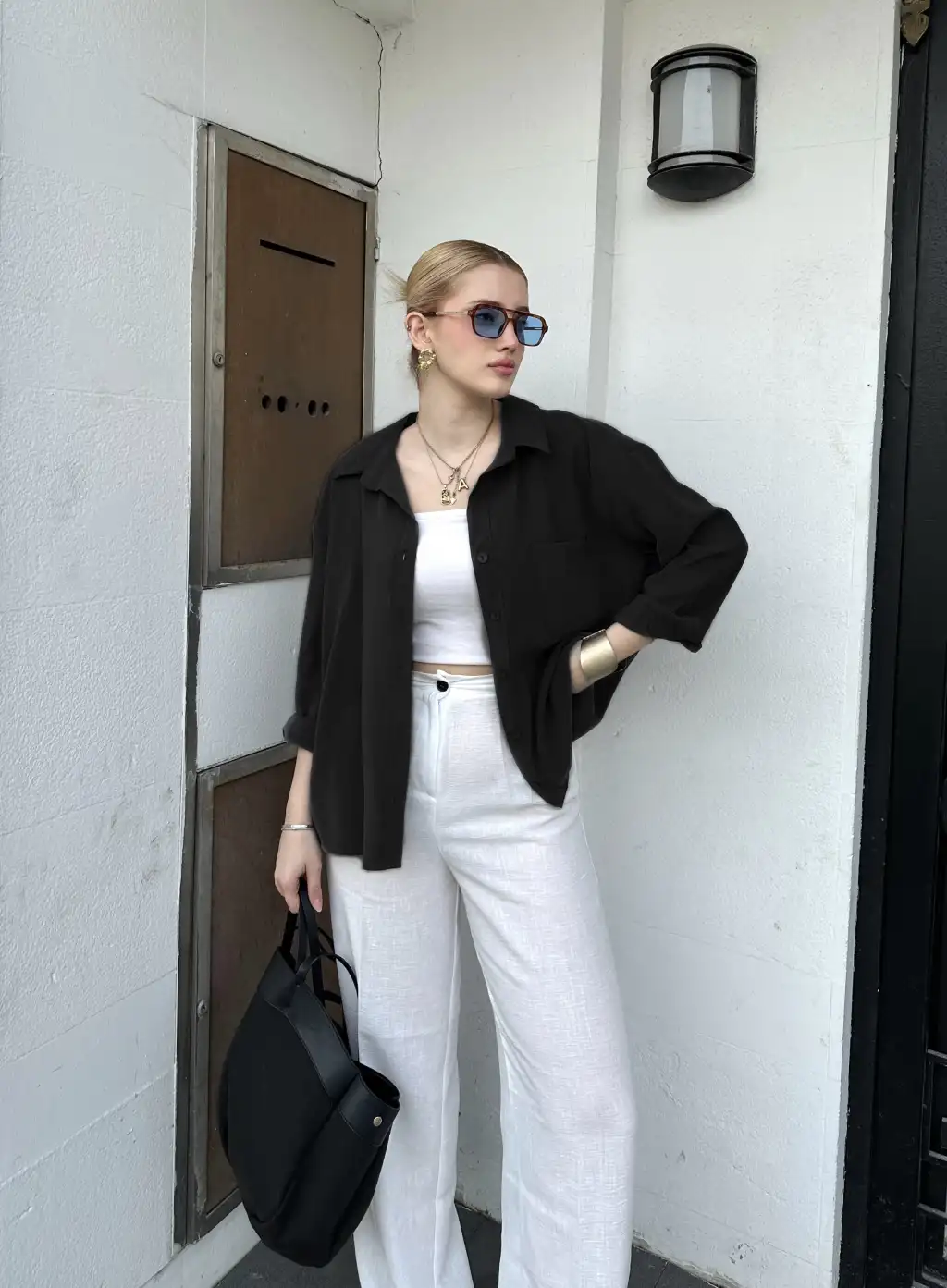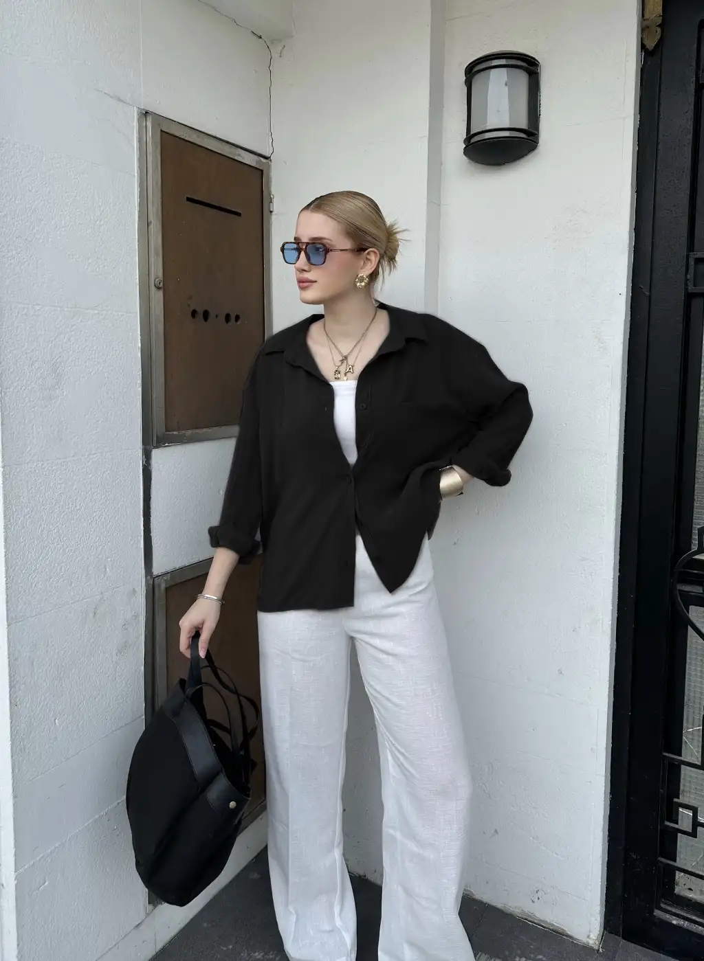 Massia Siyah Tensel Oversize Gömlek