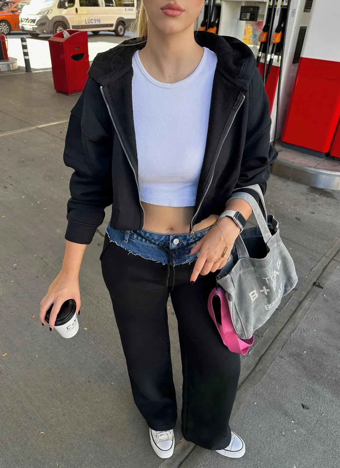 MOLYN ŞARDONLU KOT DETAY İKİLİ SİYAH EŞOFMAN TAKIM