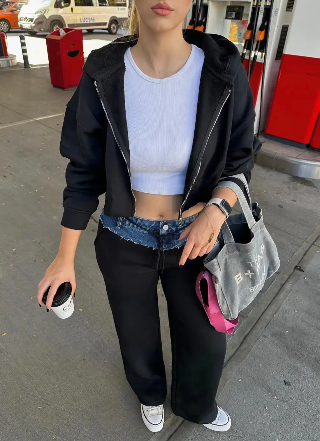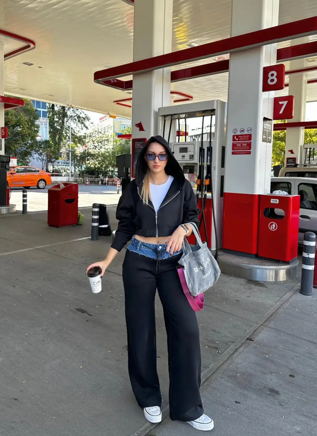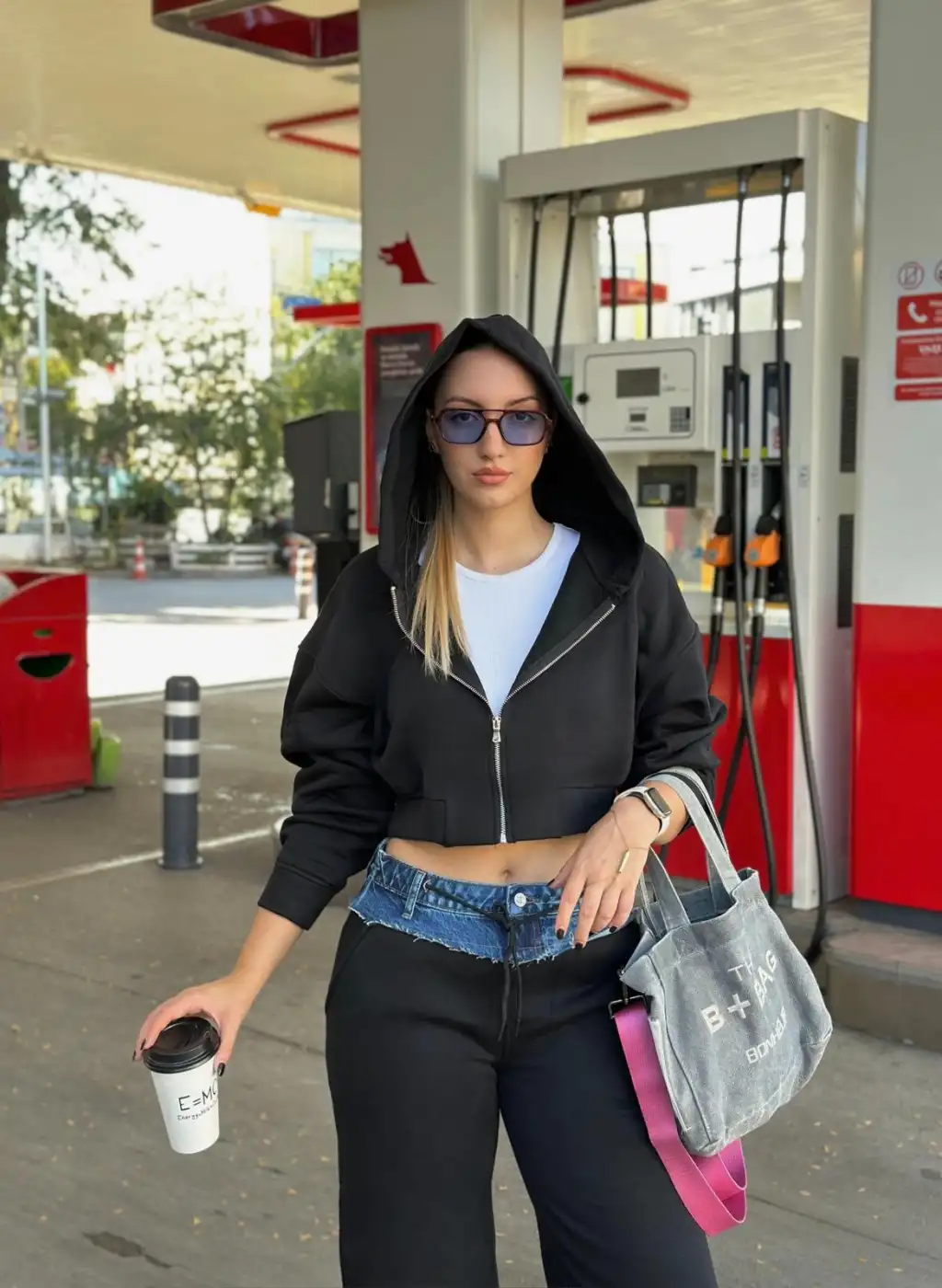 Molyn Şardonlu Kot Detay İkili Siyah Eşofman Takım