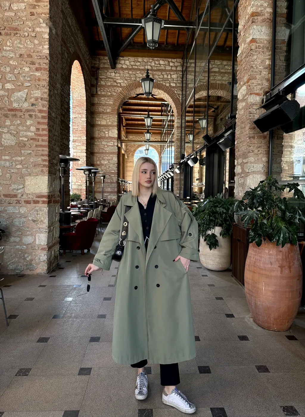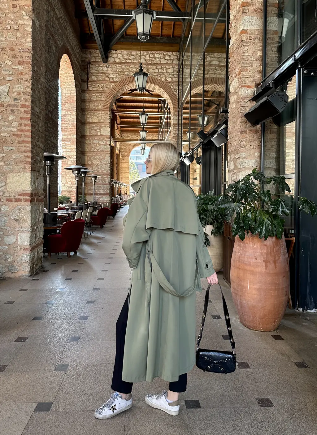 Mudo Haki Apolet Detay Premium Kalite Astarlı Trençkot