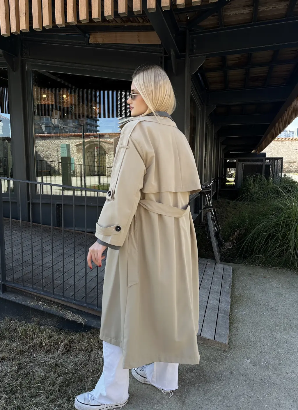 Mudo Taş Apolet Detay Premium Kalite Astarlı Trençkot