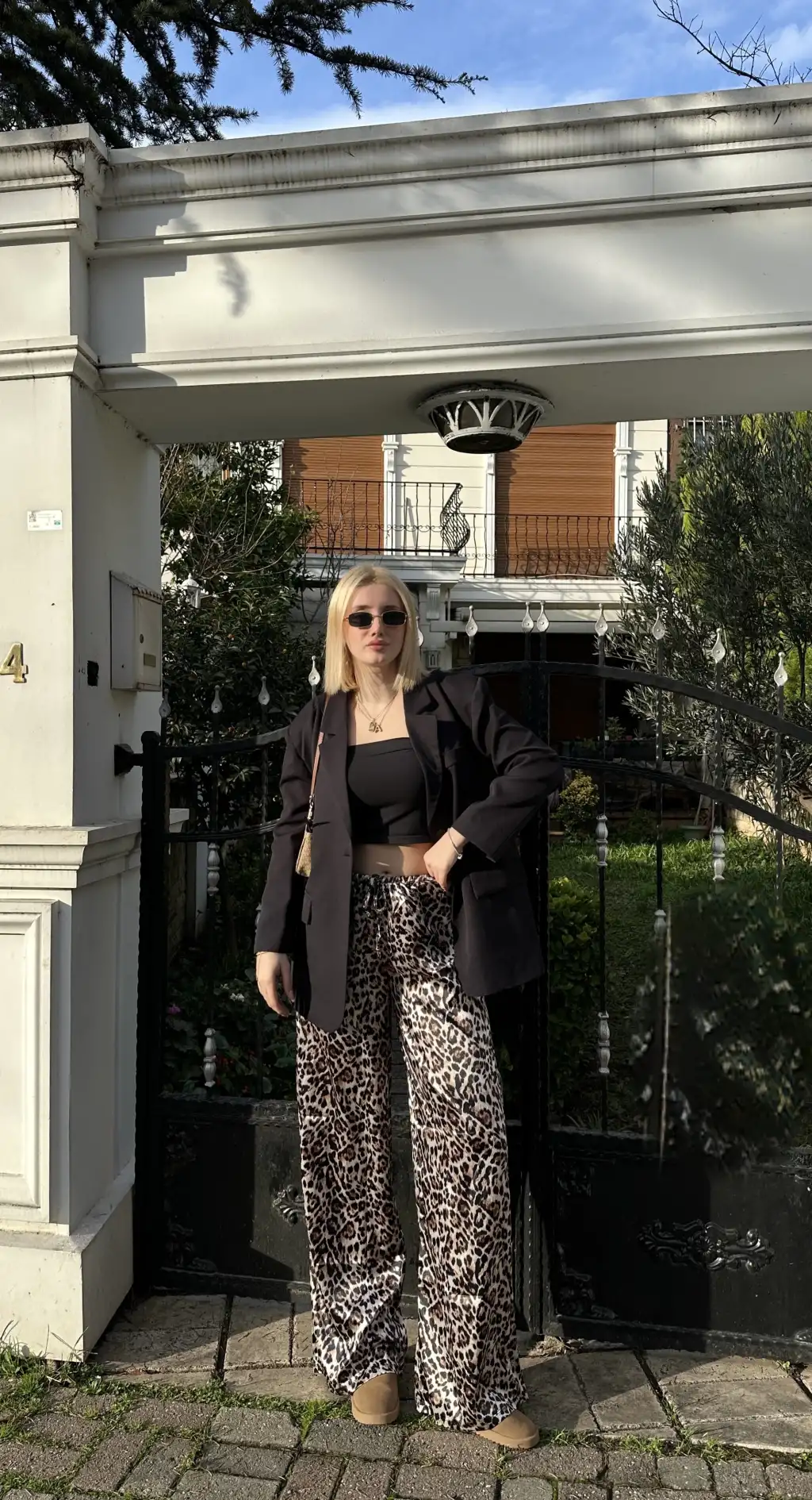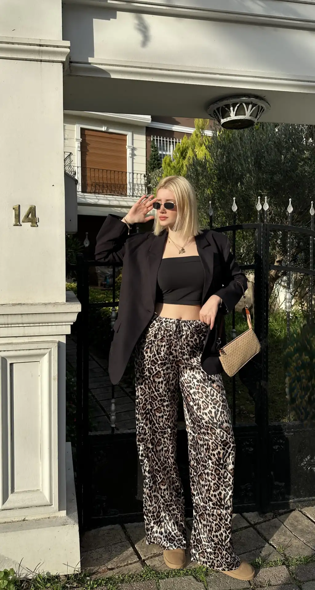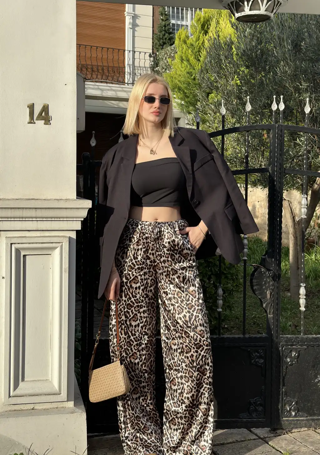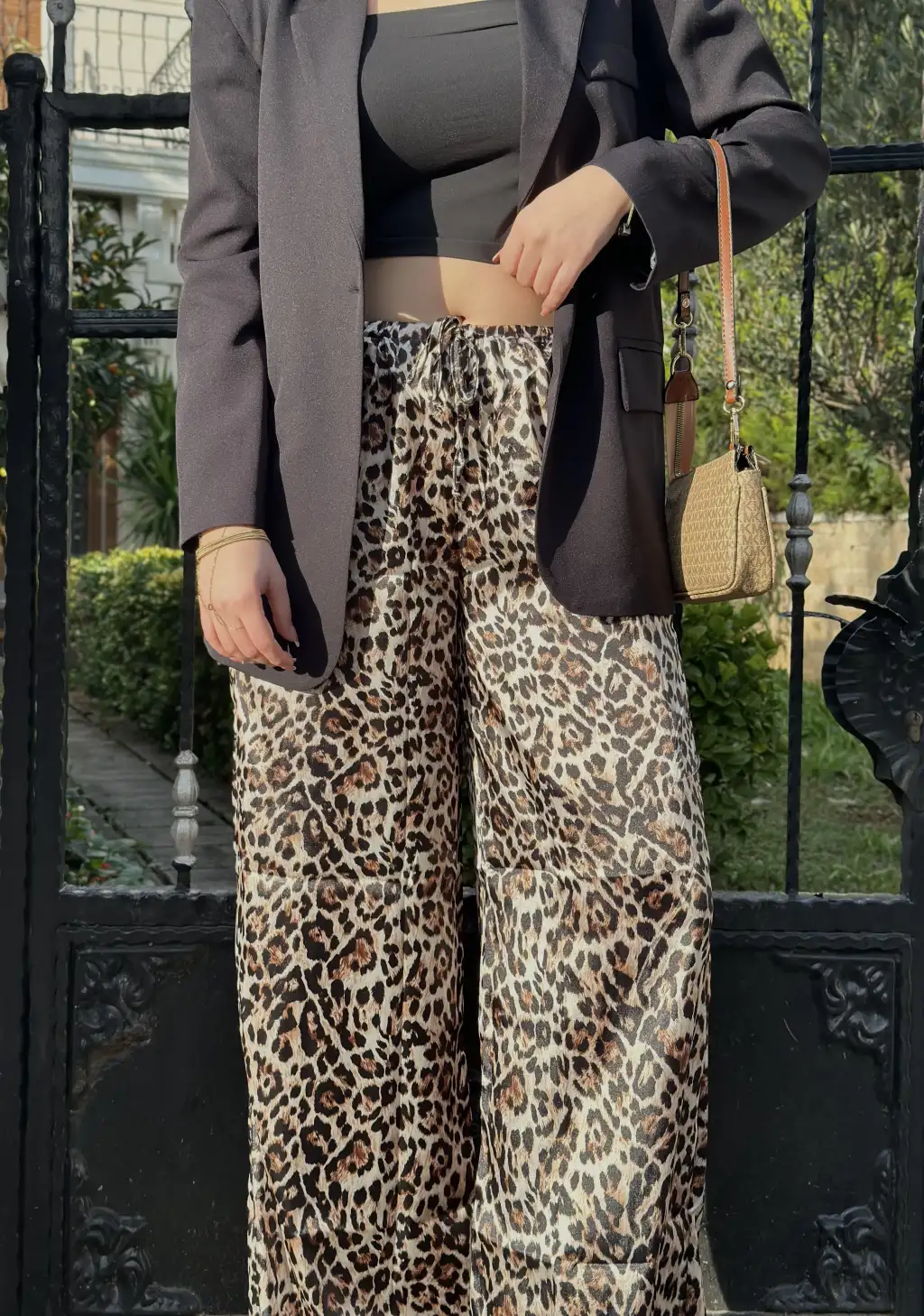 Nivy Gold Leopar Saten Pantolon
