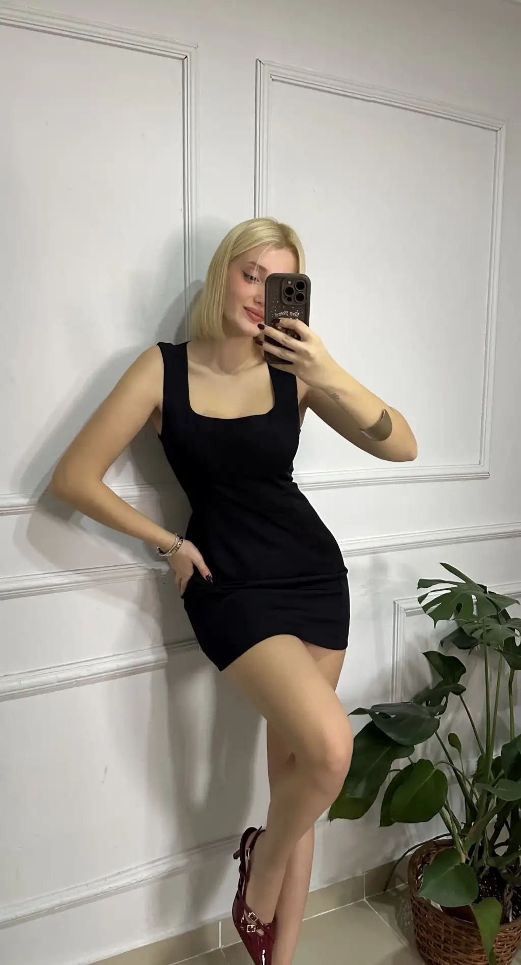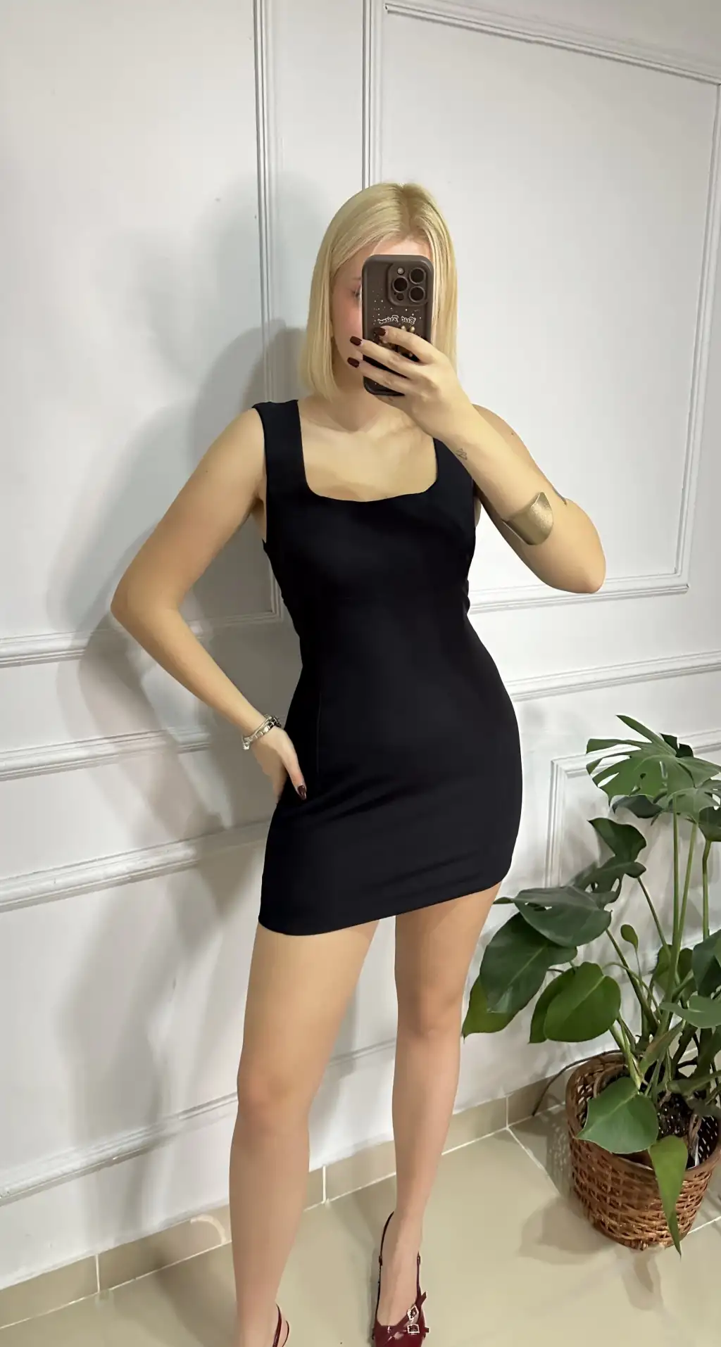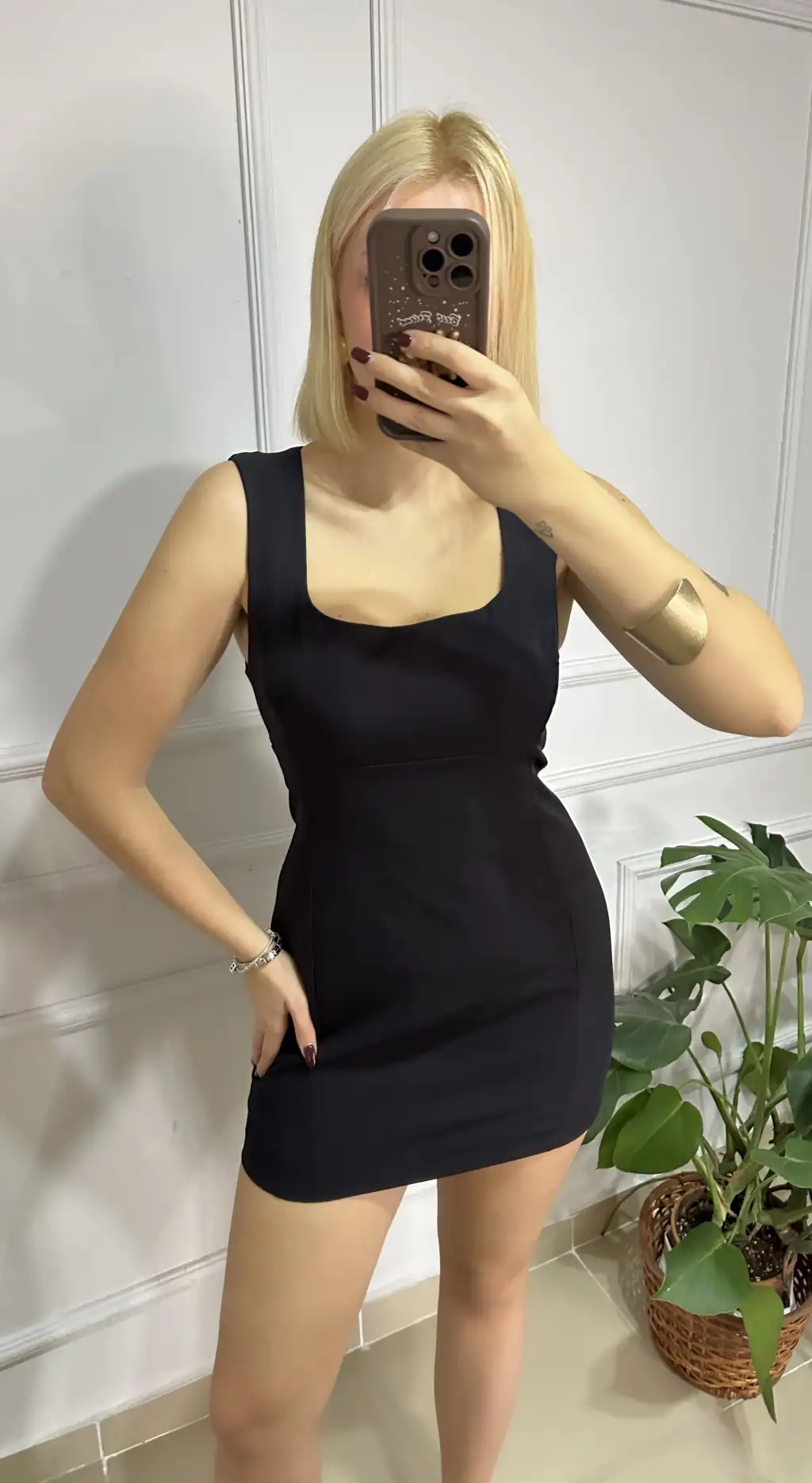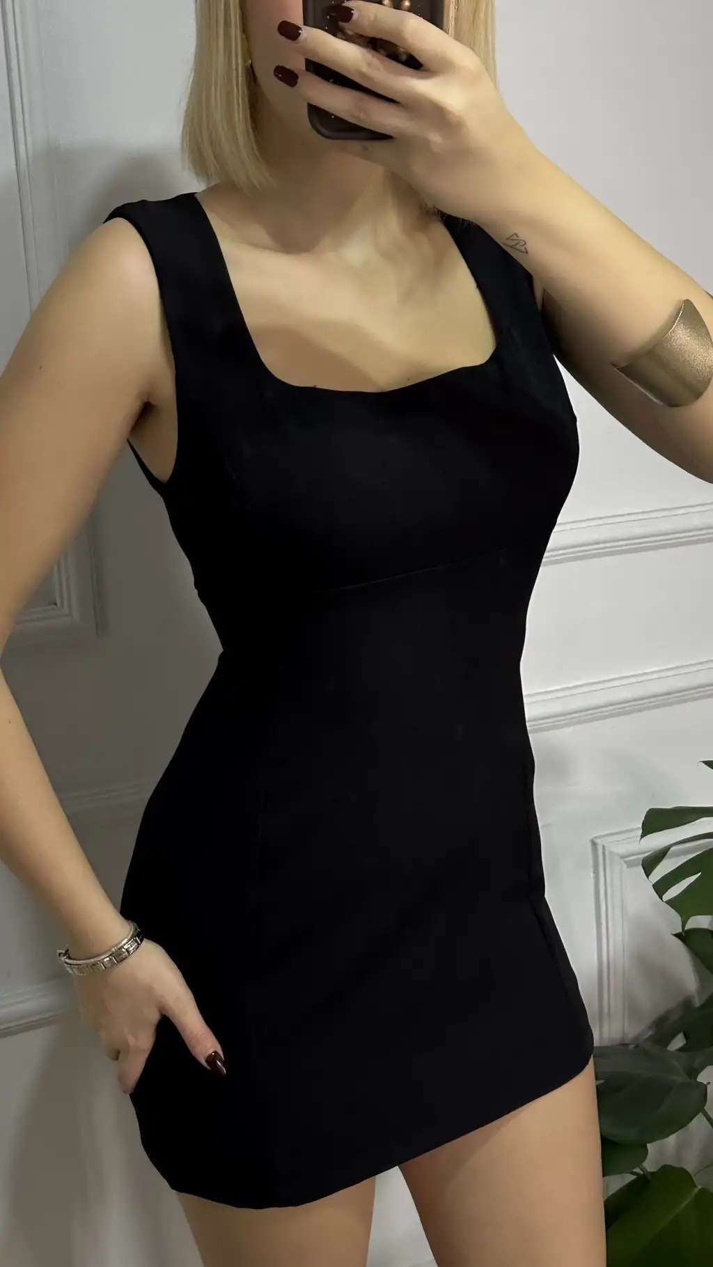 Nona Siyah Kare Yaka Çan Mini Elbise