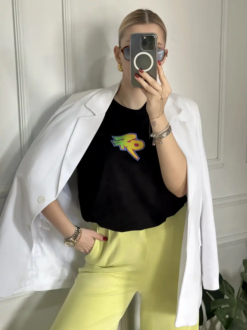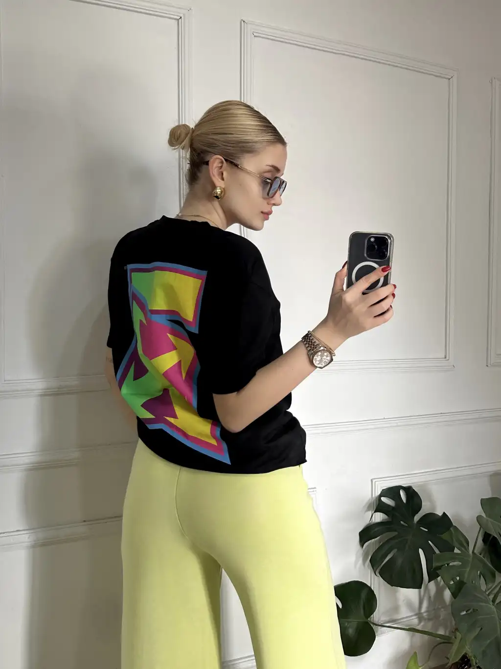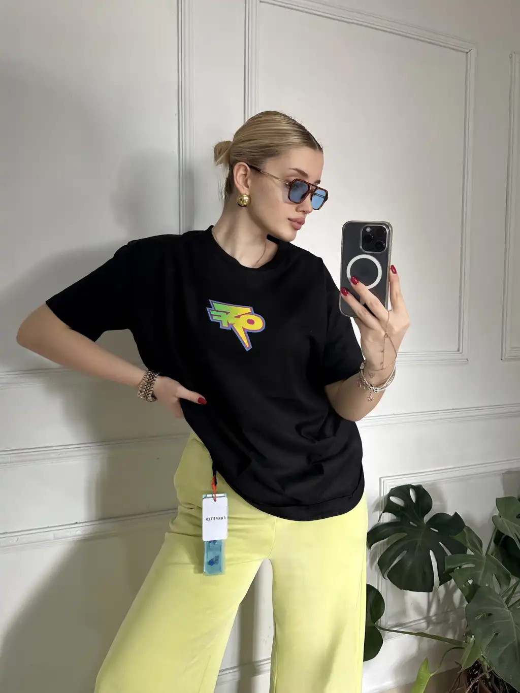 Off Baskılı Bisiklet Yaka %100 Pamuk Orijinal Marka Oversize Tshirt
