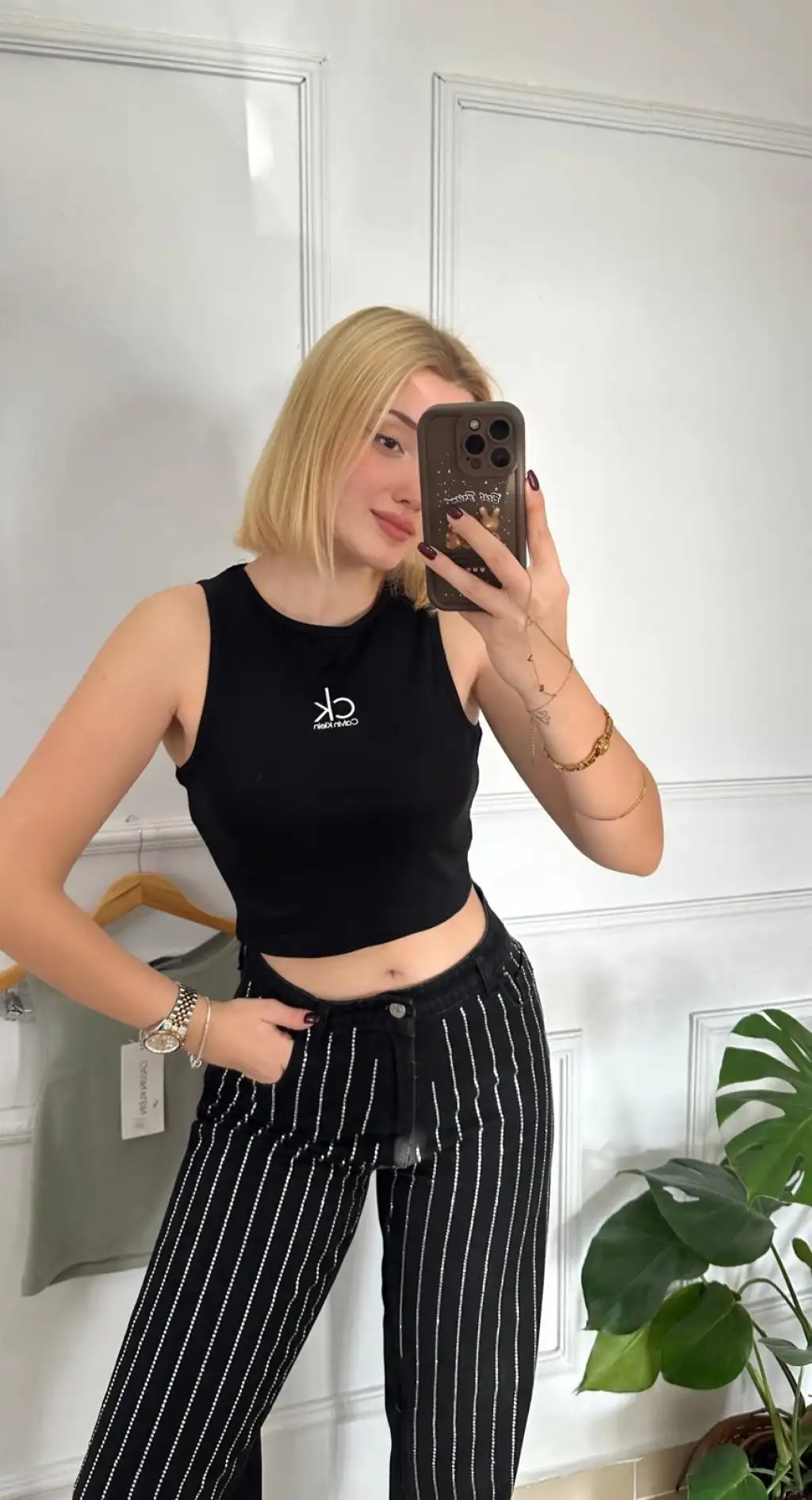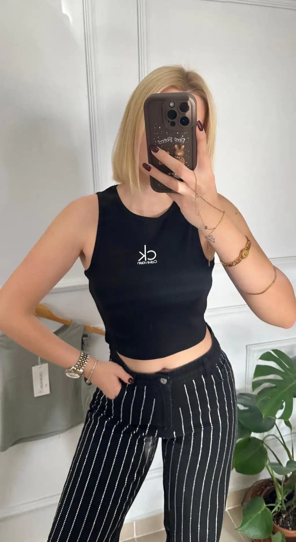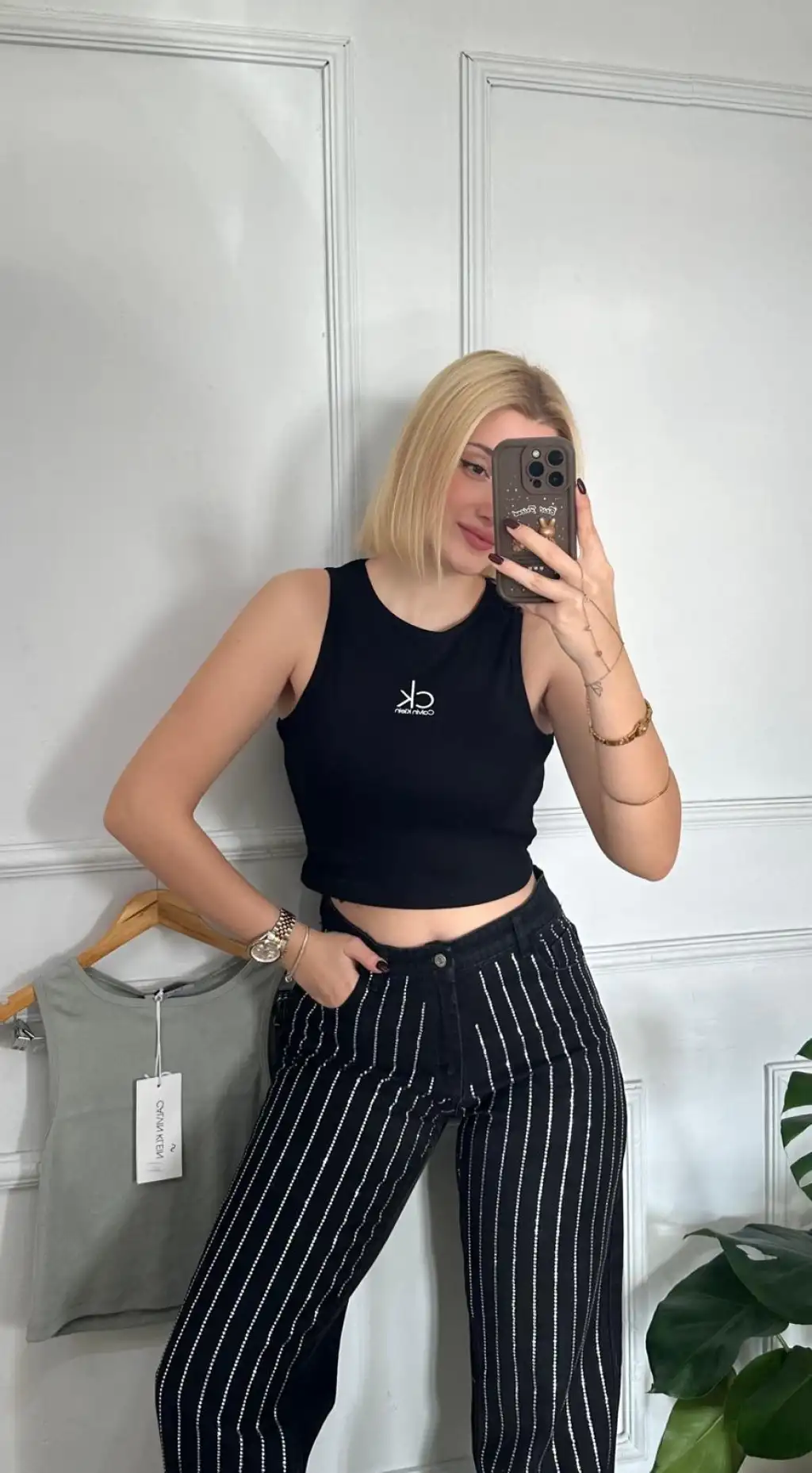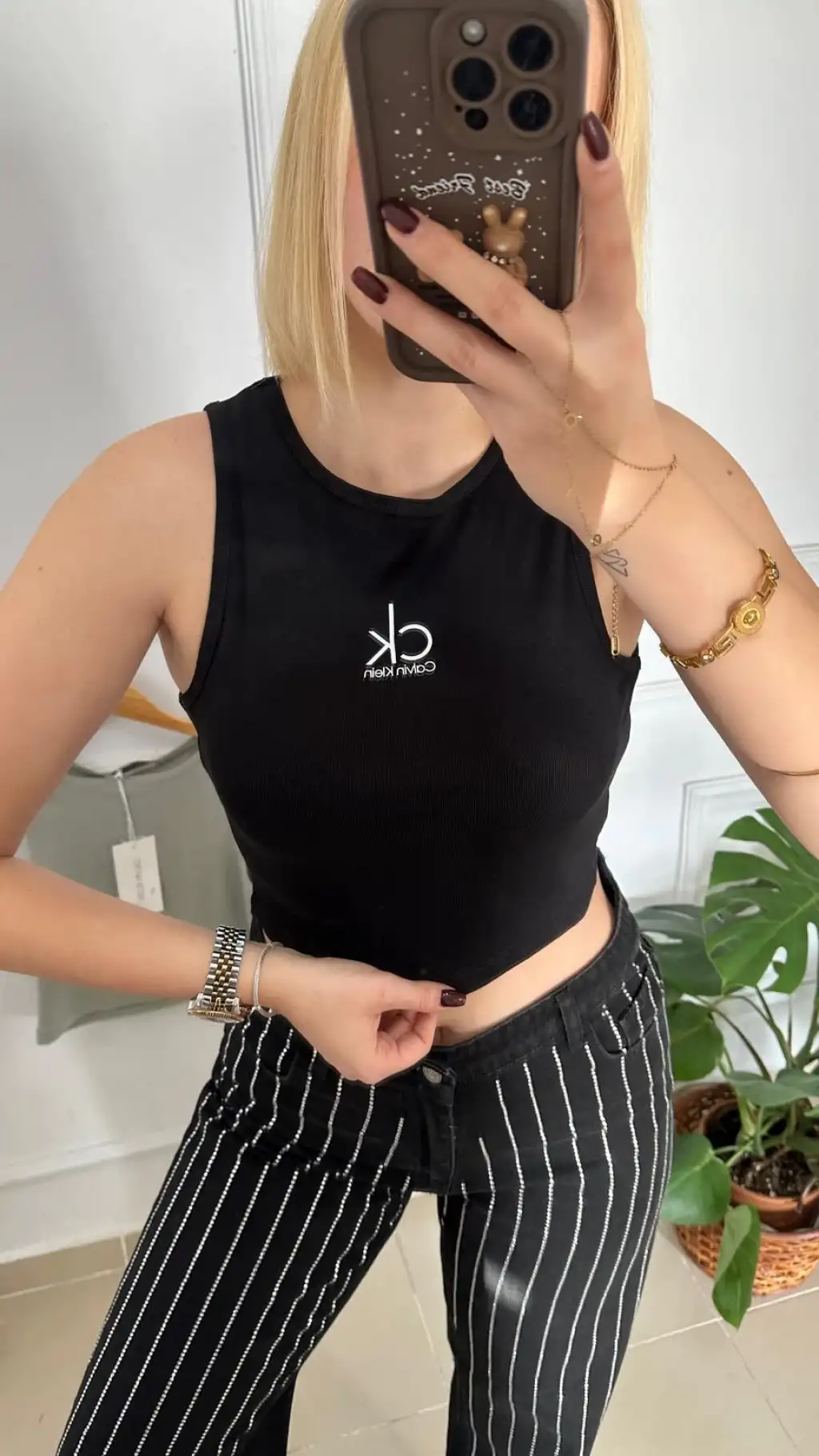 Orijinal Marka Etiketli %100 Pamuk Halter Yaka Crop