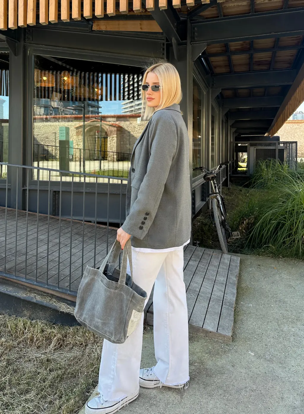 Parte Baskılı Önden Düğmeli Oversize Blazer Ceket