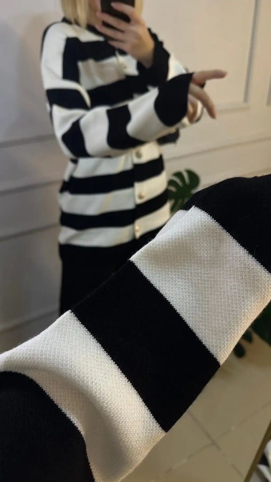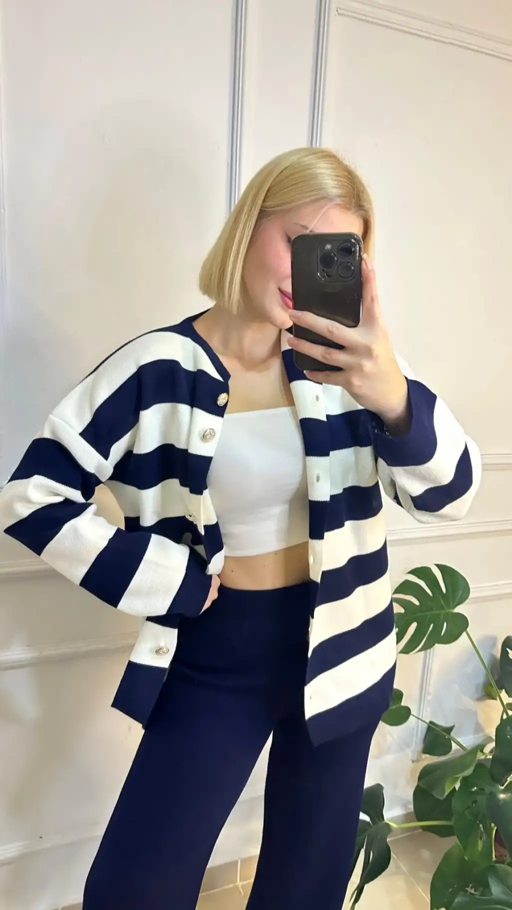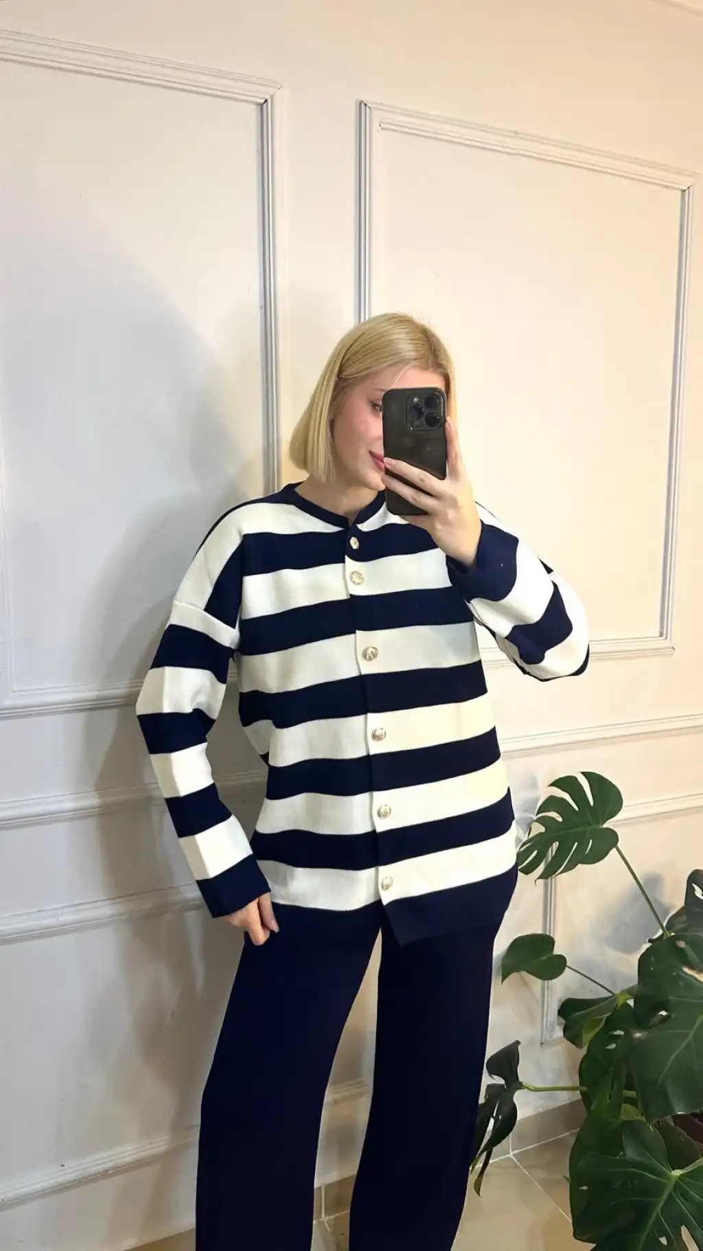 Perida Lacivert Gold Düğmeli Çizgili Hırka/Pantolon İkili Takım