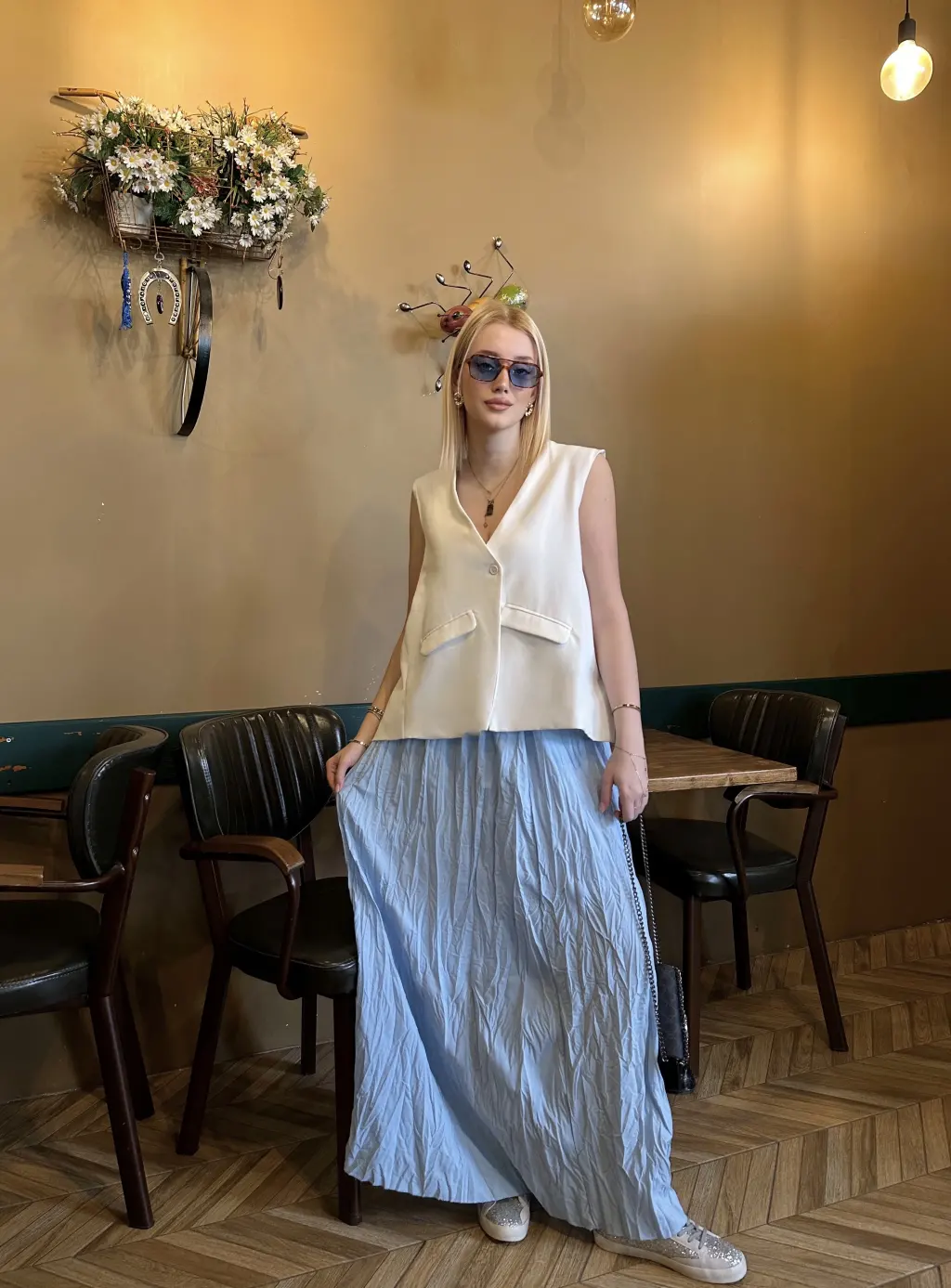 Polene Bebe Mavi Crush Maxi Boy Uzun Etek