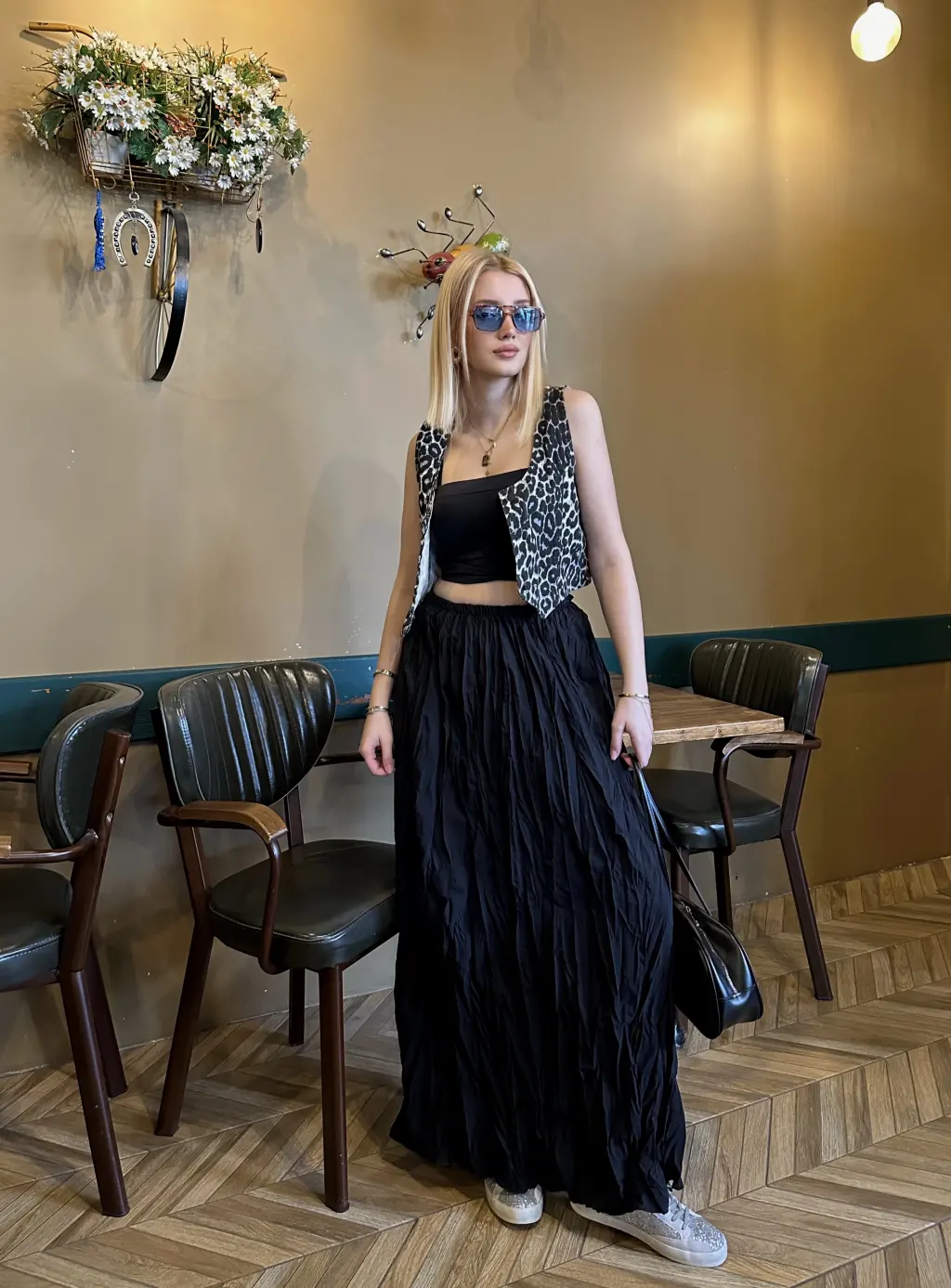 Polene Siyah Crush Maxi Boy Uzun Etek
