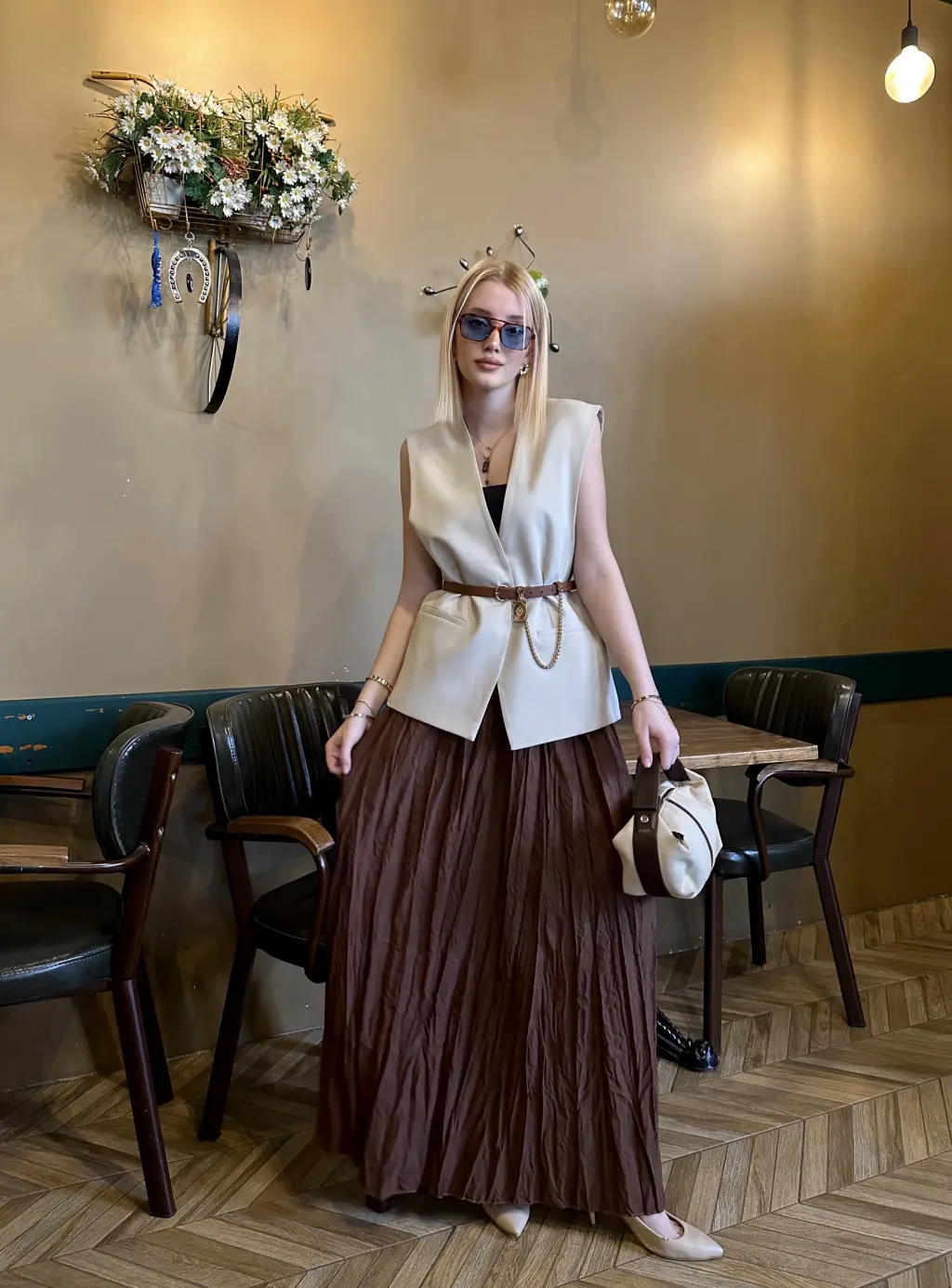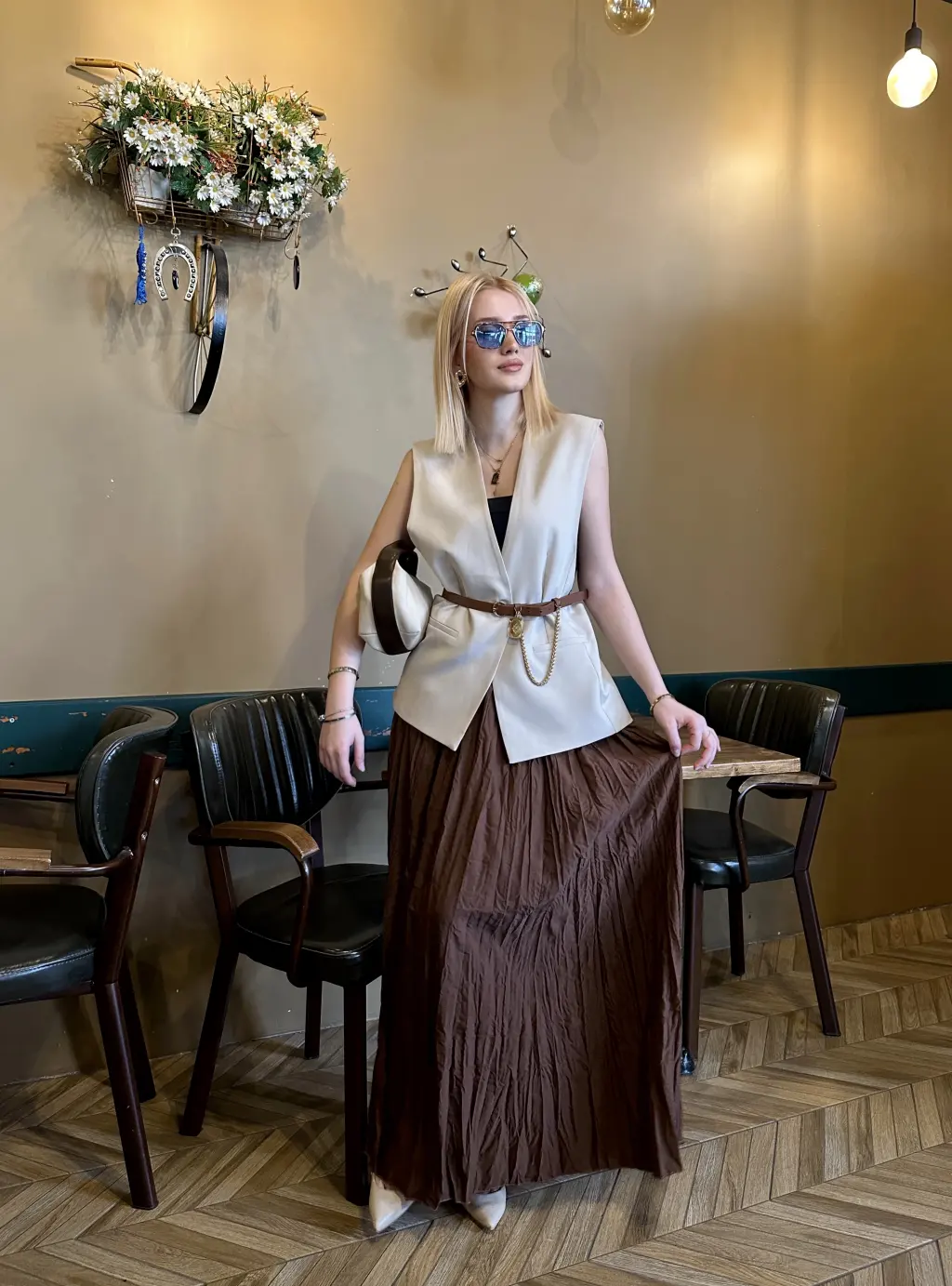 POLENE ACIKAHVE CRUSH MAXİ BOY UZUN ETEK