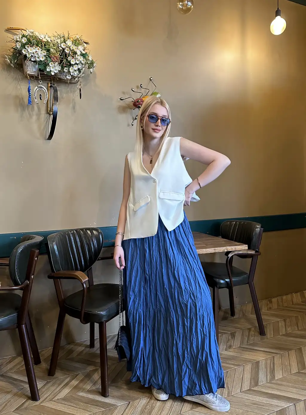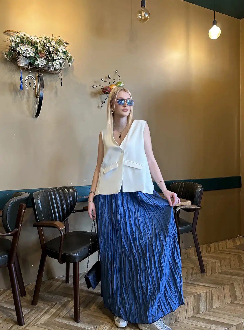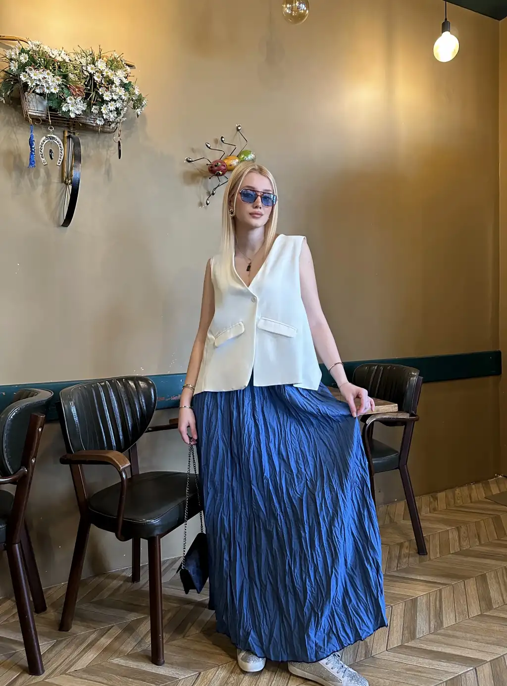 Polene İndigo Mavi Crush Maxi Boy Uzun Etek