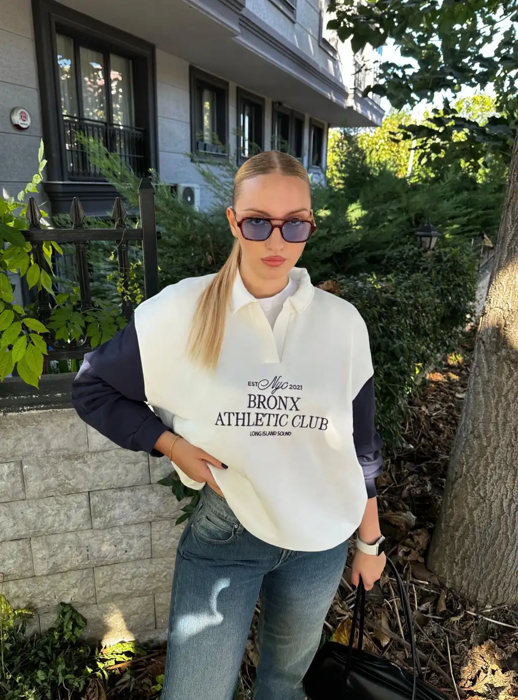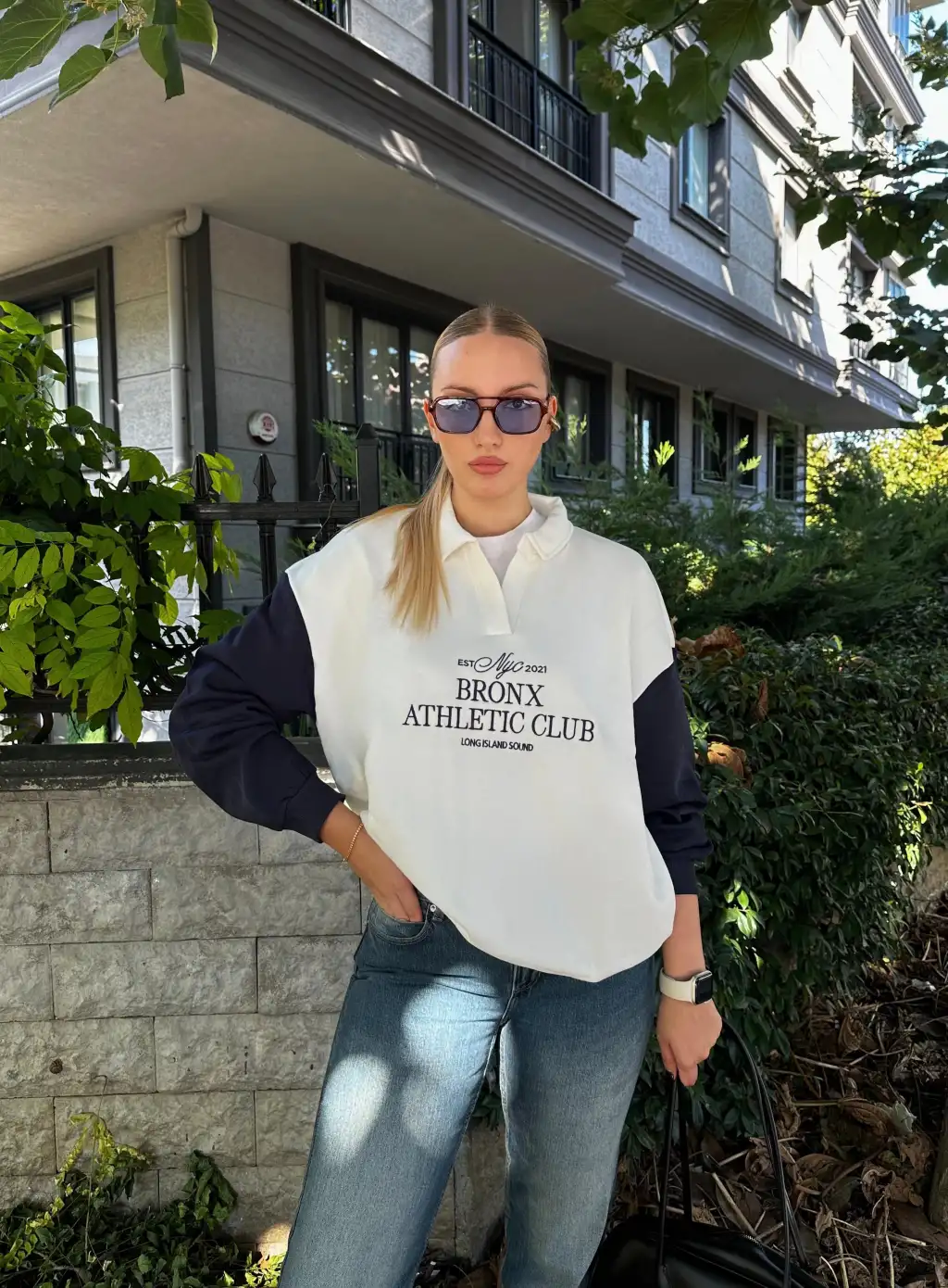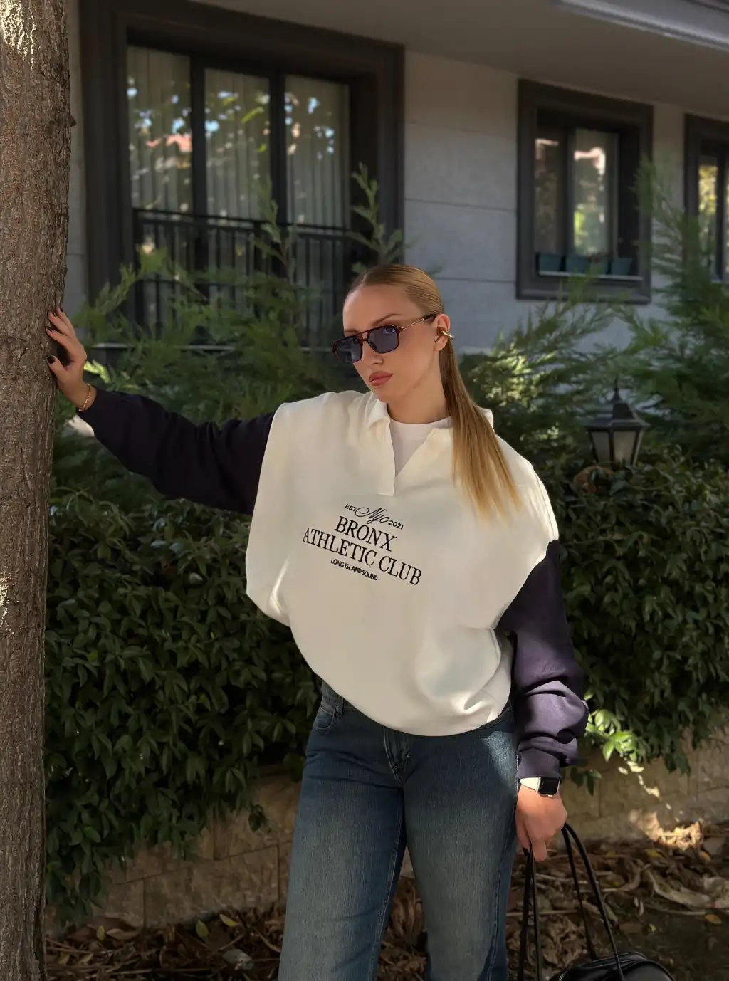 Polin Polo Yaka Nakışlı Şardonlu Sweatshirt
