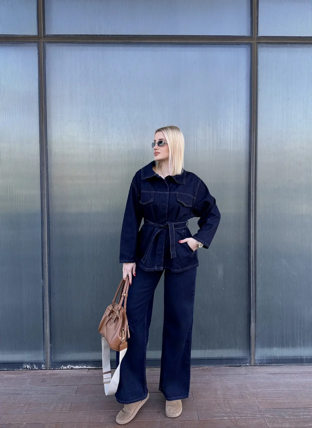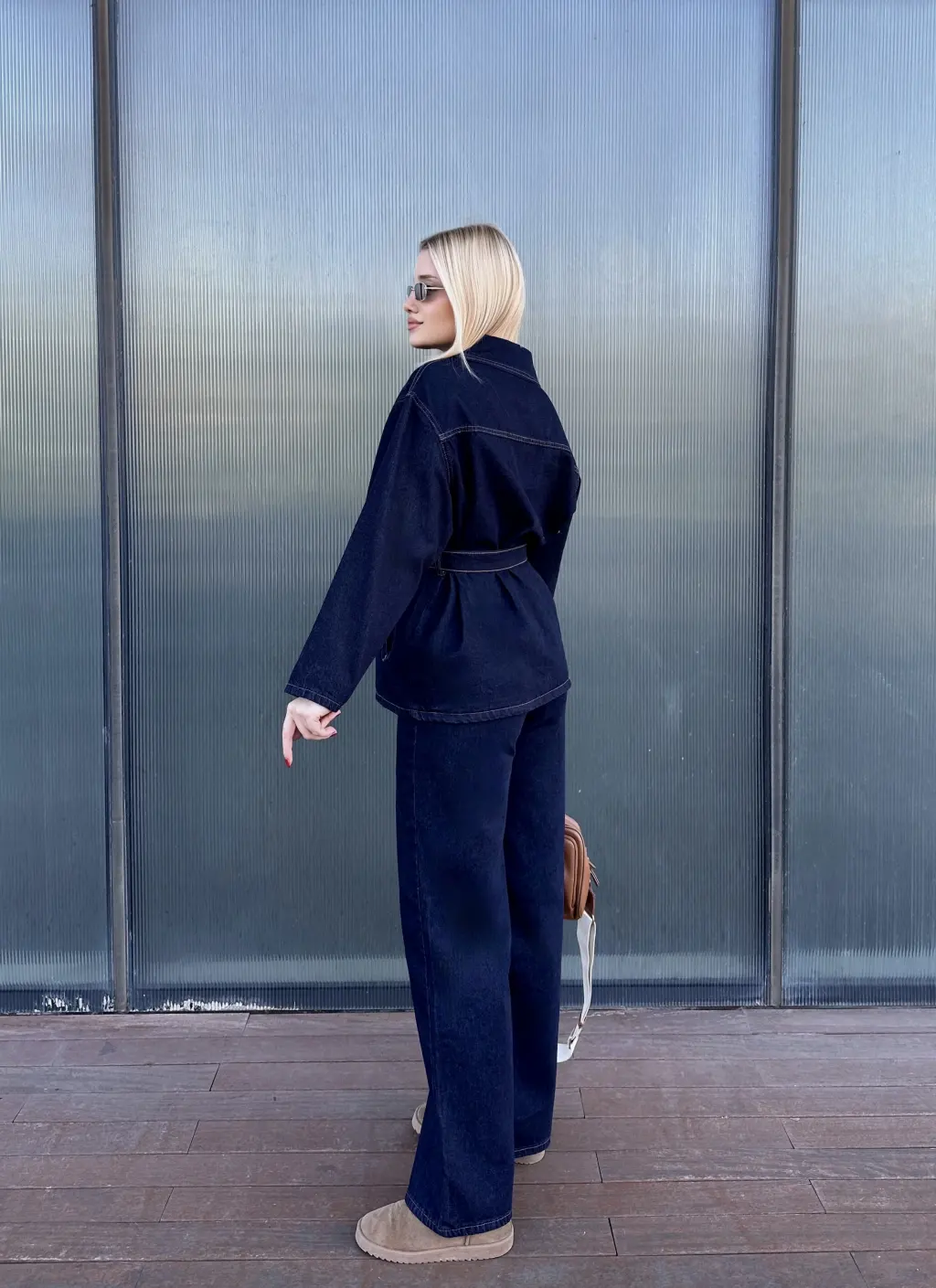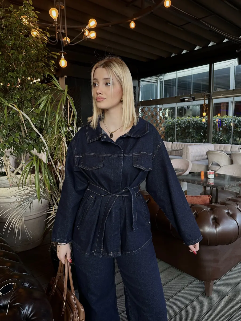Rins Kuşaklı Ceket Pantolon Denim Takım