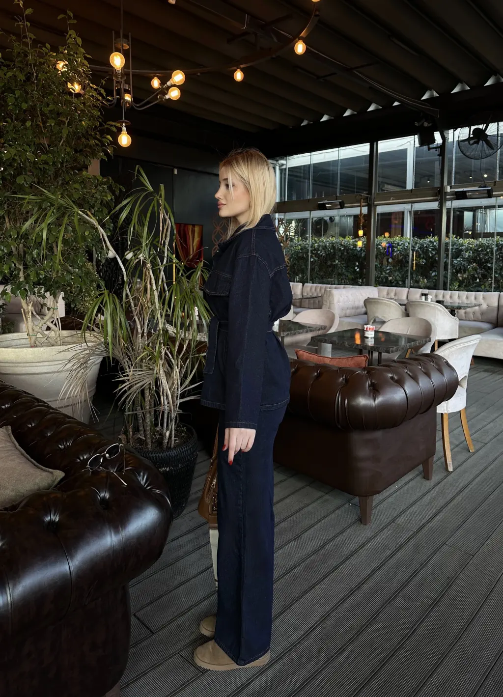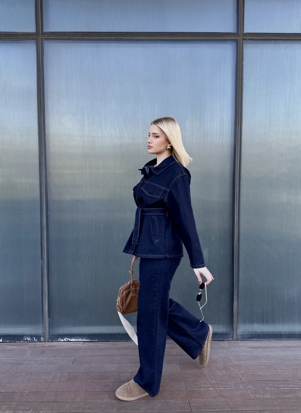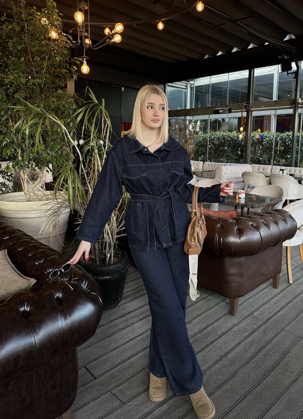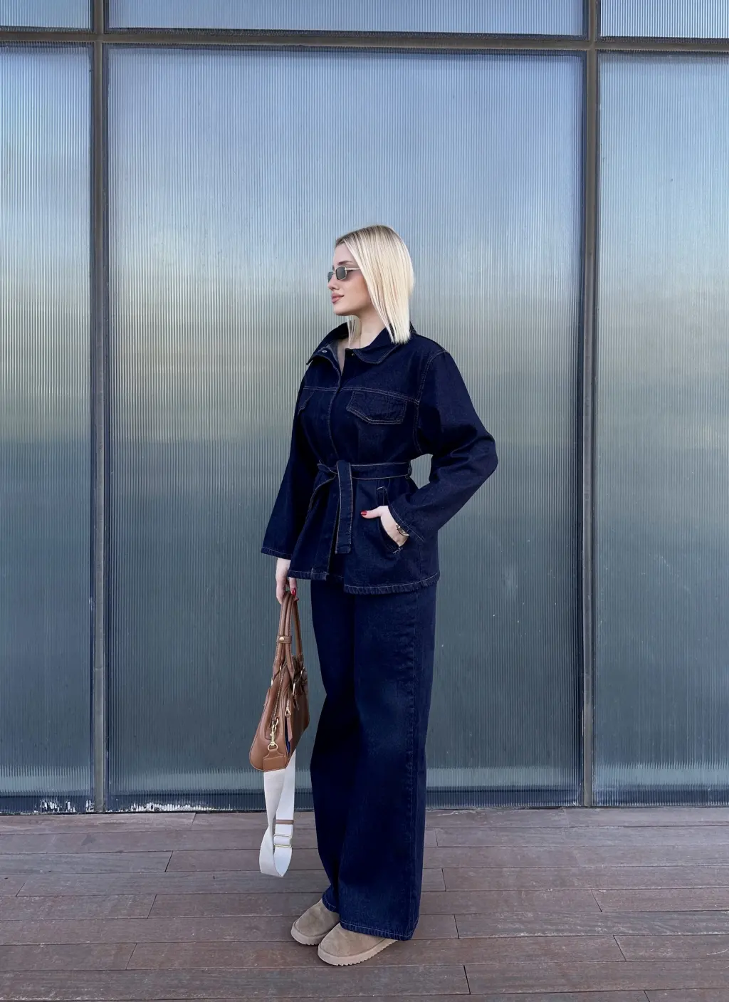 Rins Kuşaklı Ceket Pantolon Denim Takım