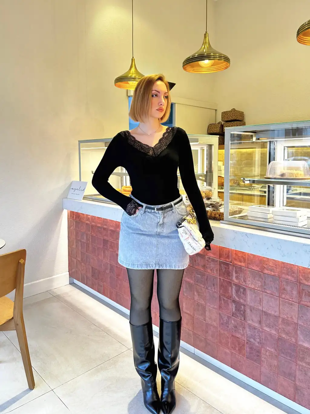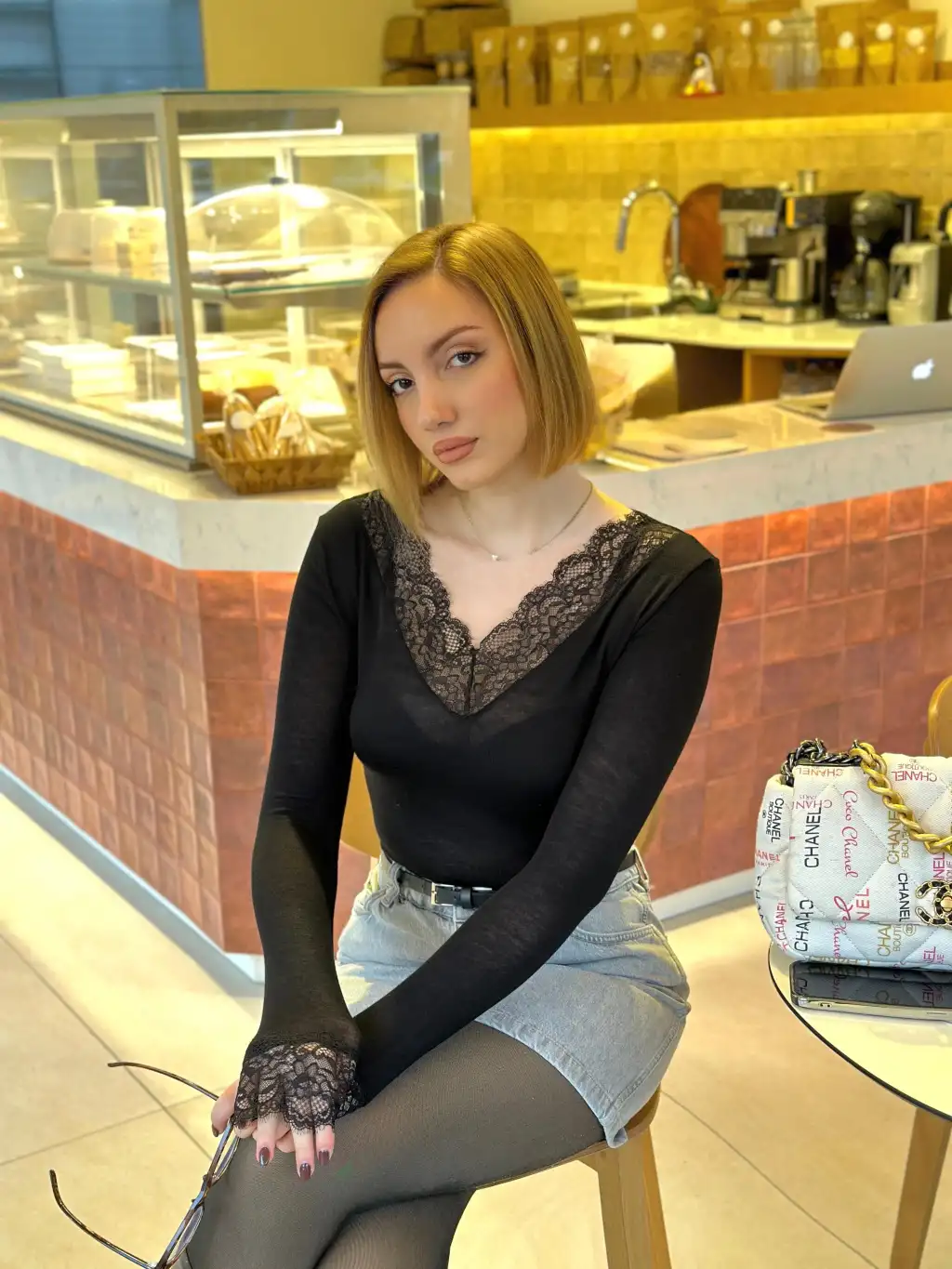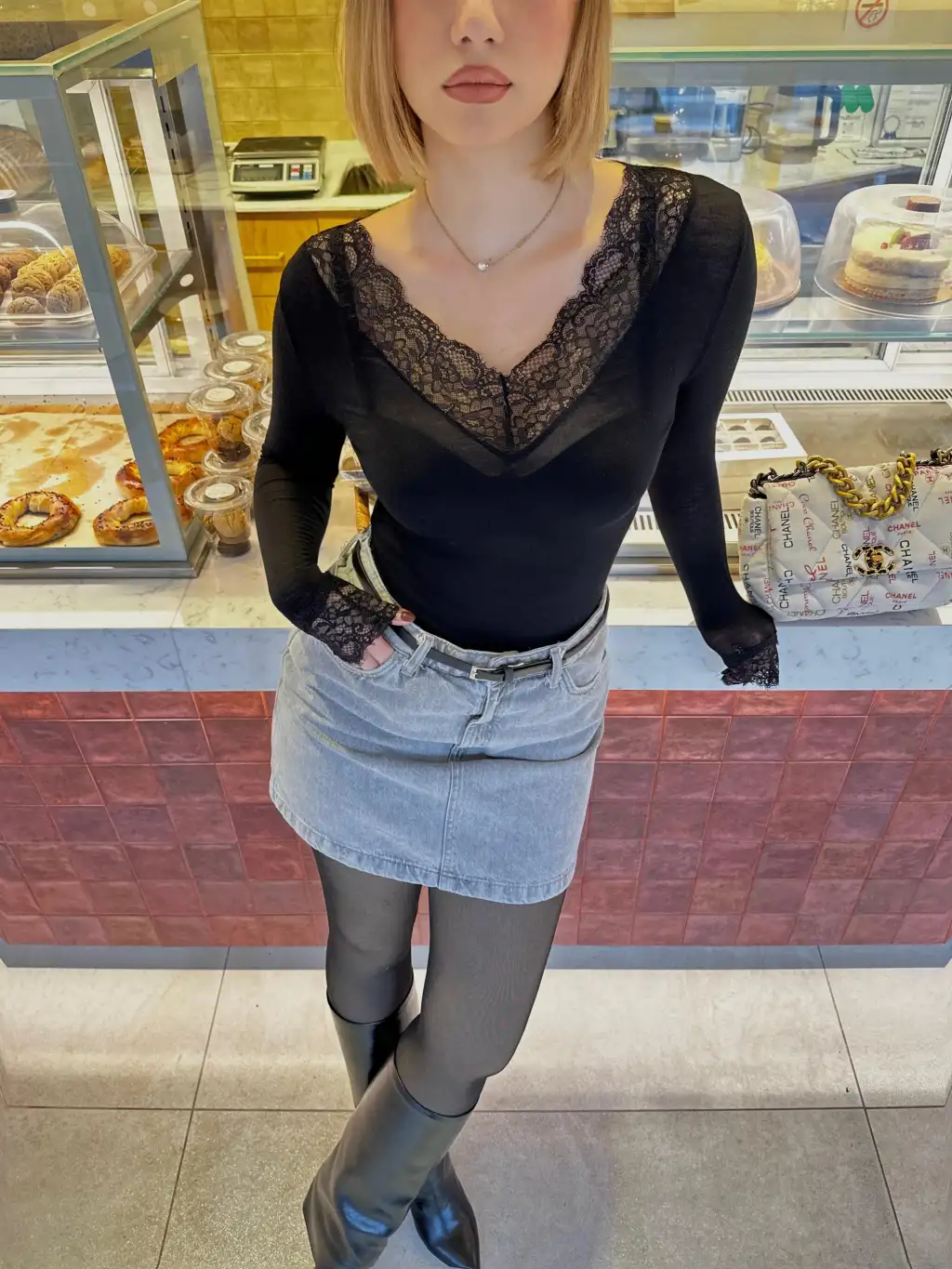 Siyah Dantel Detay Esnek Kaşmir Transparan Bluz