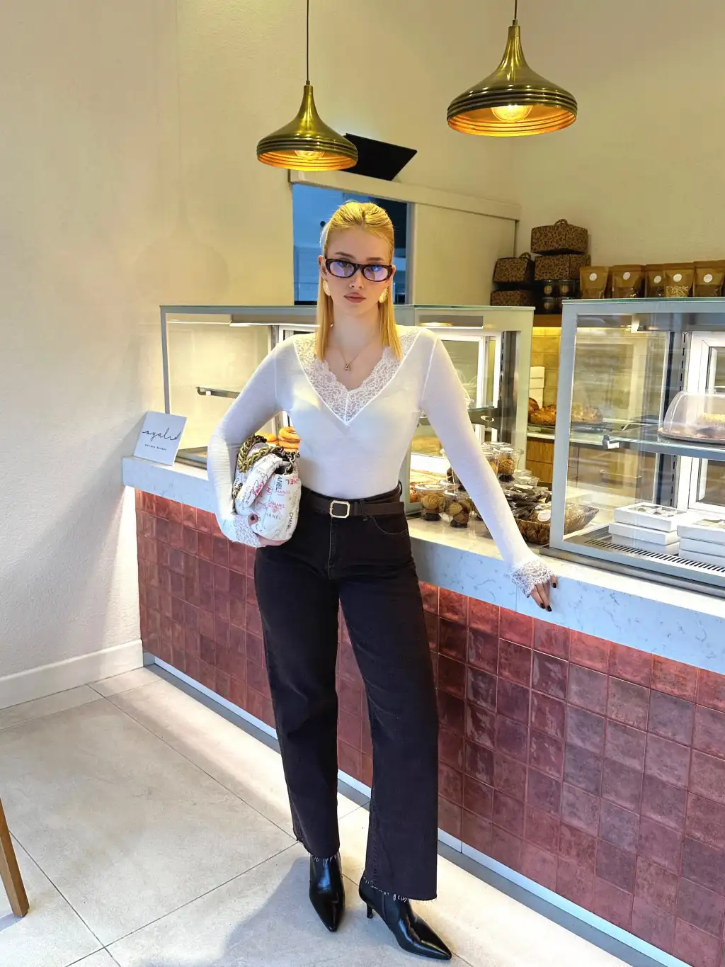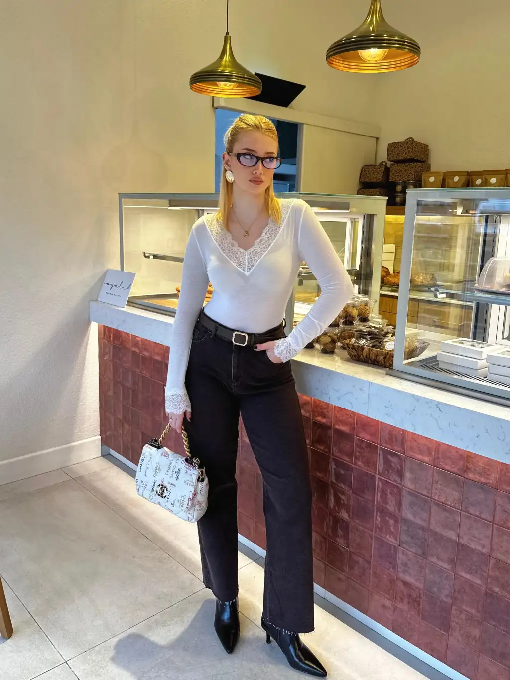 Beyaz Dantel Detay Esnek Kaşmir Transparan Bluz