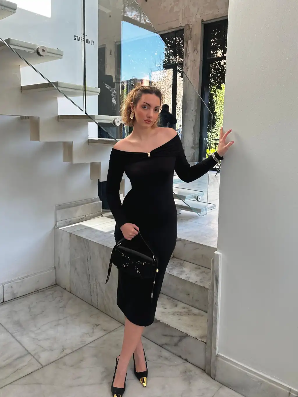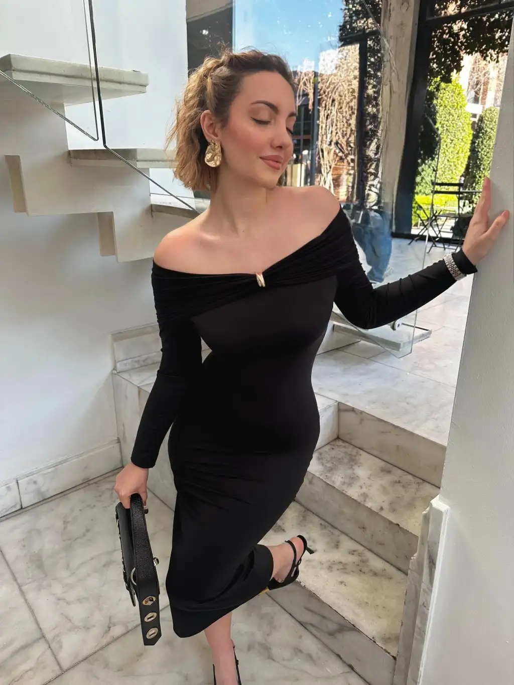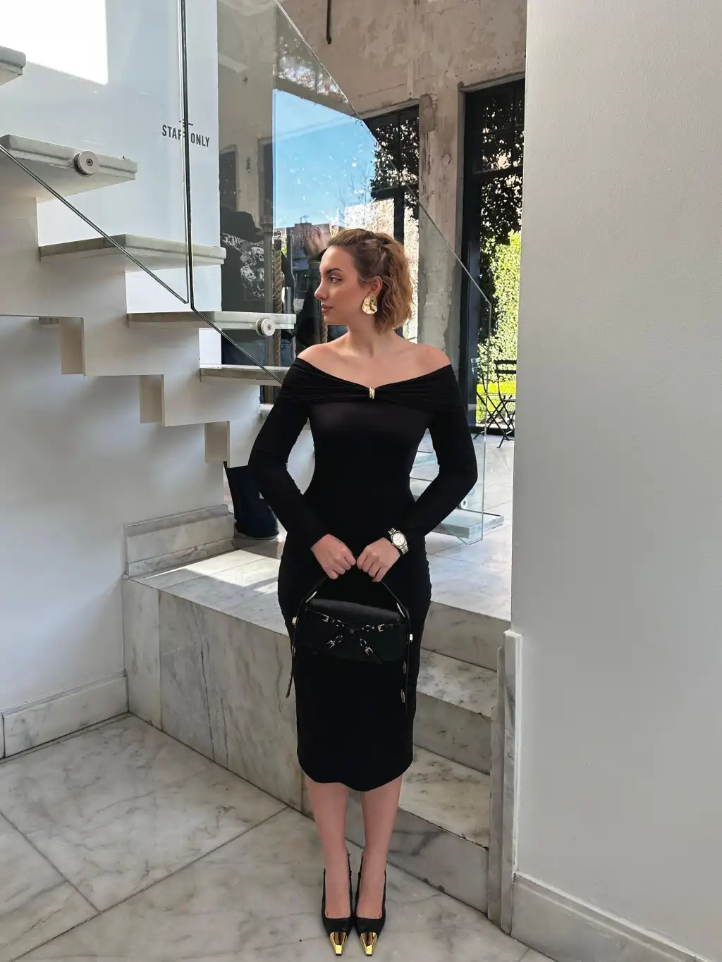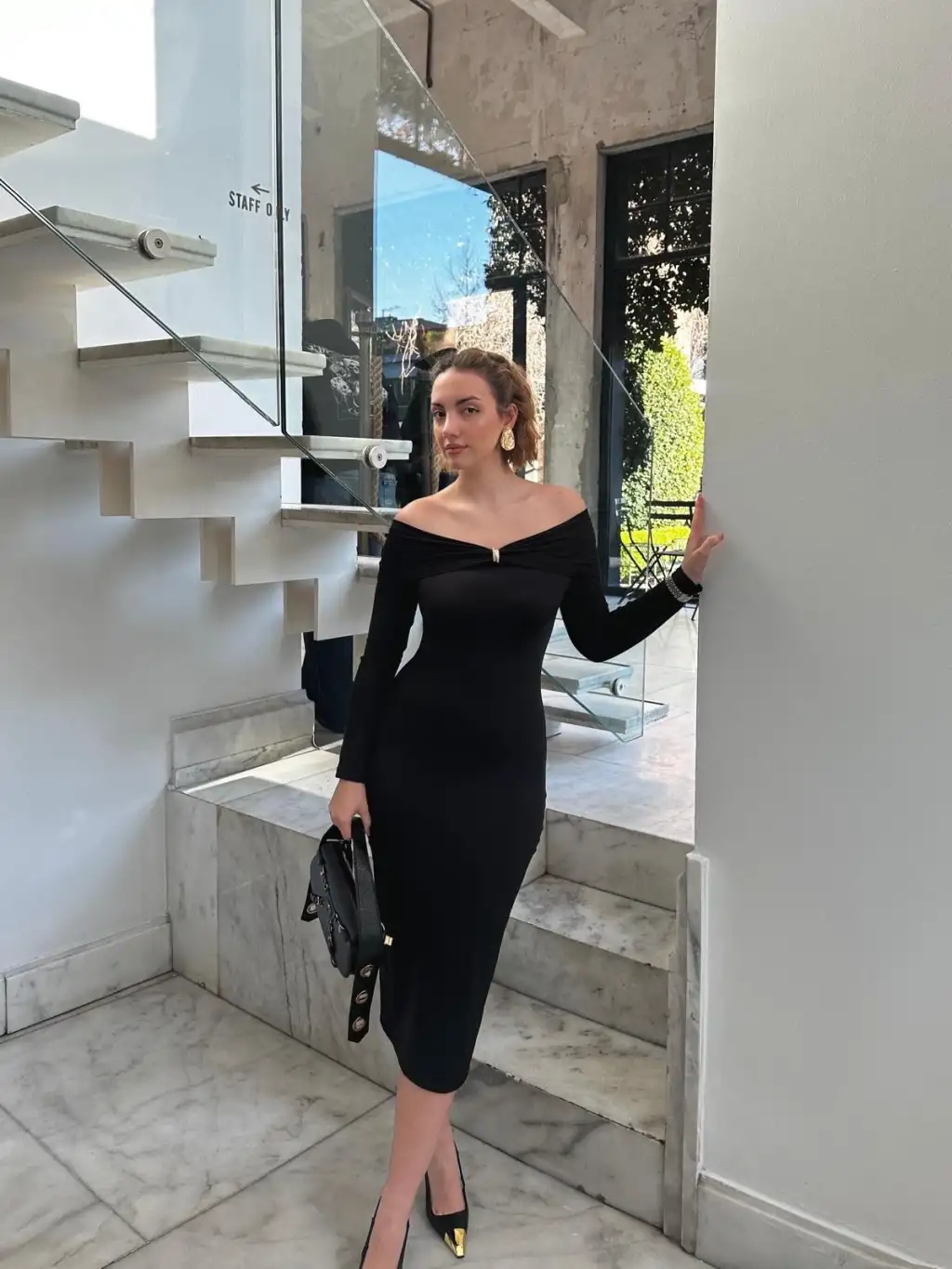 Siyah Tokalı Madonna Elbise