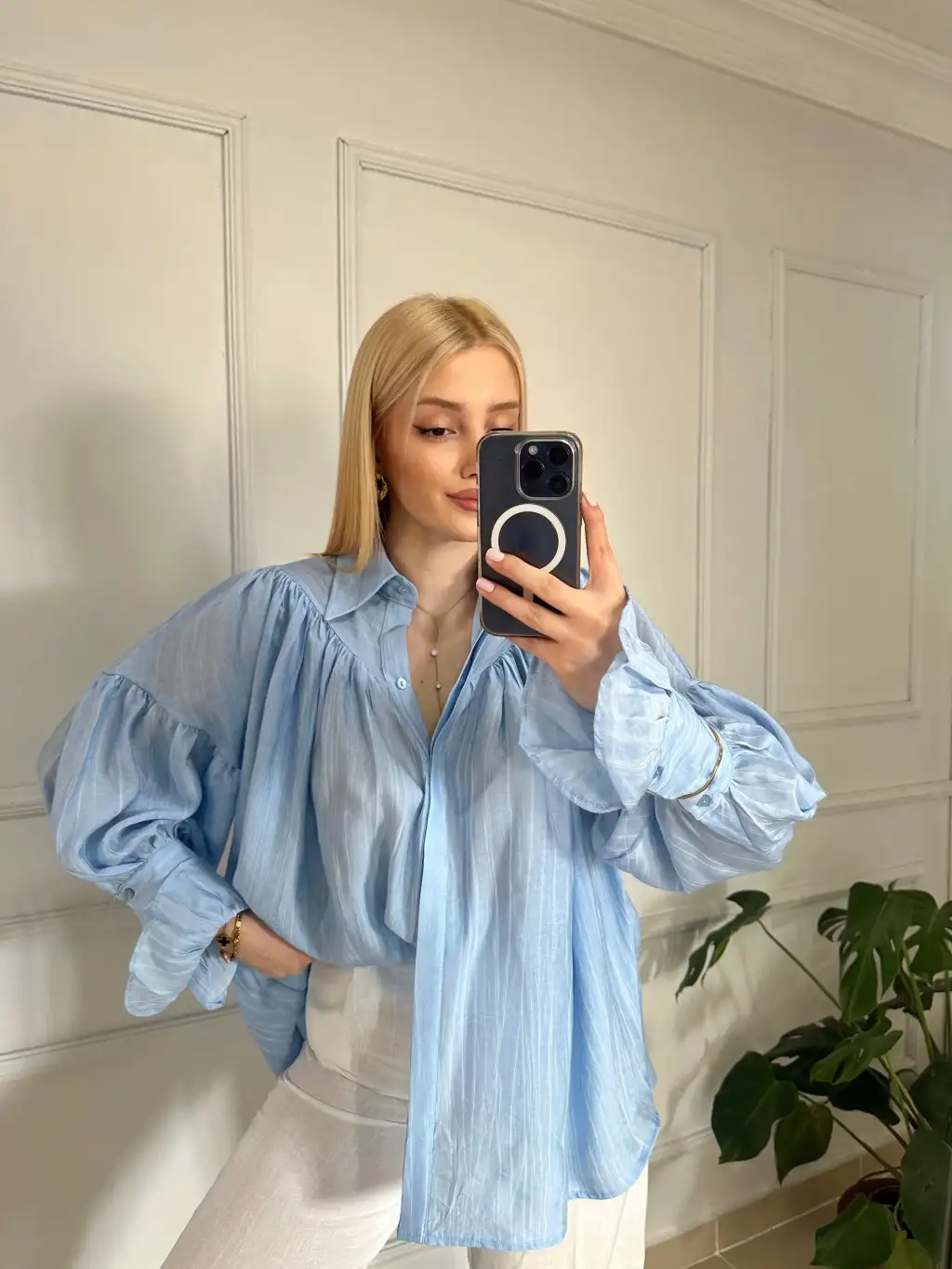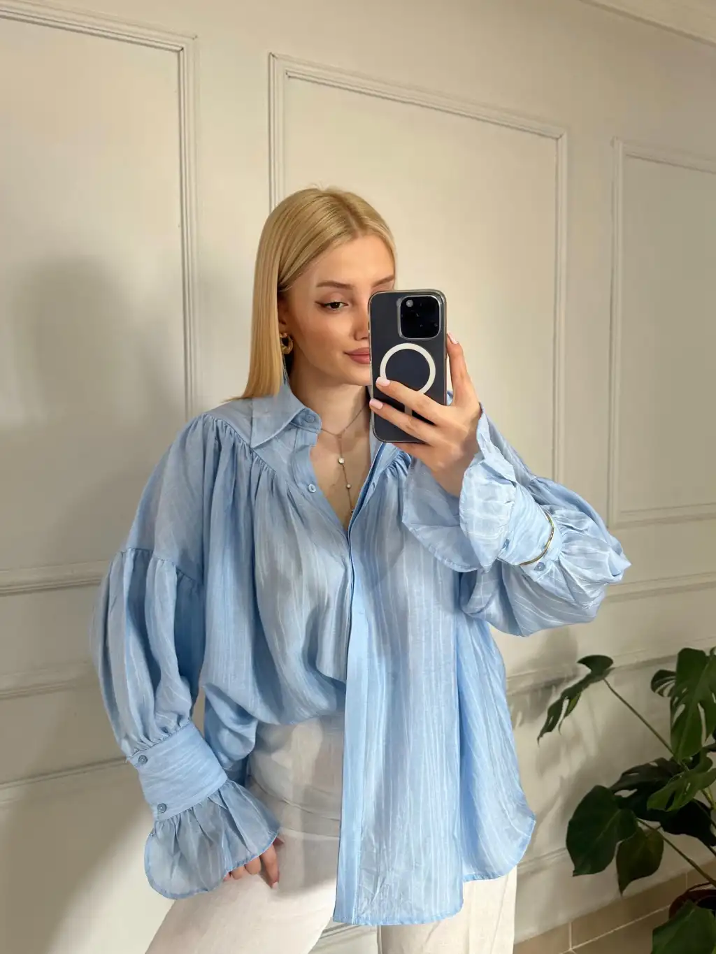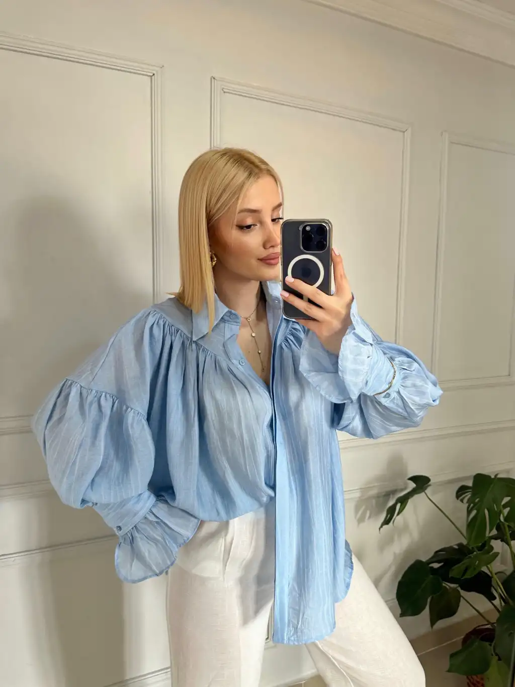 Soleil BebeMavi Fırfırlı Volanlı Gömlek