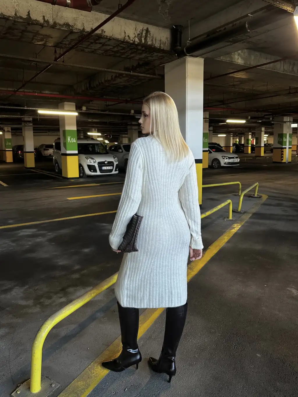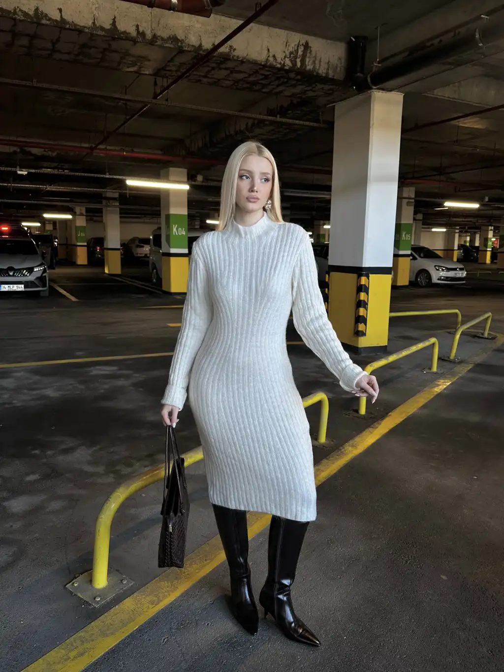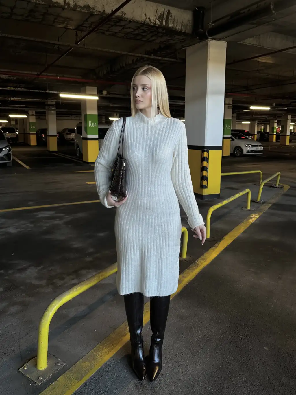 Taş Balıkçı Yaka Yün Midi Kloş Elbise