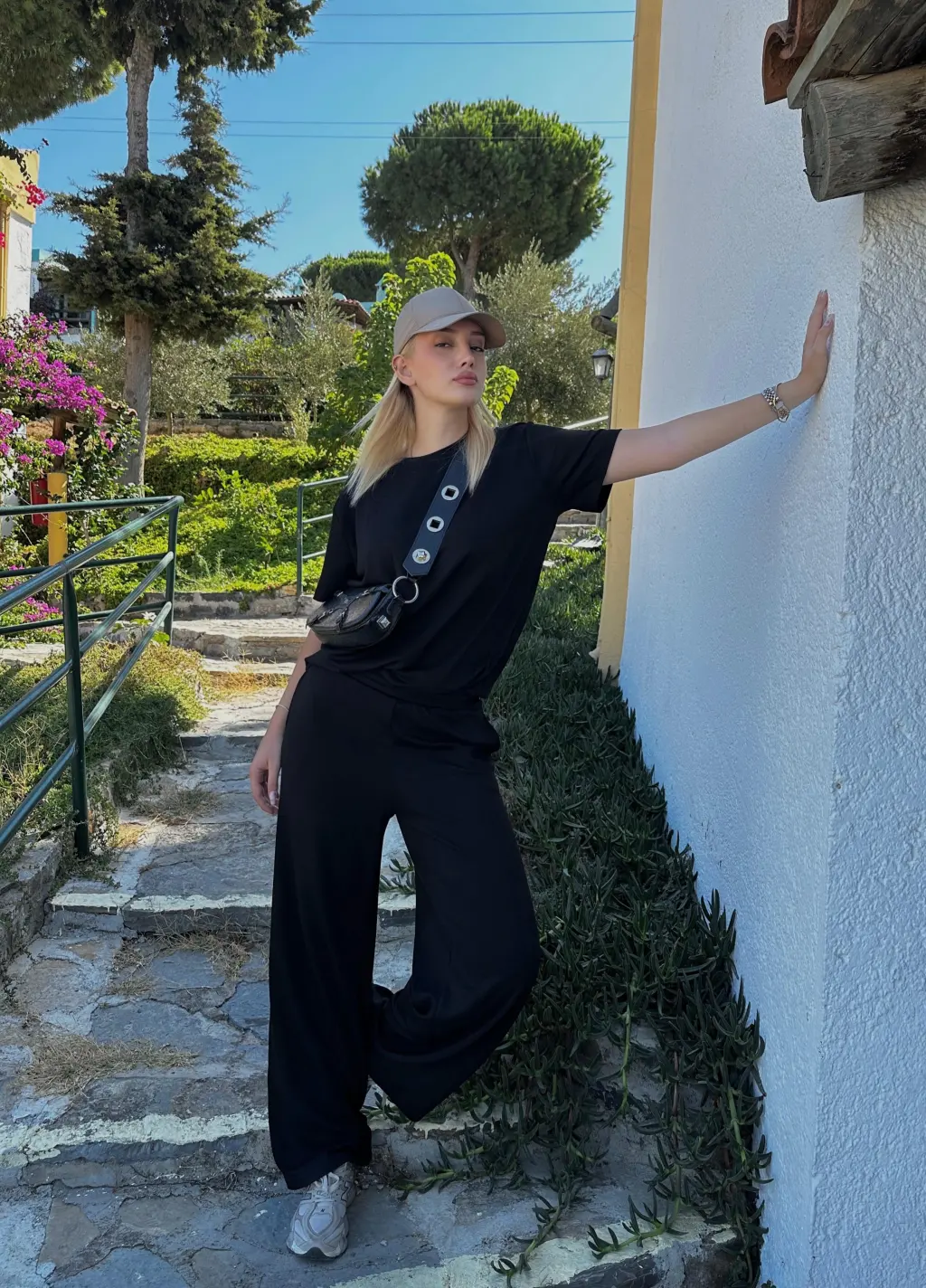 Urban Siyah Esnek Yumuşacık Modal Kumaş İkili Alt/Üst Takım
