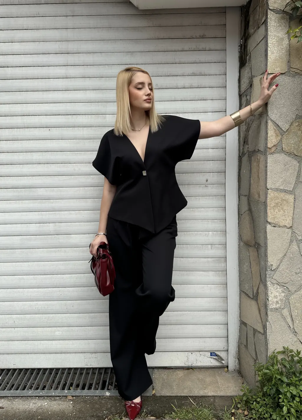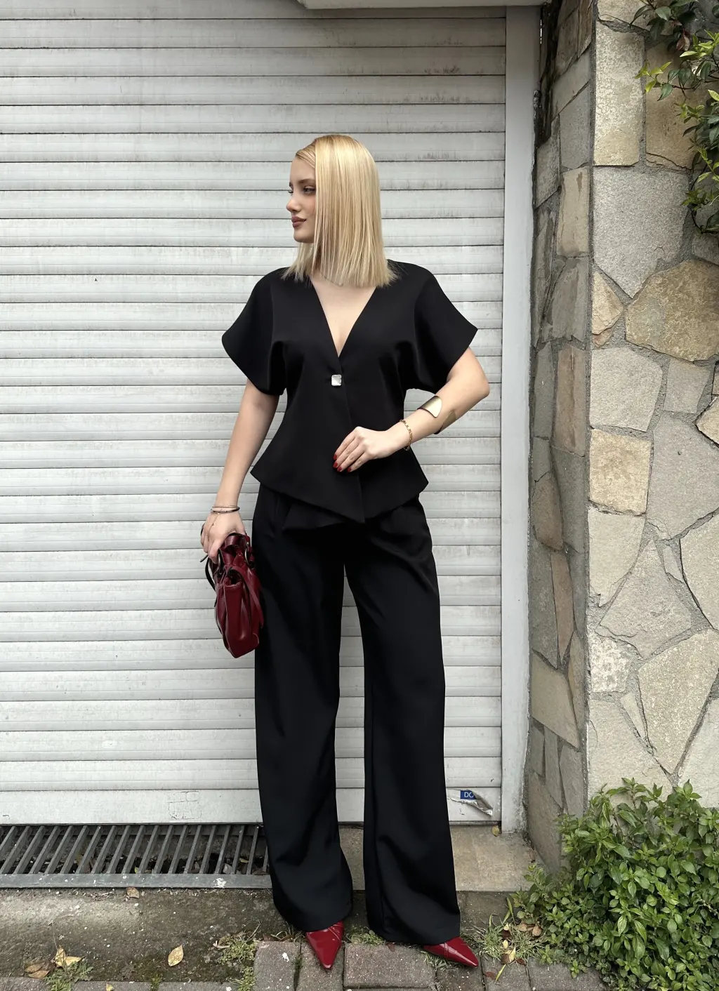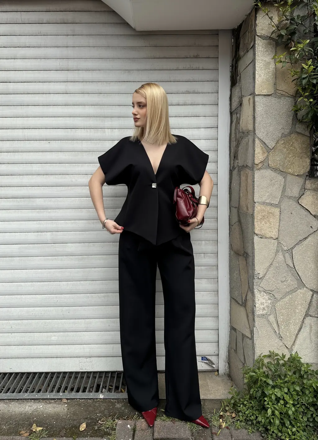 VALERA SİYAH YARASA KOL TEK DÜĞME ASTARLI BLAZER PANTOLON TAKIM