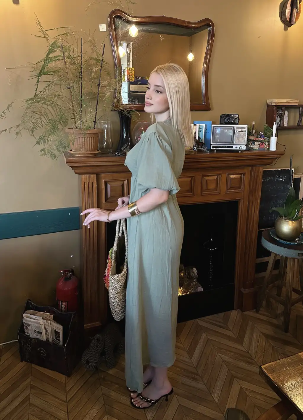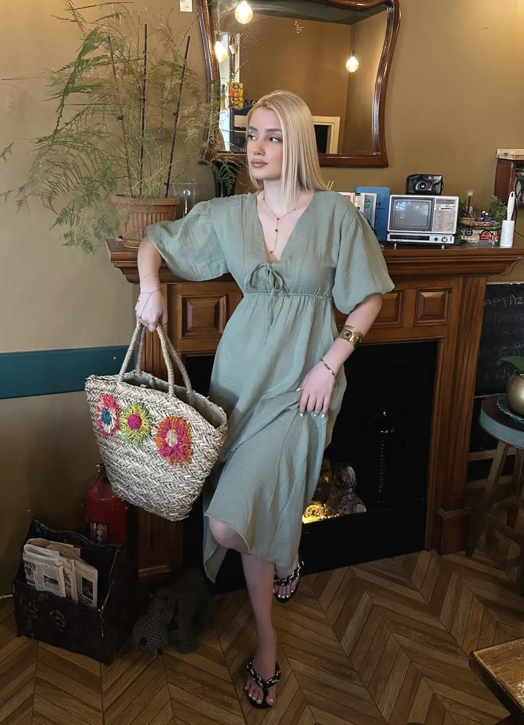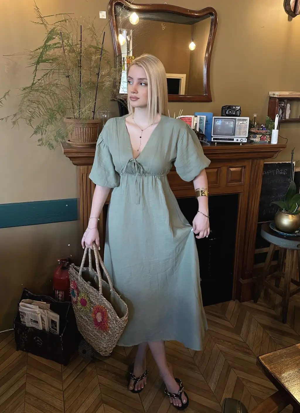 Vayla Çağla Müslin Kumaş Bağlama Detaylı Elbise